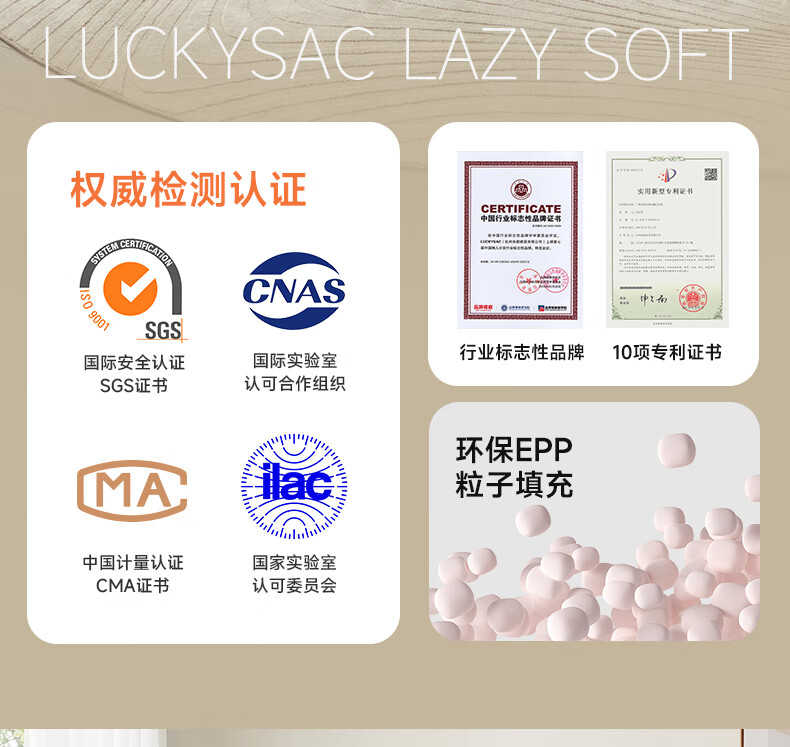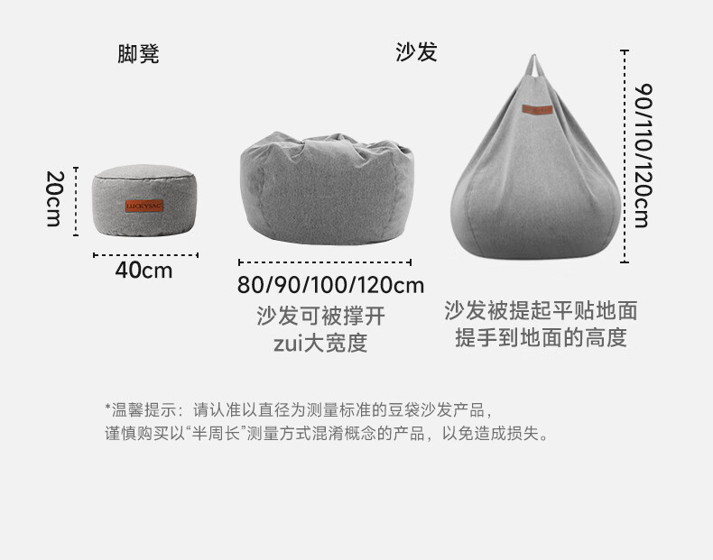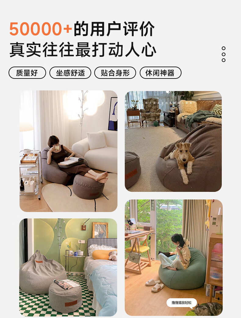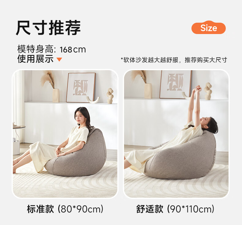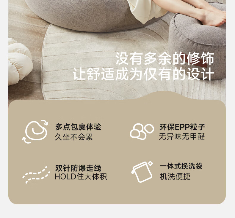 LUCKYSAC懒人沙发豆袋EPP 客厅卧室阳台单人榻米小沙发椅 舒适款暖灰色
