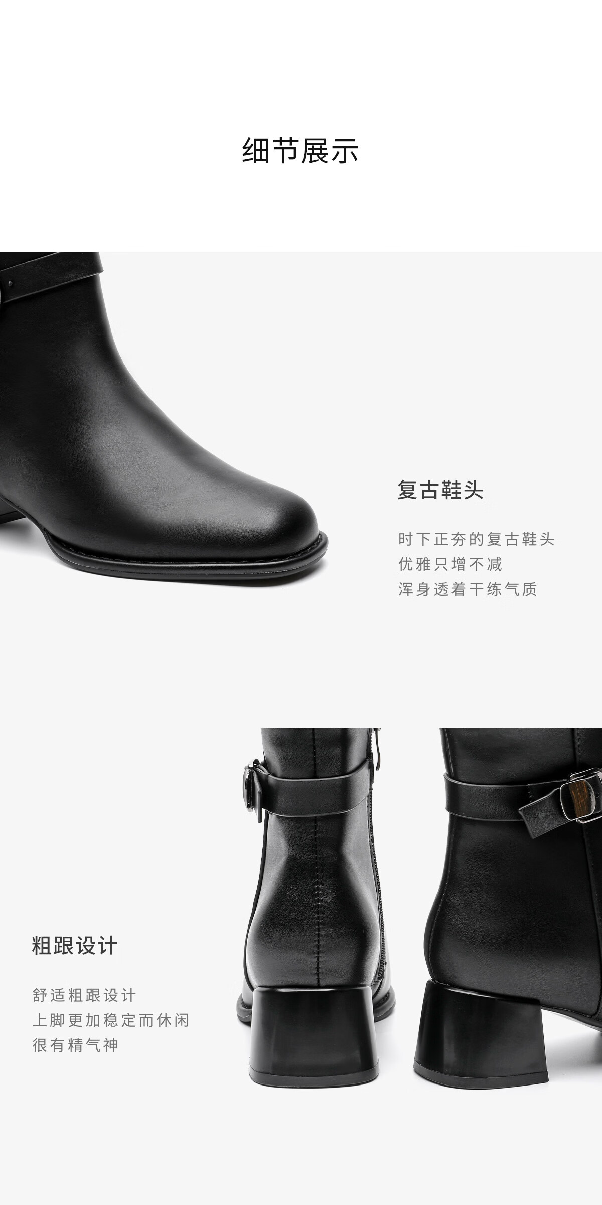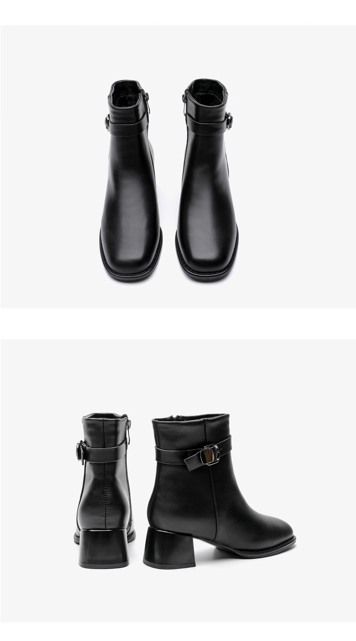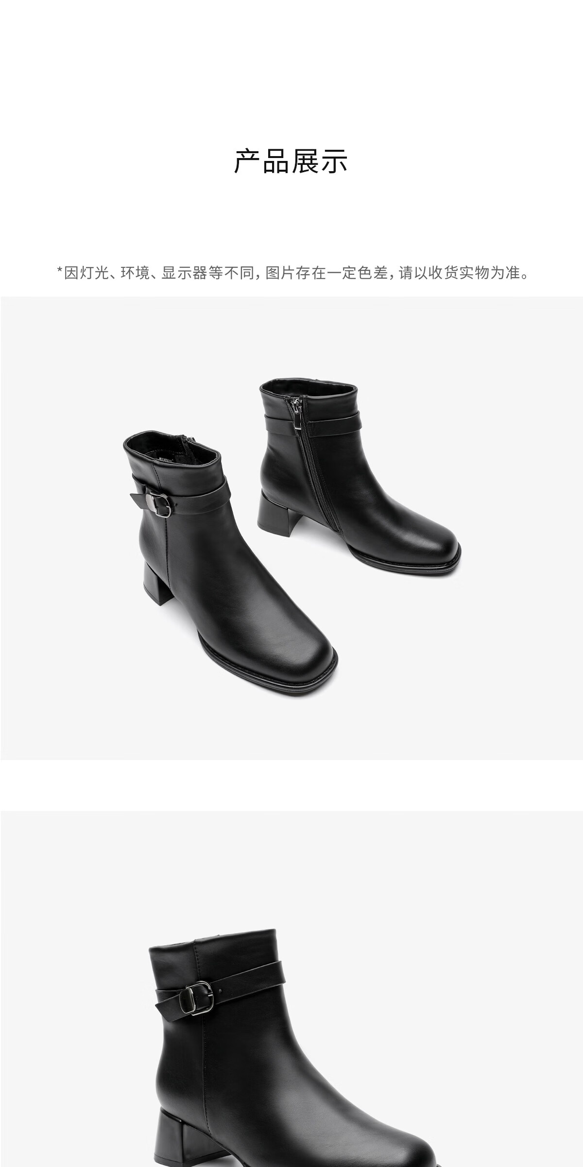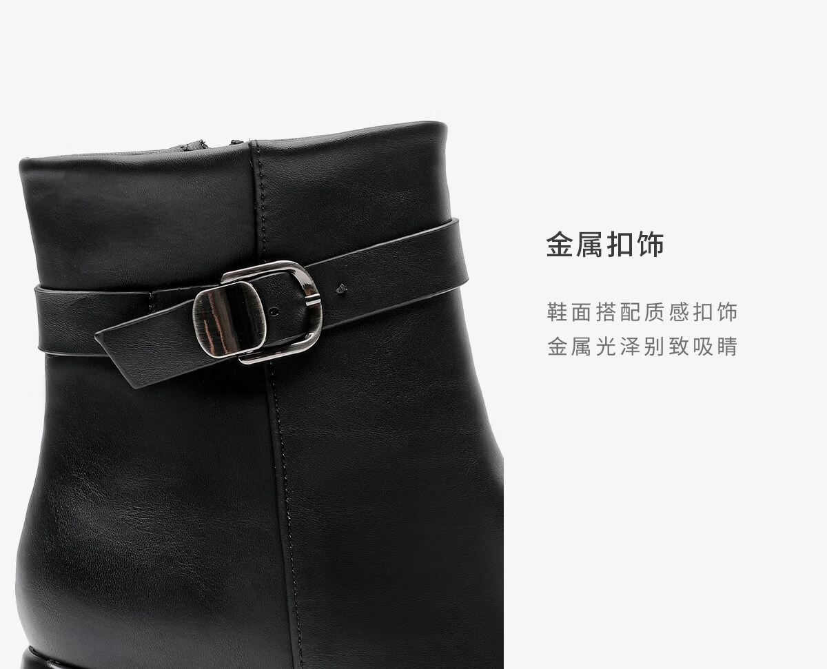 月芽儿皮带扣时装靴短靴女2025冬季新款法式小个子方头瘦瘦靴 绒里黑色01T 34
