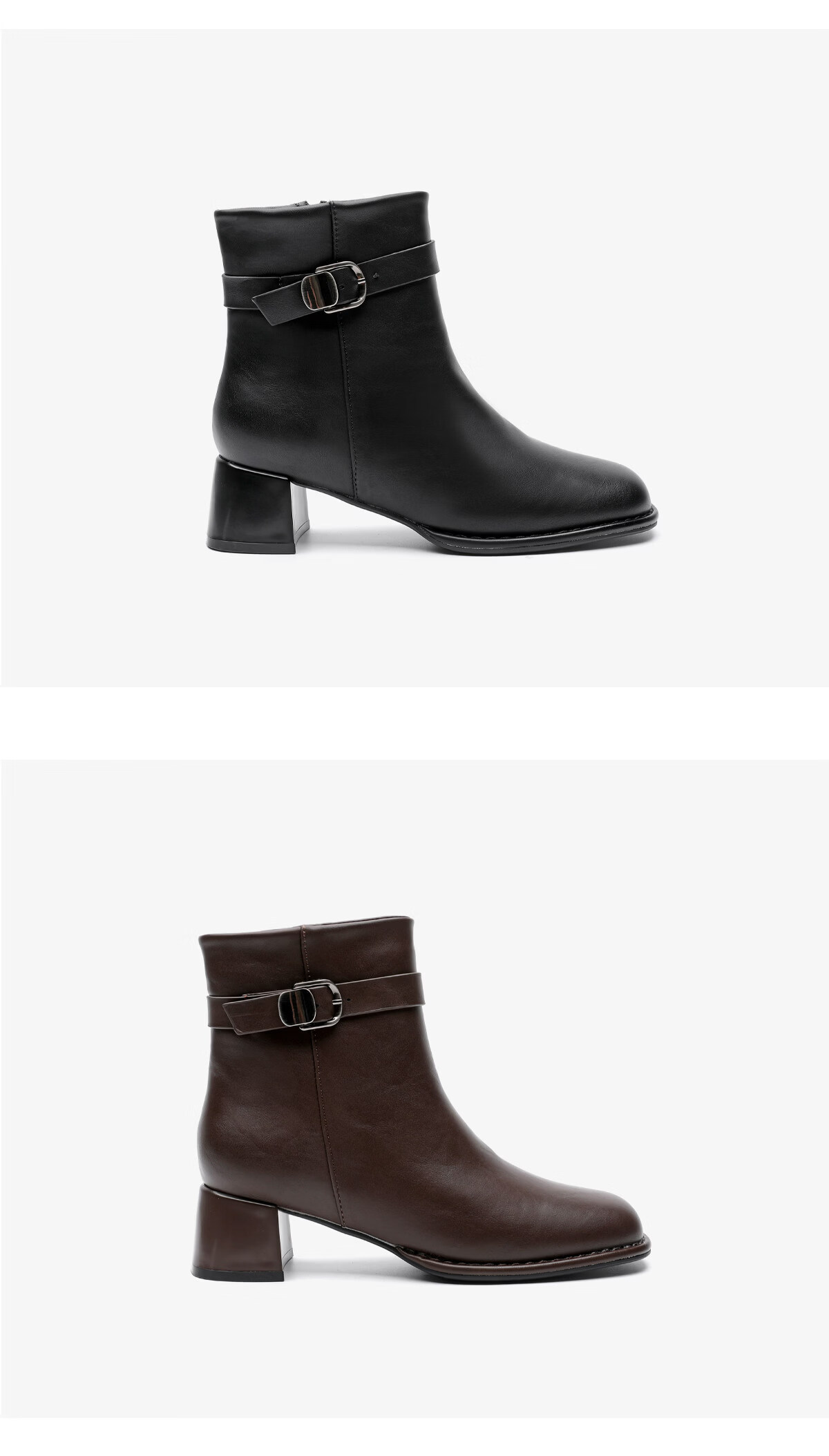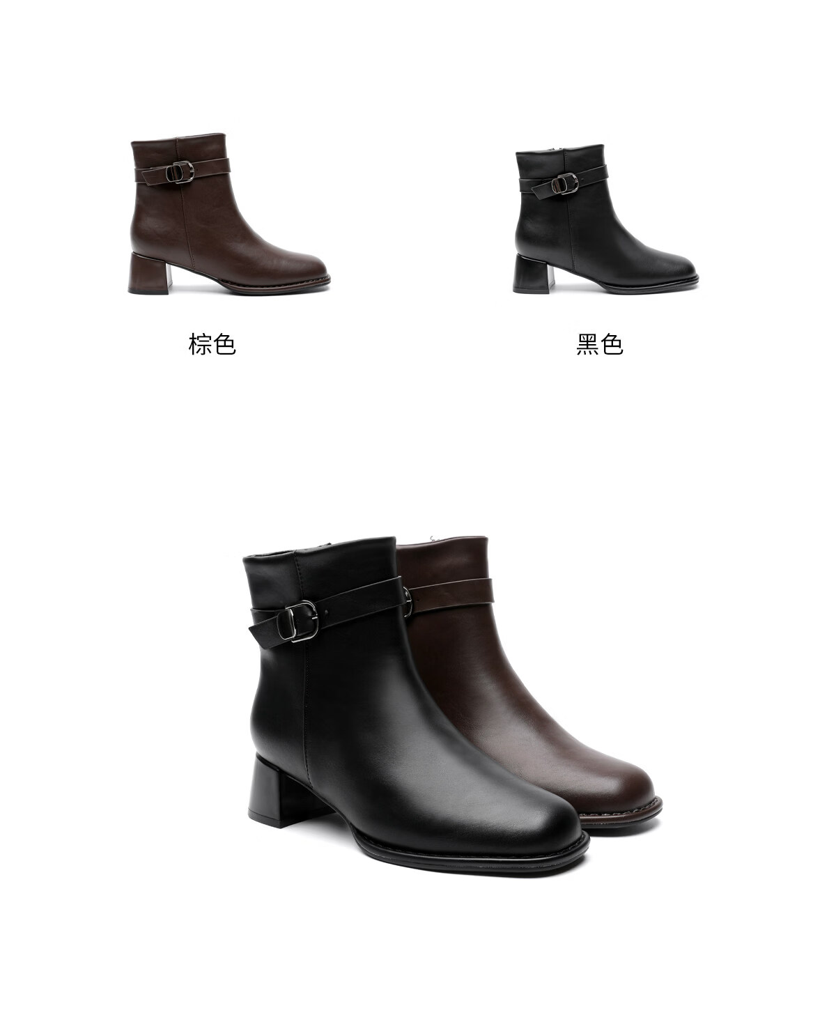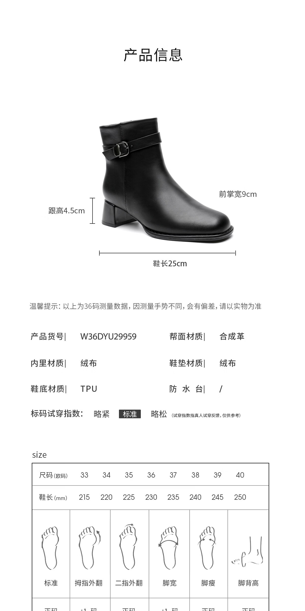 月芽儿皮带扣时装靴短靴女2025冬季新款法式小个子方头瘦瘦靴 绒里黑色01T 34
