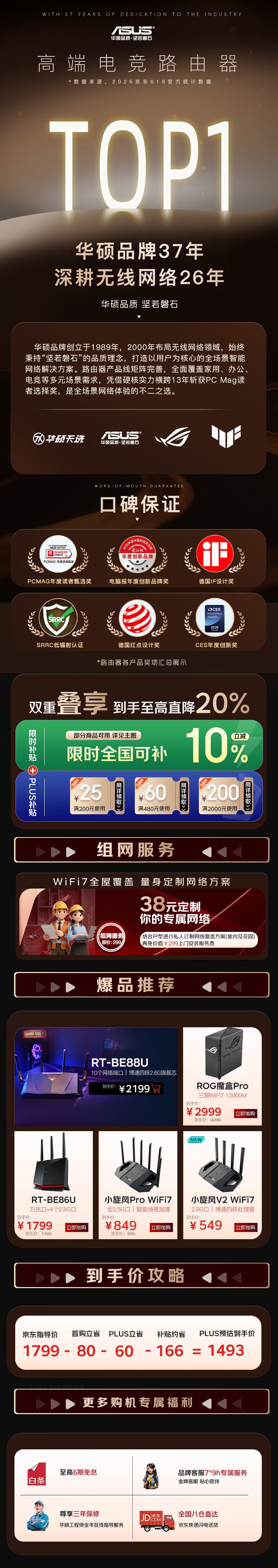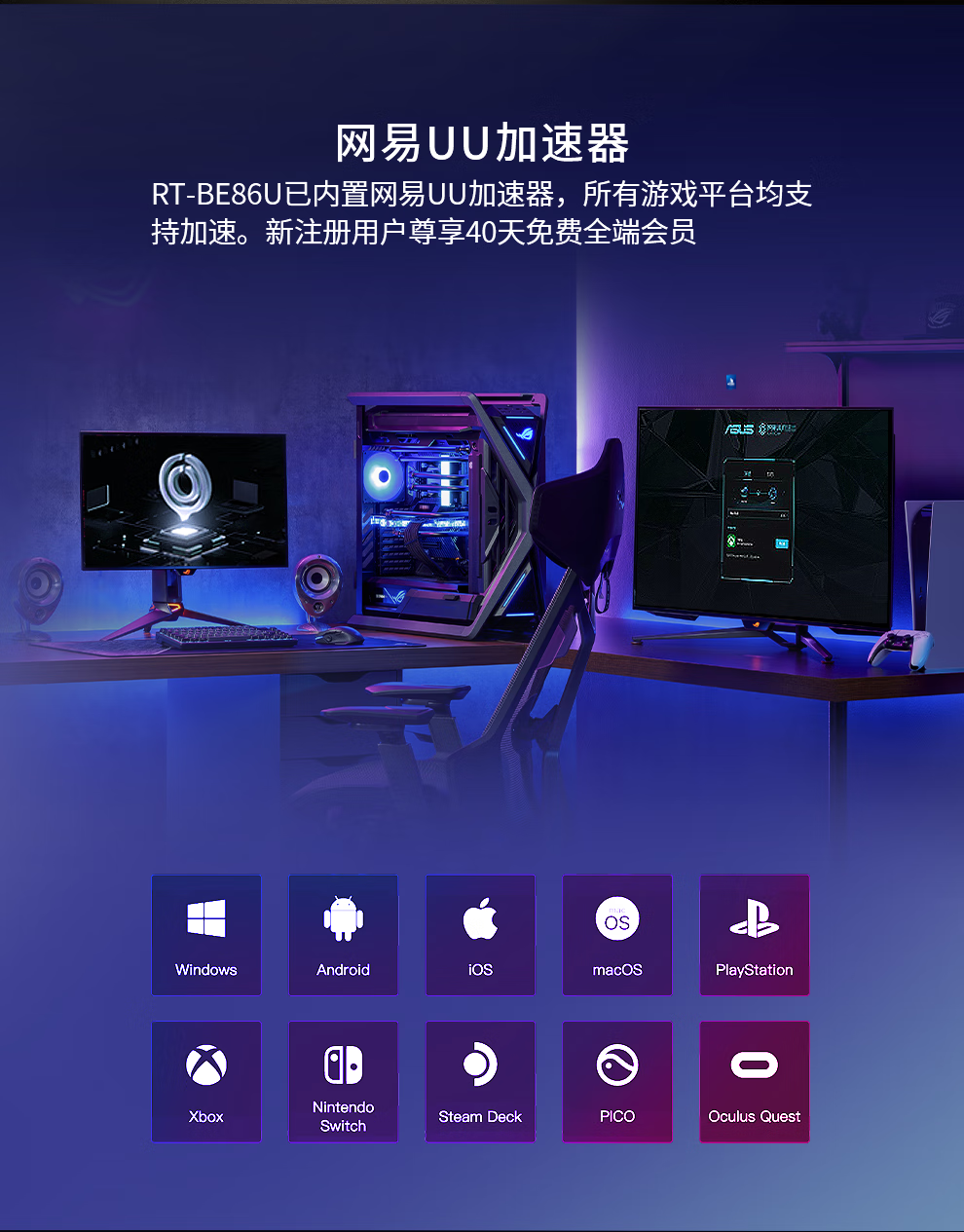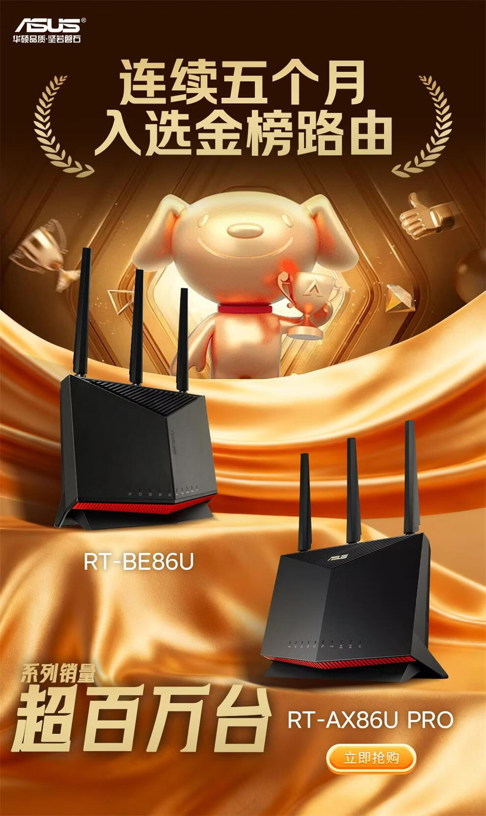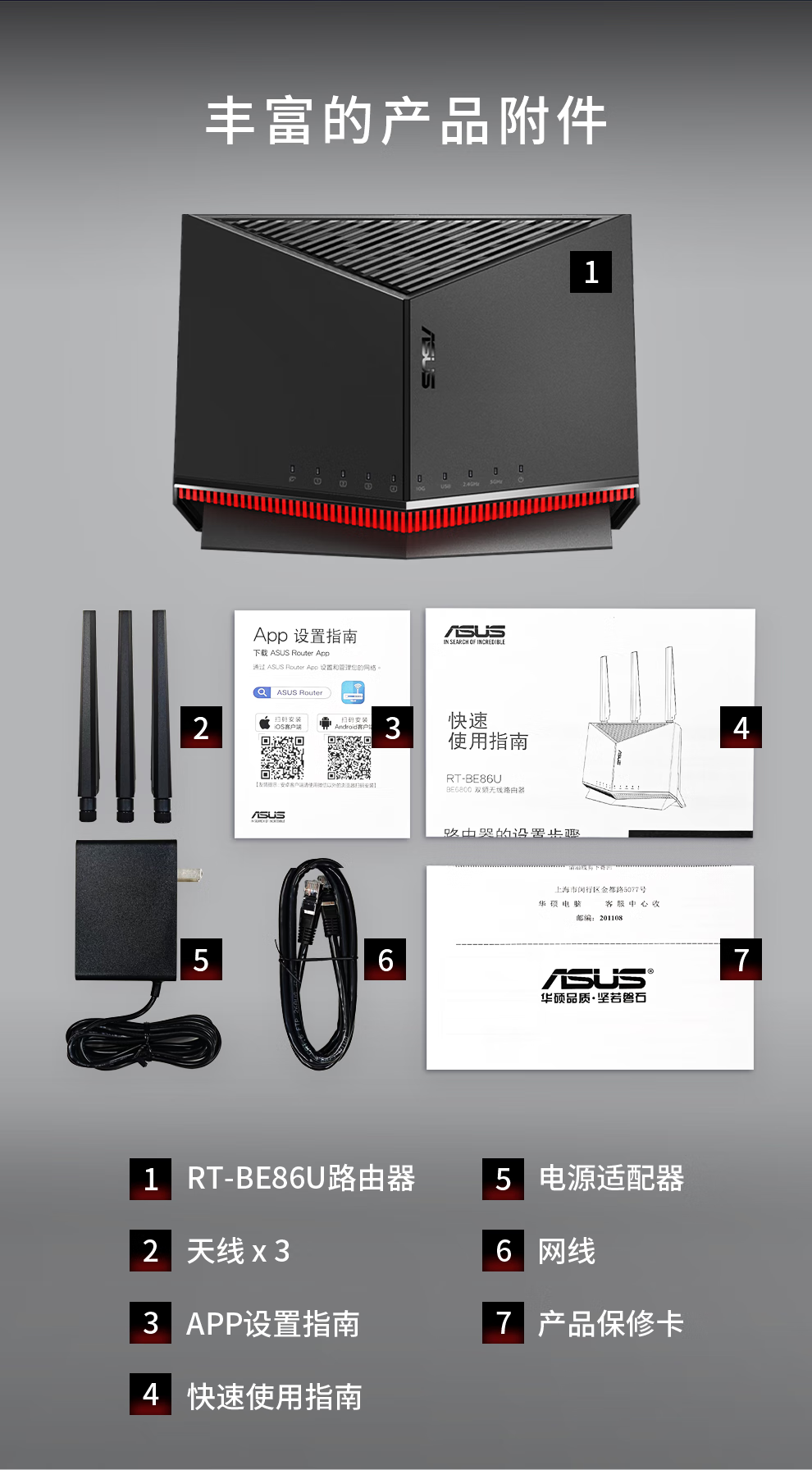 华硕(ASUS)【国家补贴】RT-BE86UWiFi7路由器家用无线千兆电竞路由万兆口+4个2.5G口全屋套装Aimesh随心组