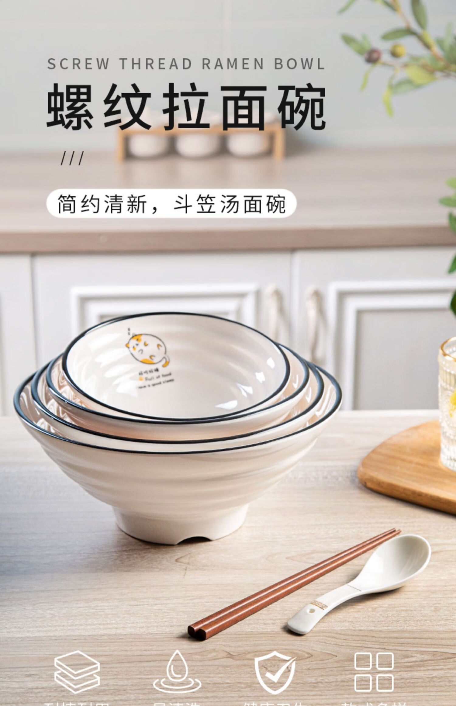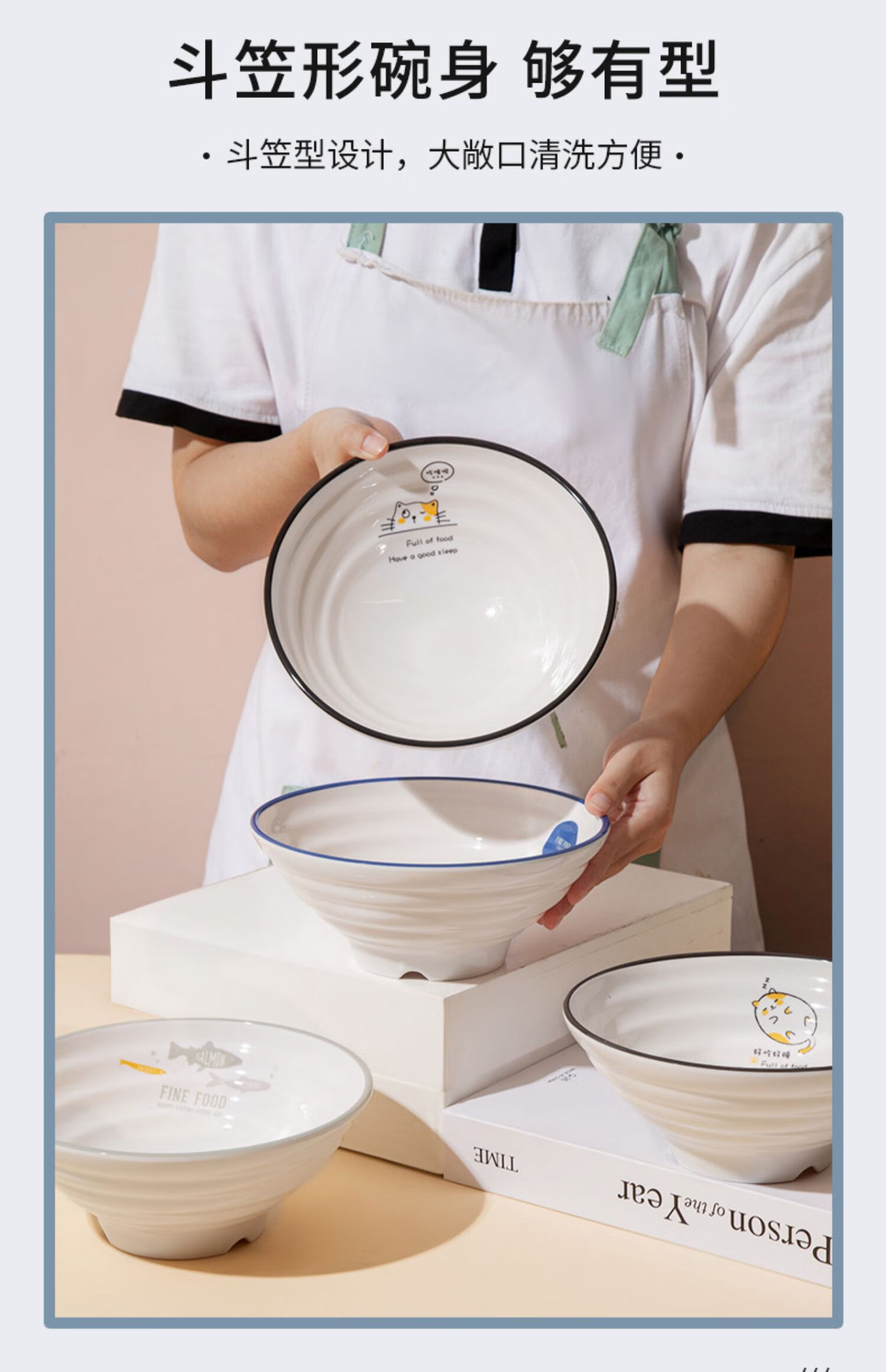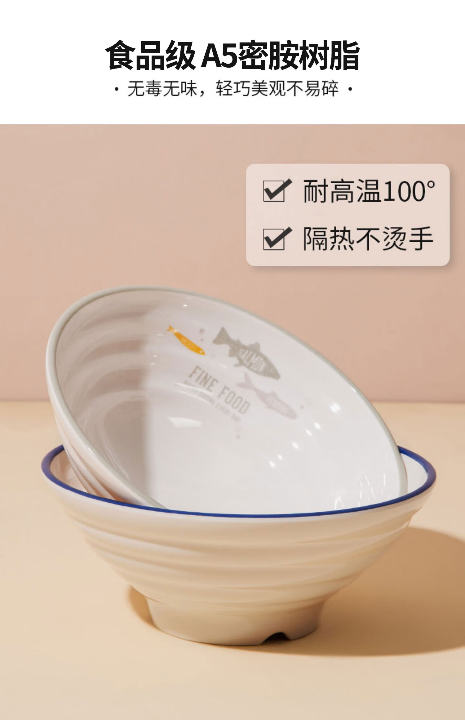 星坊 日式拉面碗防摔汤面米饭碗密胺斗笠碗仿瓷家用拌饭碗餐具7英寸