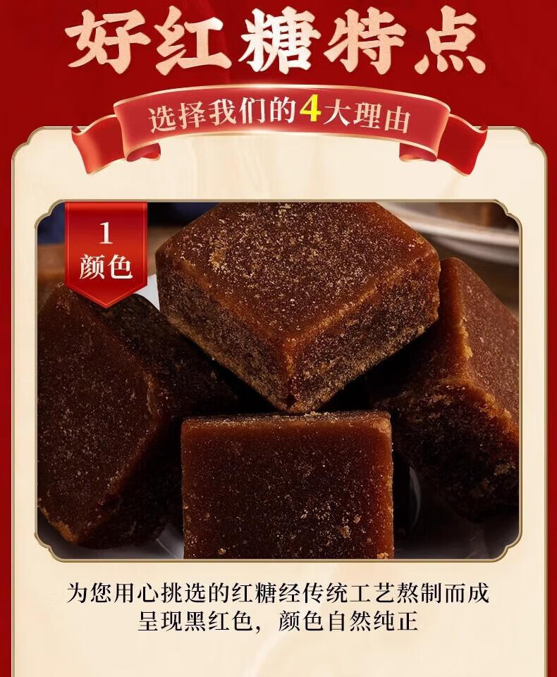 胖东来同款云南老红糖块生理期红糖姜茶红糖补气血古方红糖甘蔗红 【特优级红糖块手工红糖1200g*拍三罐送一罐*气