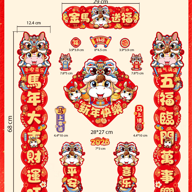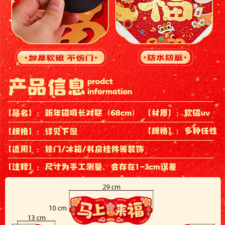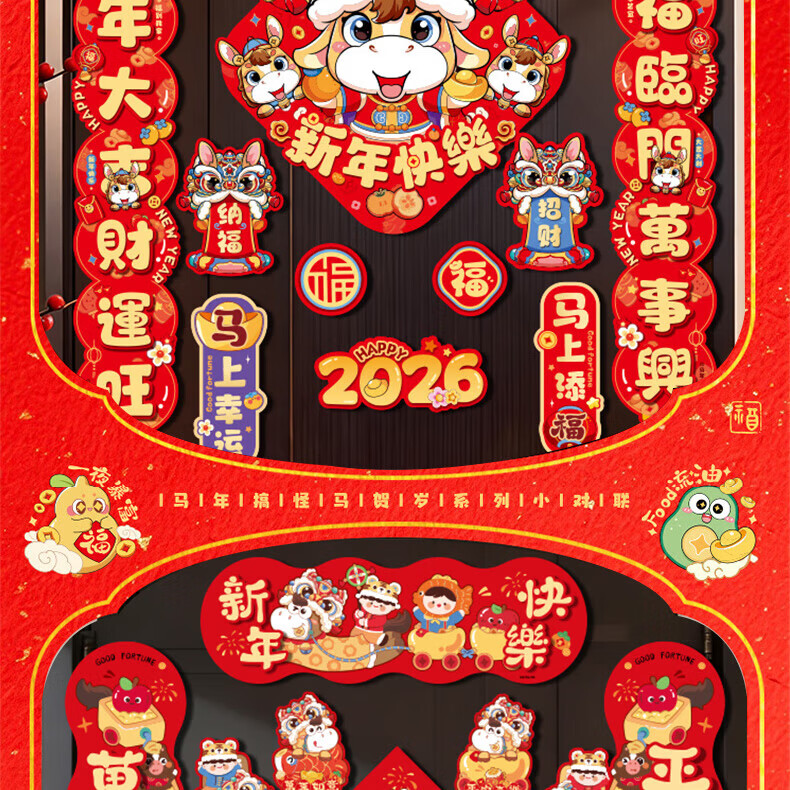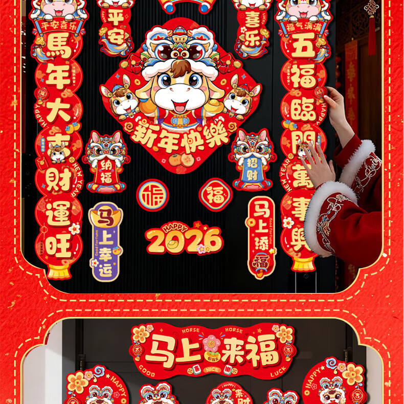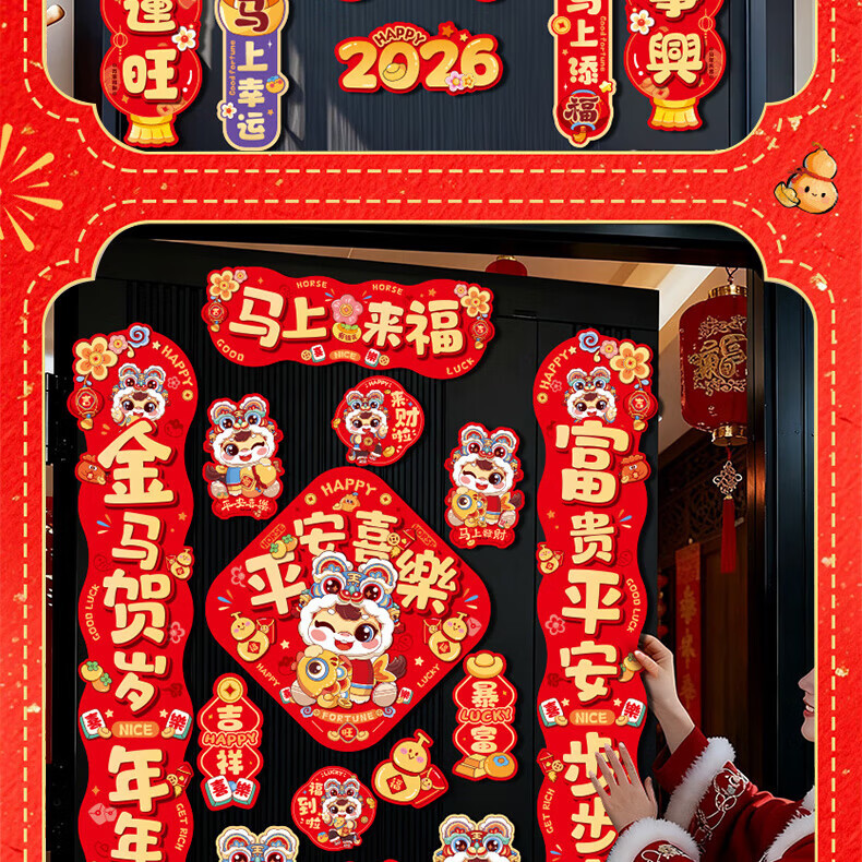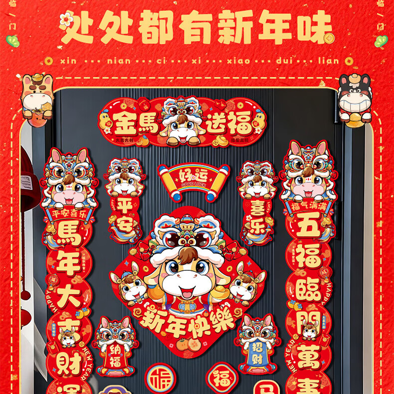 乾阅2026马年磁吸对联新年春联门贴元旦装饰春节门联入户门贴过年新款 马上来福-14件套【家庭热销款】 磁吸对联+冰箱贴