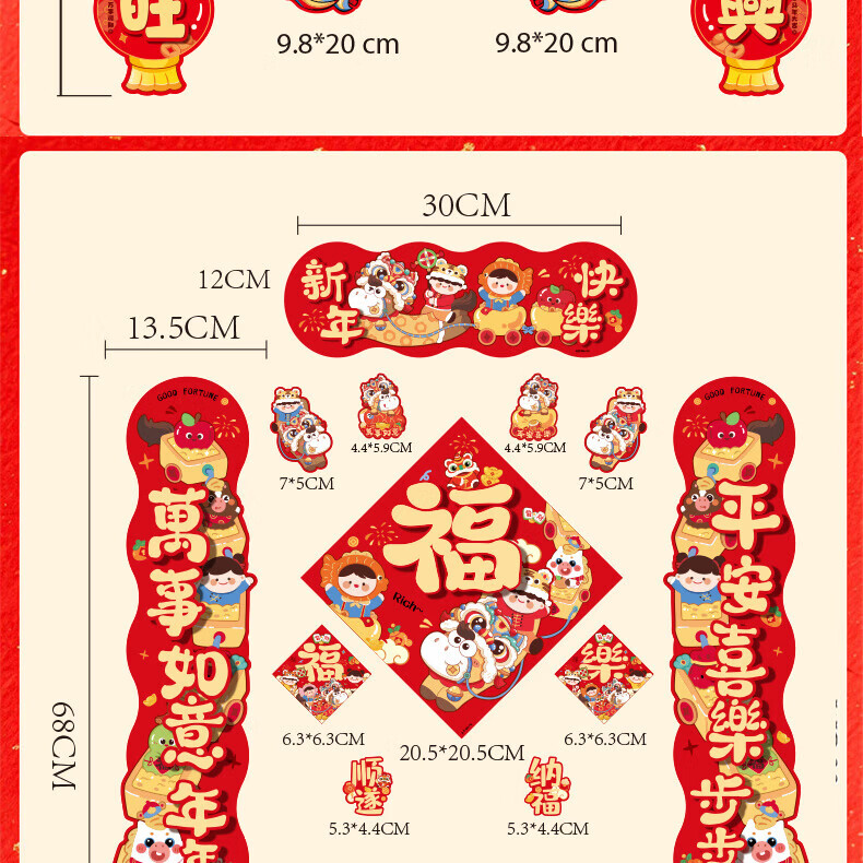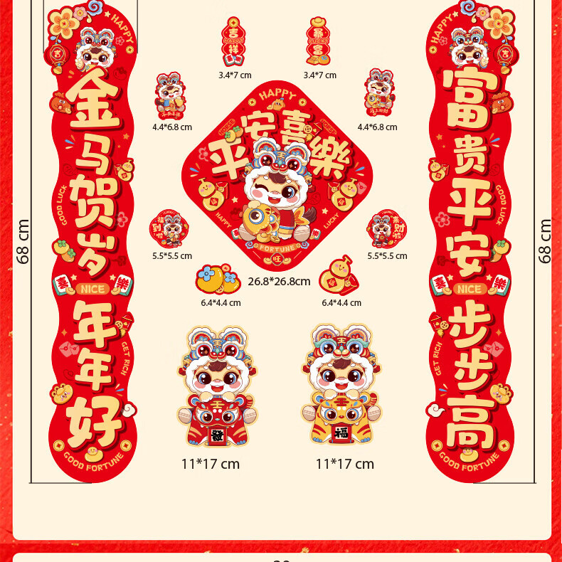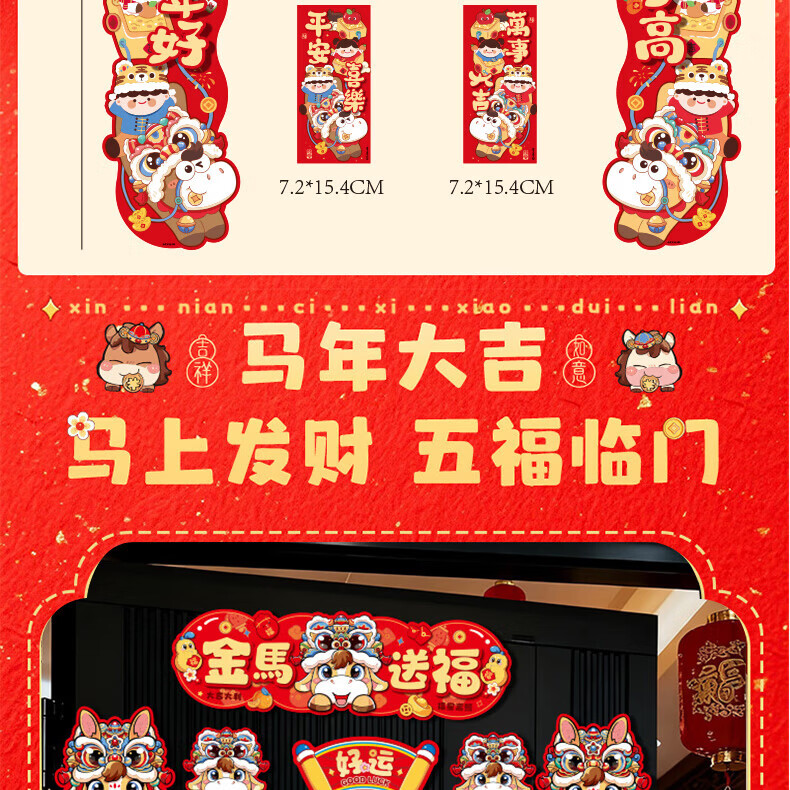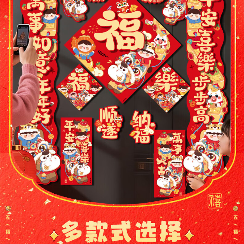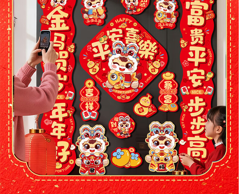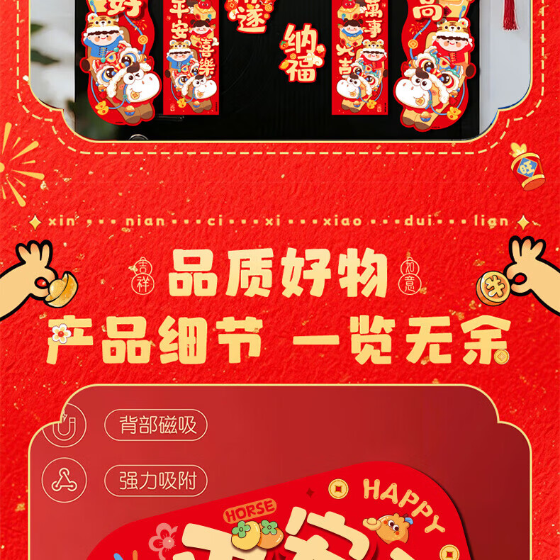 【88件】磁吸对联冰箱贴磁吸车贴福字门贴入户门新年装饰春节对联 醒狮磁吸对联88件套【1套】 无规格