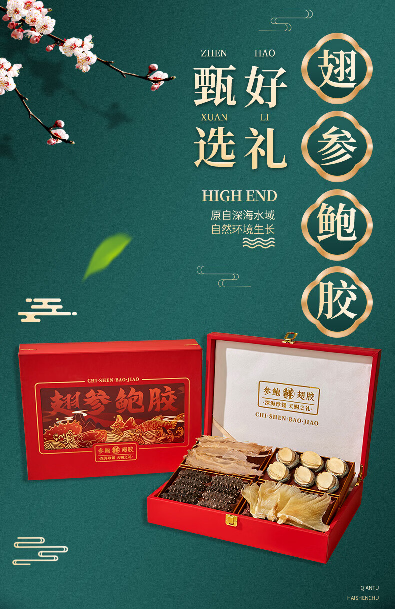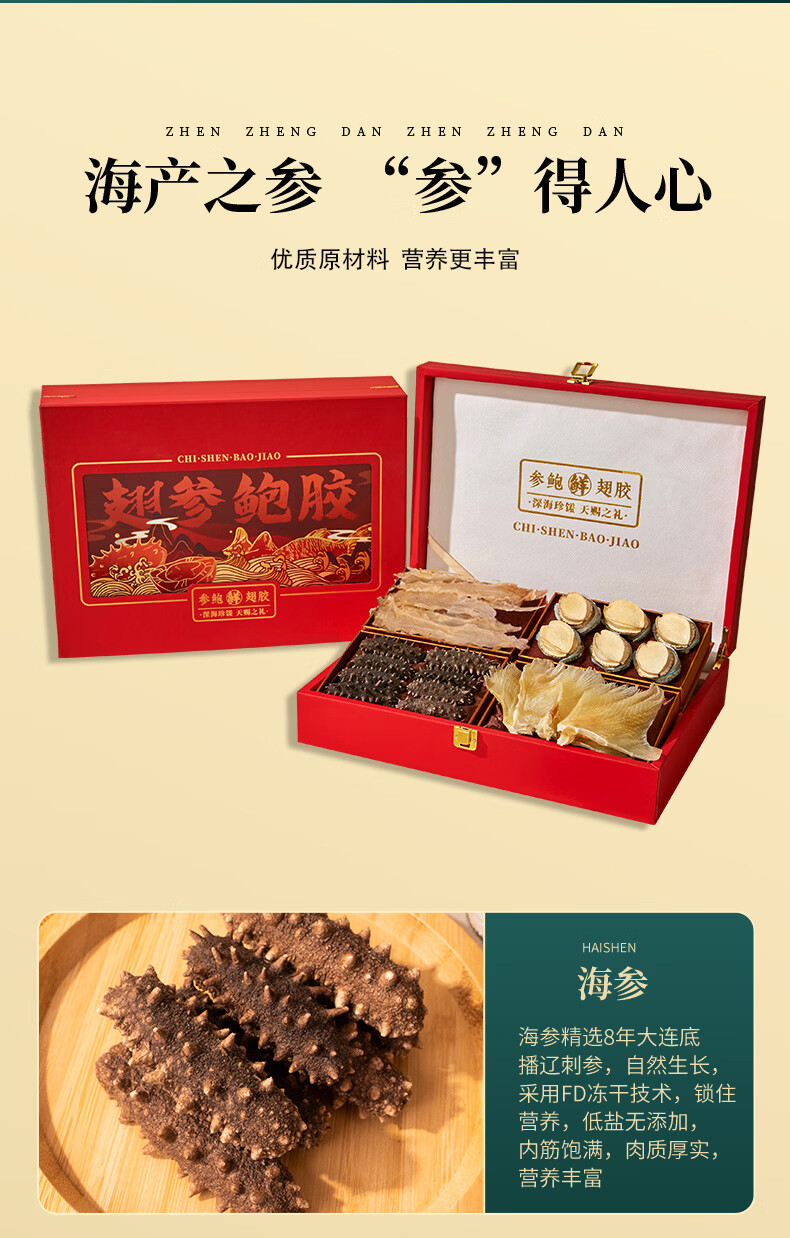 礼盒/【现货】大连辽刺参 海参鲍鱼礼盒中秋送礼过年年货海鲜礼盒 翅参鲍胶【海参+鲍鱼+鱼翅+鱼胶】