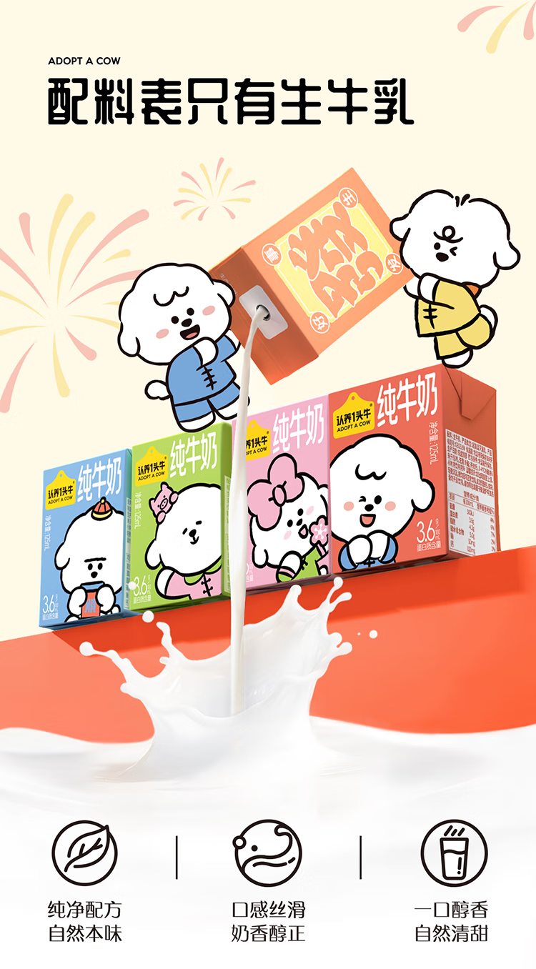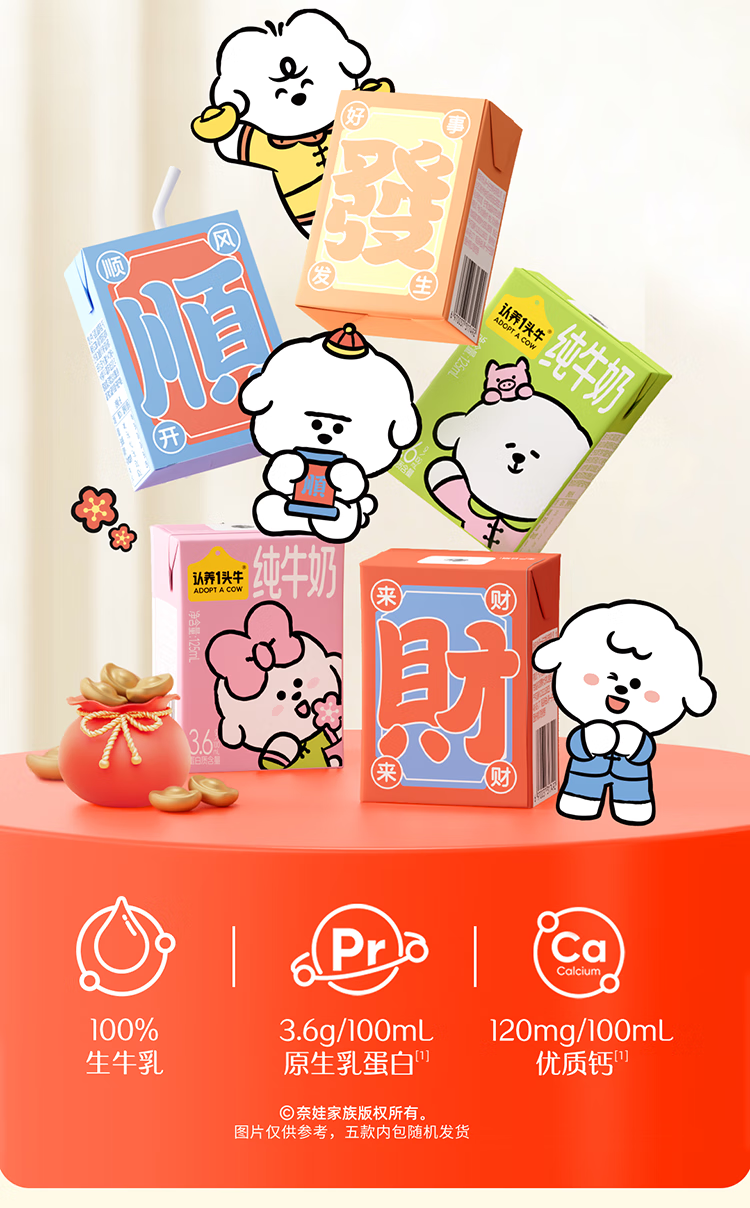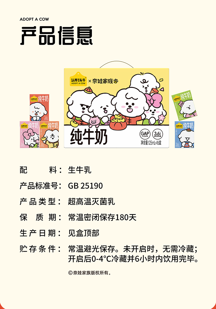 认养一头牛儿童纯牛奶125ml*16盒整箱 3.6g原生乳蛋白 礼盒×奈娃联名 11月产 「节庆款」1箱
