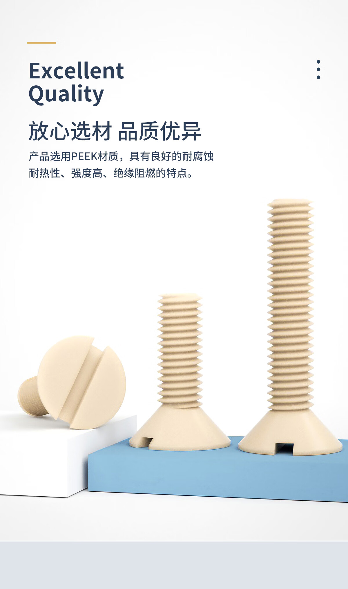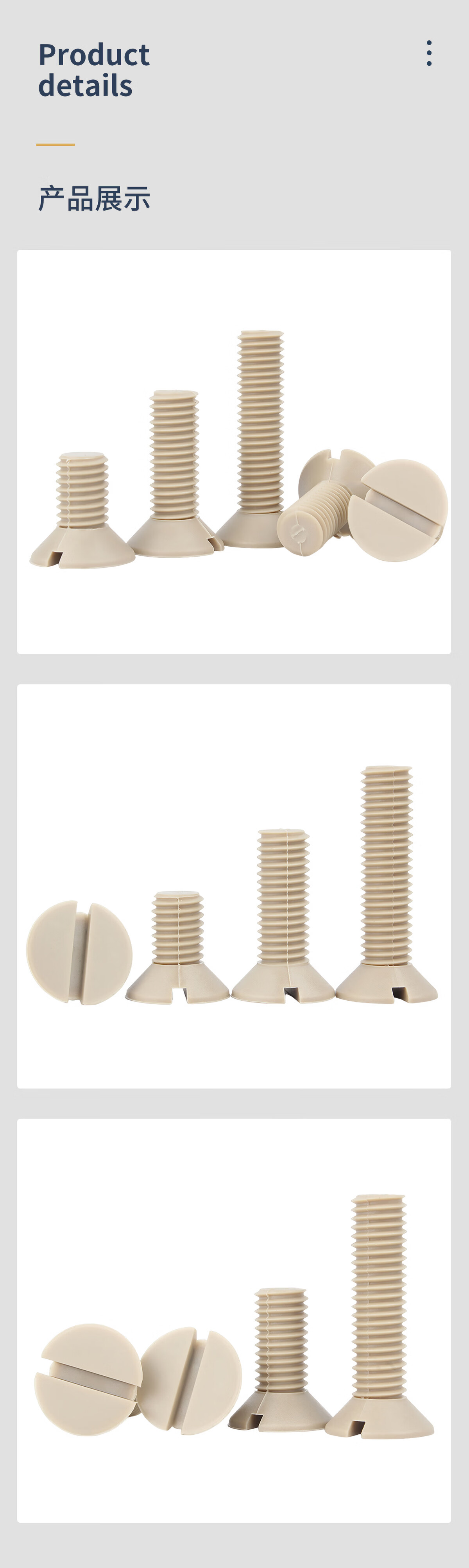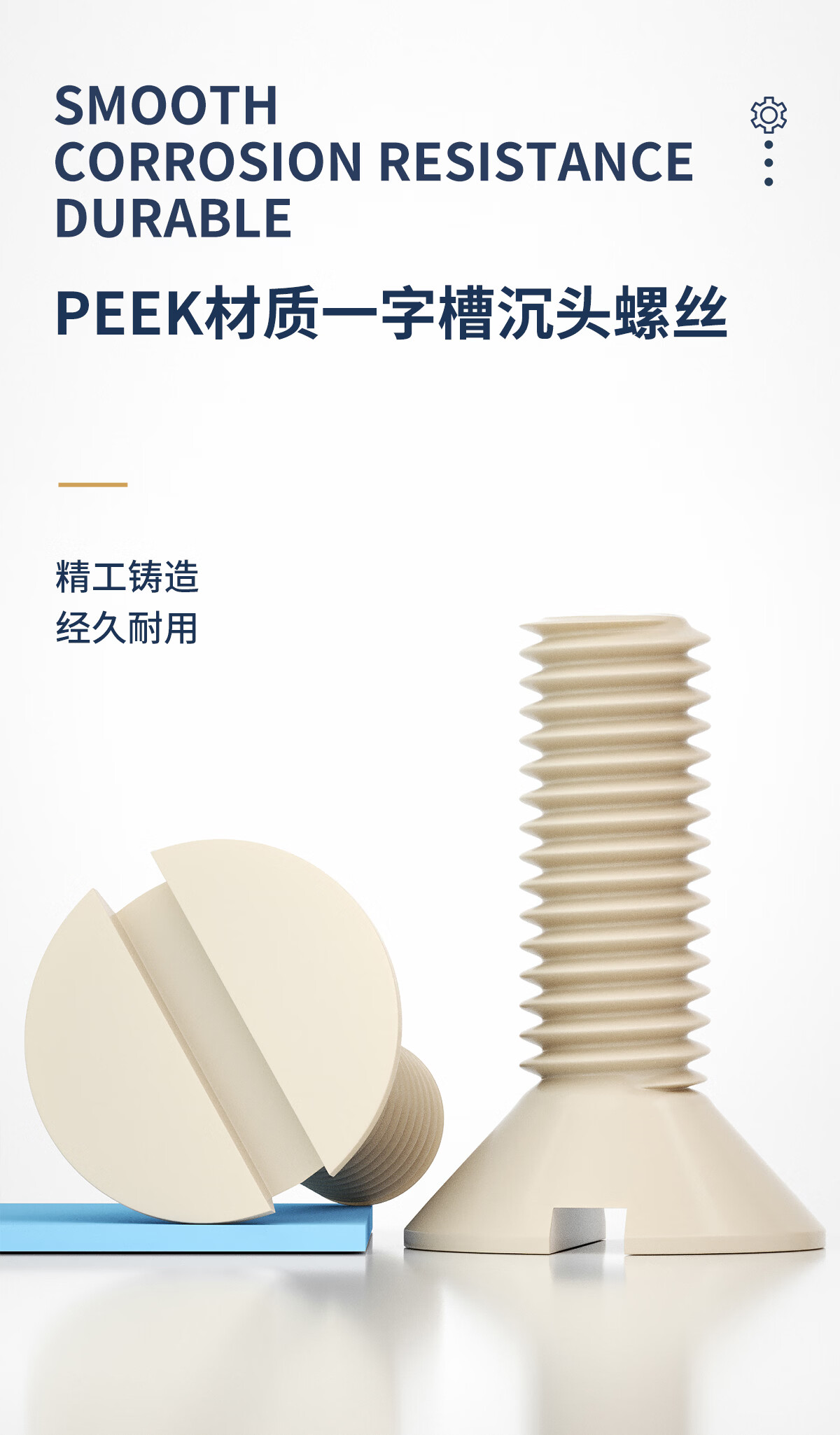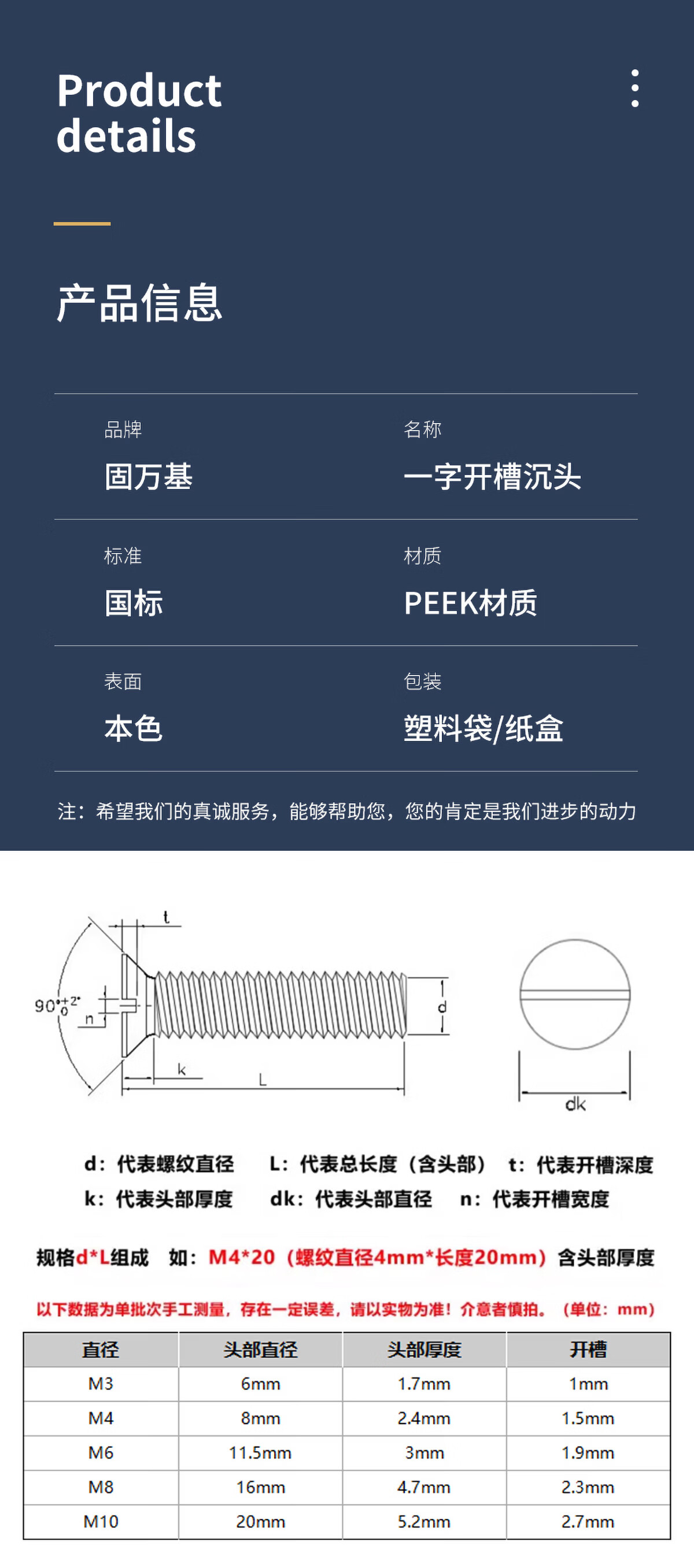 固万基(GUWANJI)PEEK一字开槽沉头螺丝耐高温绝缘树脂高强度平头螺栓M3-M10 M3x3[5个]