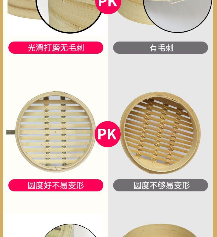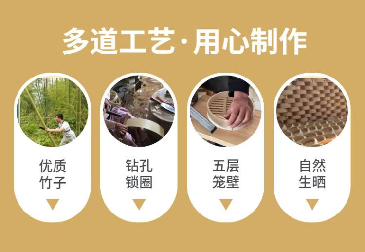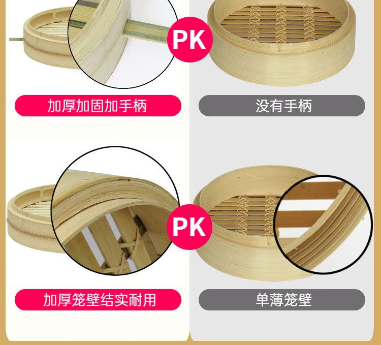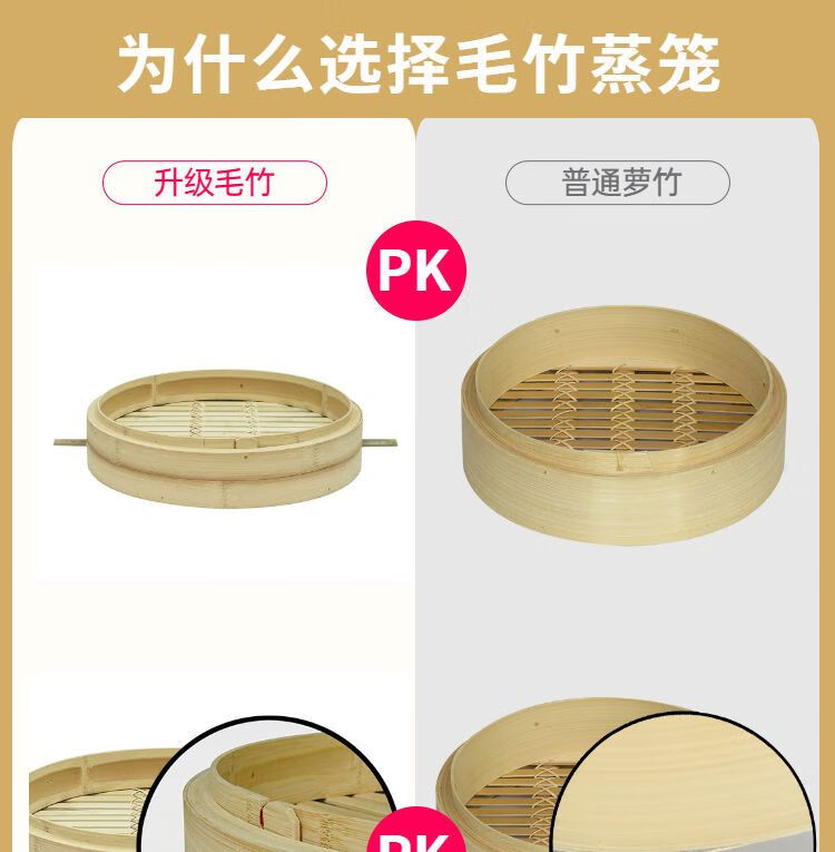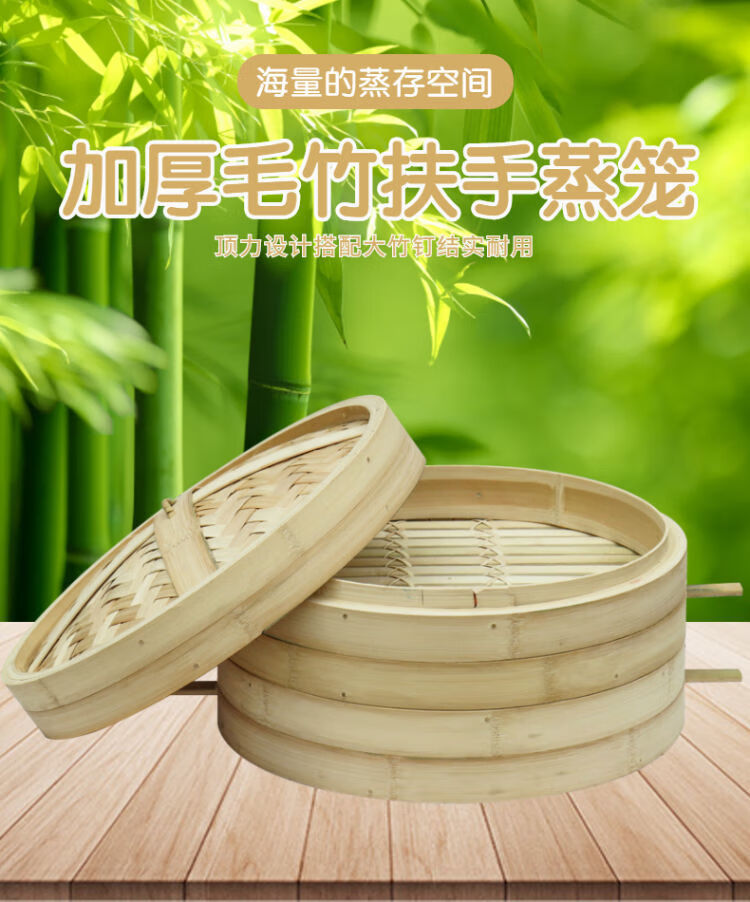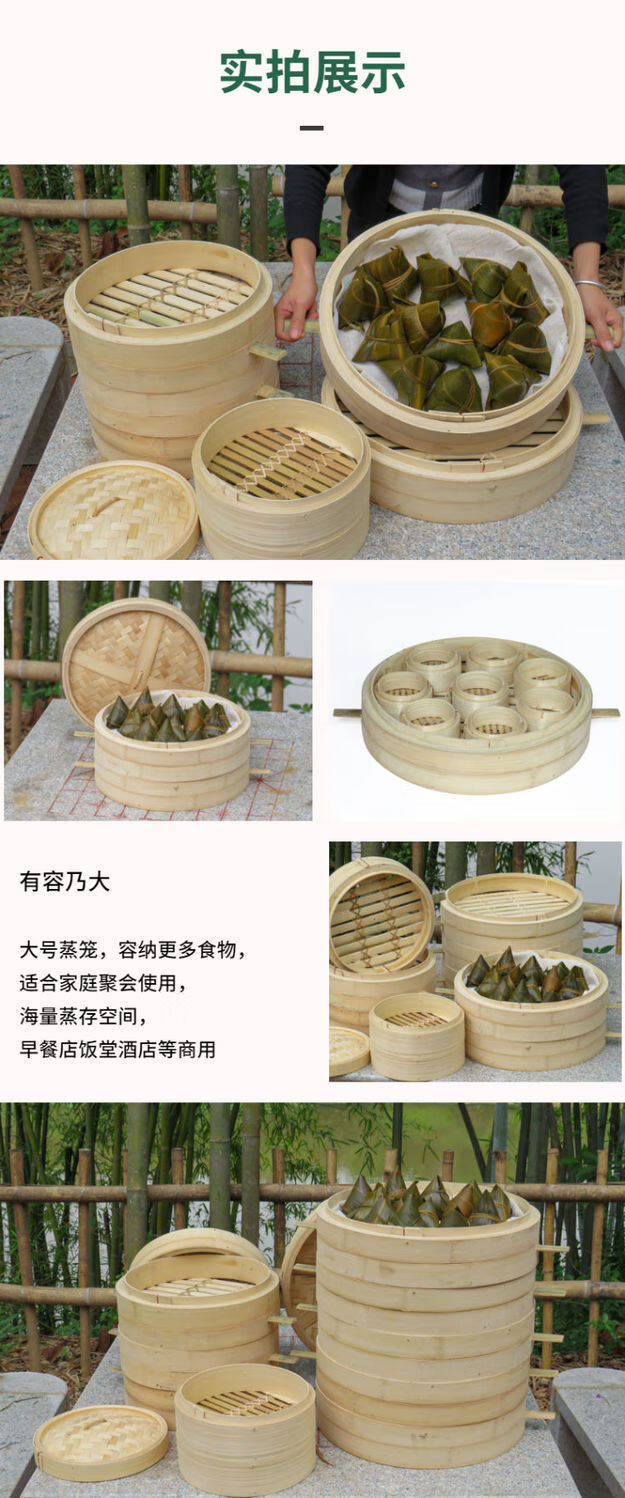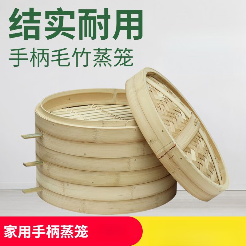 欧品缘家用加厚加扶把手竹子蒸笼屉家庭装包子馒头商用竹编蒸锅 30厘米加厚加扶手两笼一盖