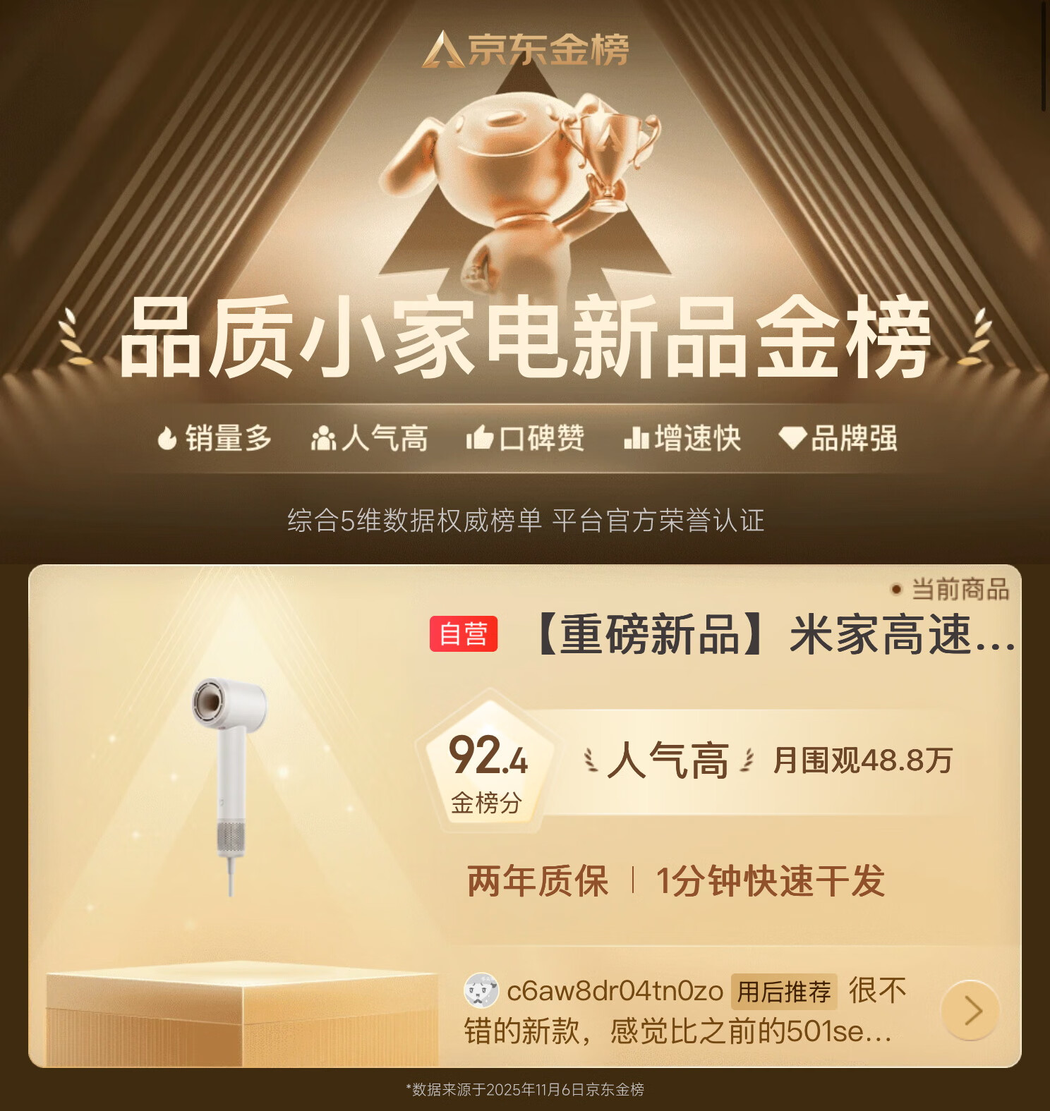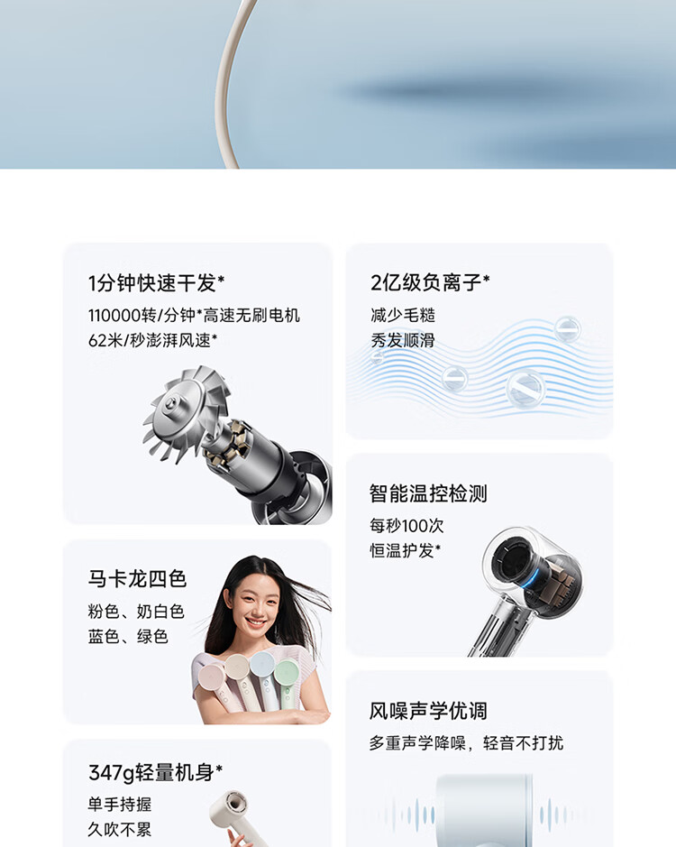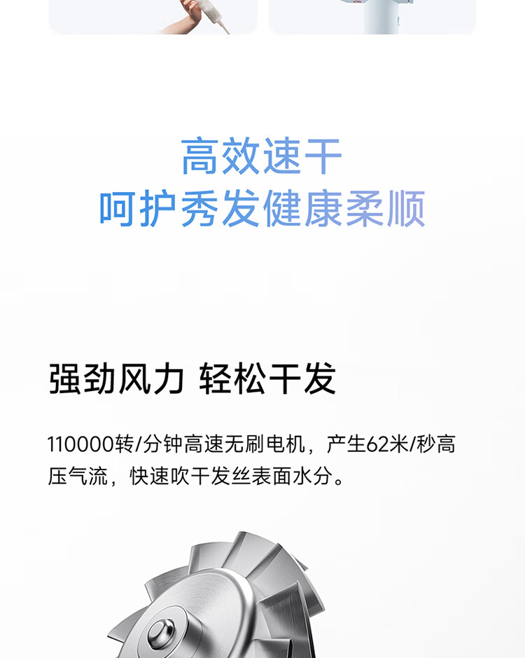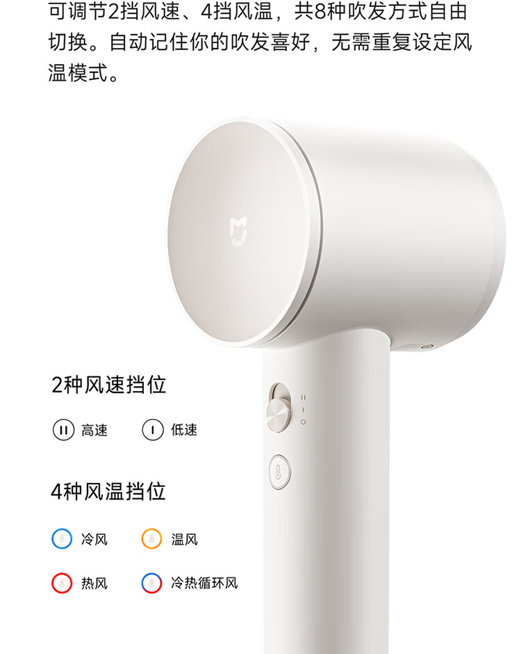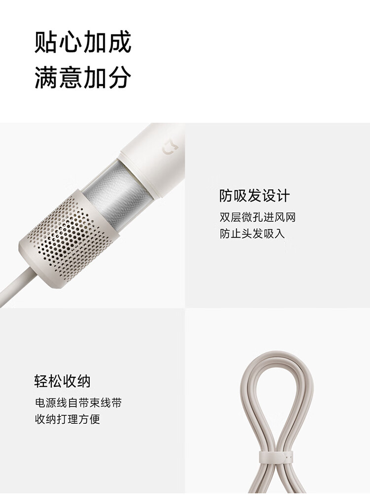 米家高速吹风机速干小米吹风机智能温控恒温静音大功率电吹风负离子家用吹风筒女友生日新年礼物奶白色