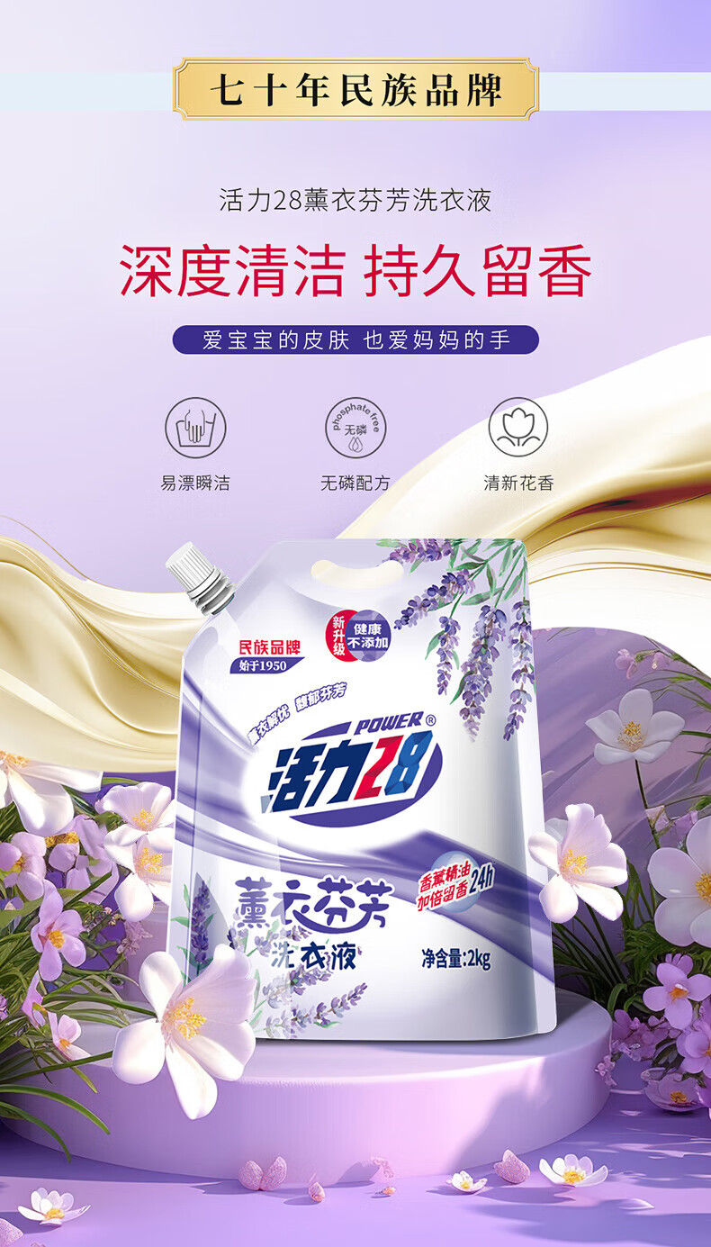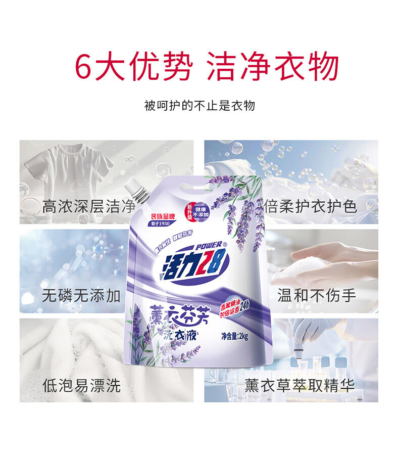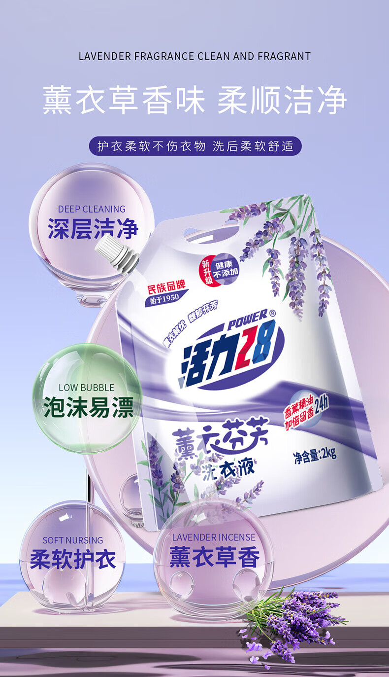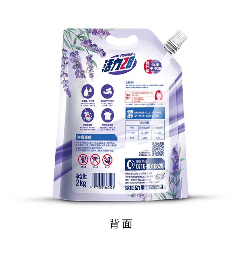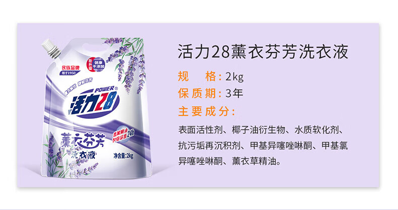 活力28洗衣液2kg 衣物去渍去污持久留香型 袋装补充装家庭装 整箱批发 活力28薰衣草洗衣液2kg