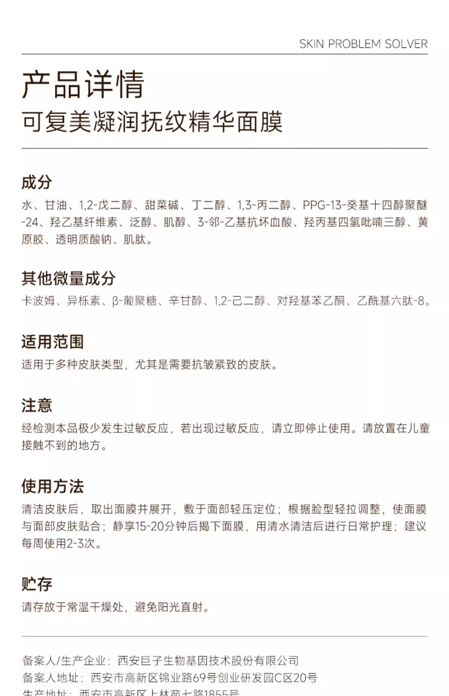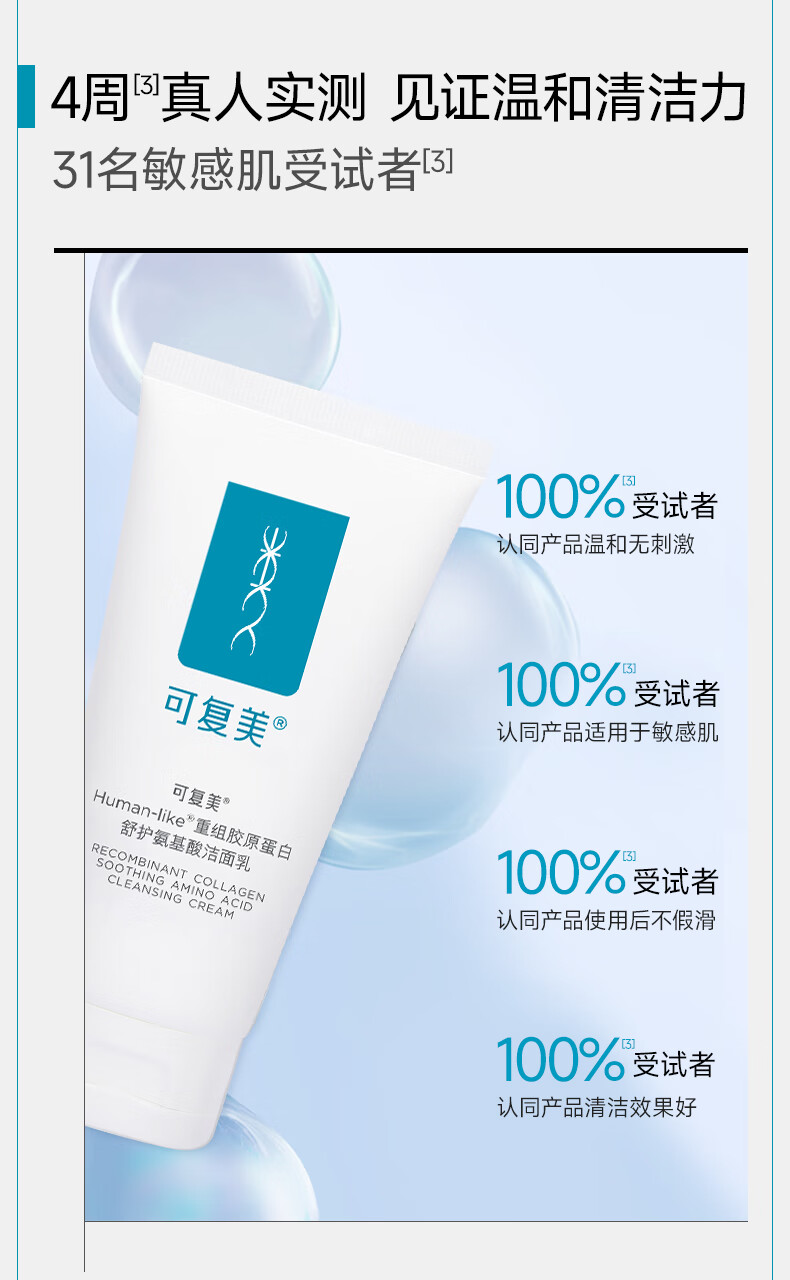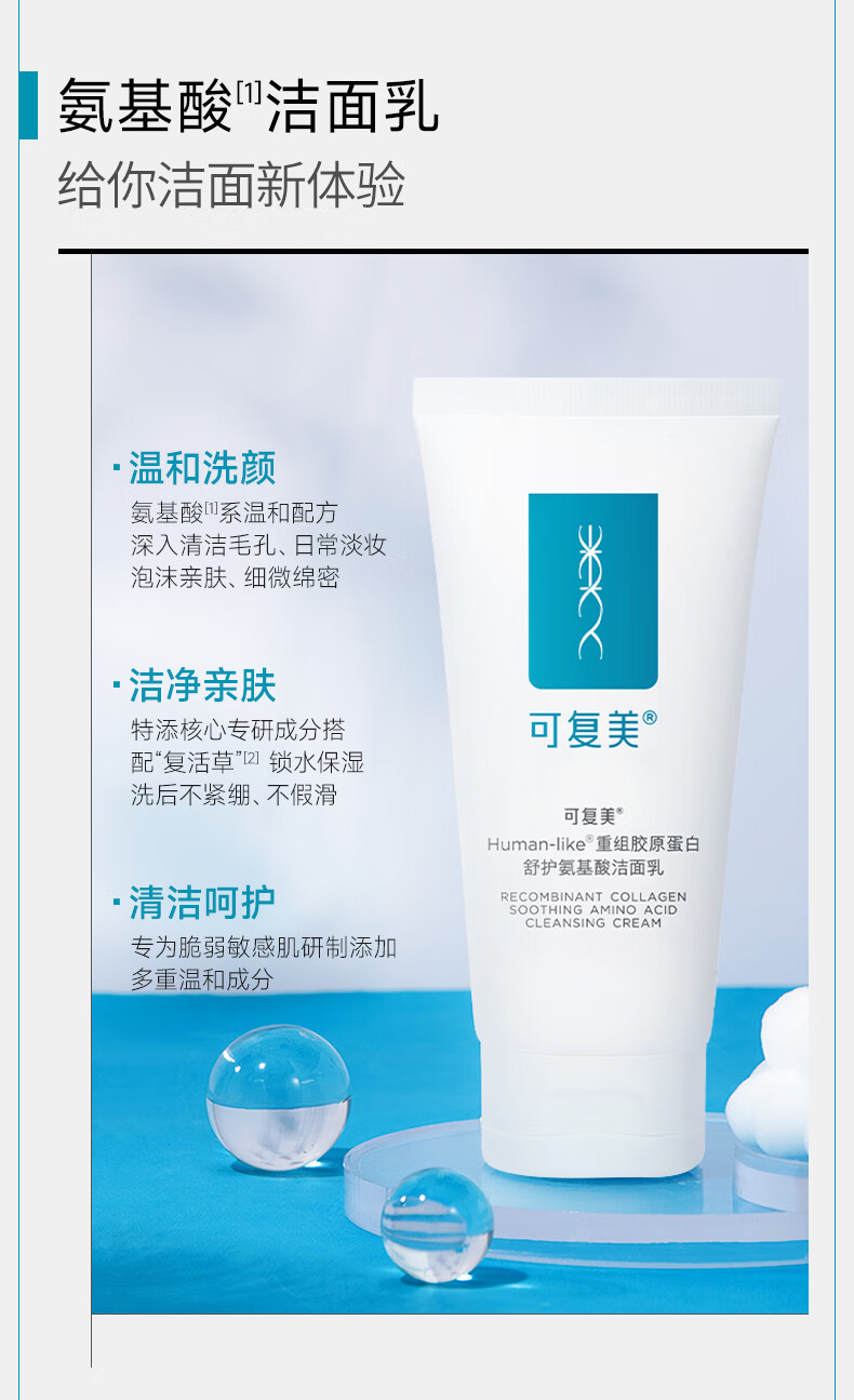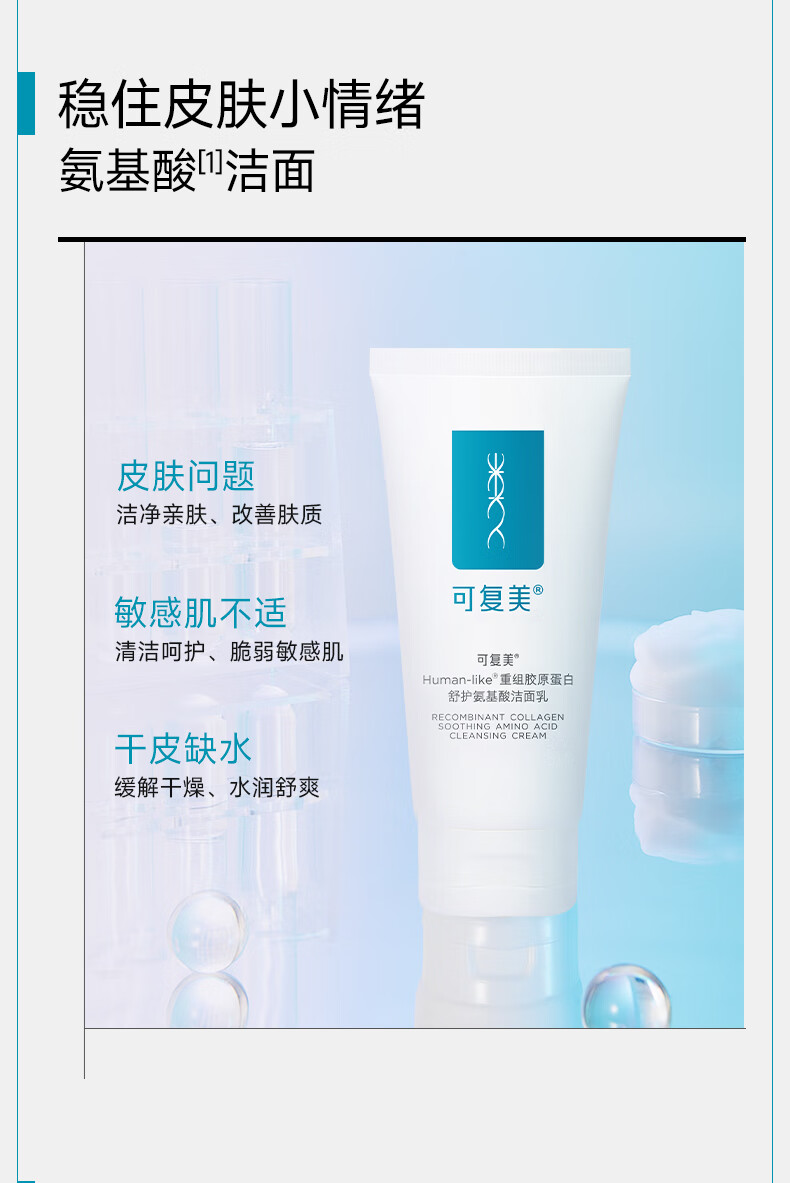 可复美氨基酸洁面套装透明质酸钠盈润精华面膜保湿水 胶原洁面+水润贴+抗皱面膜+柔肤水