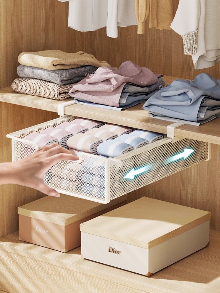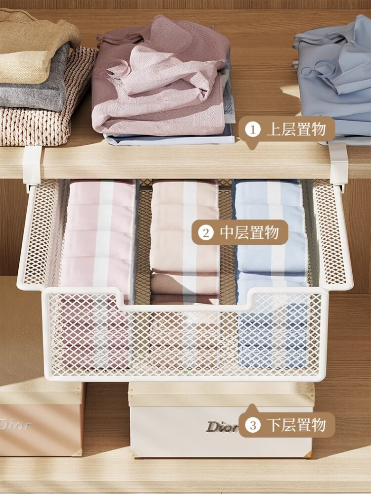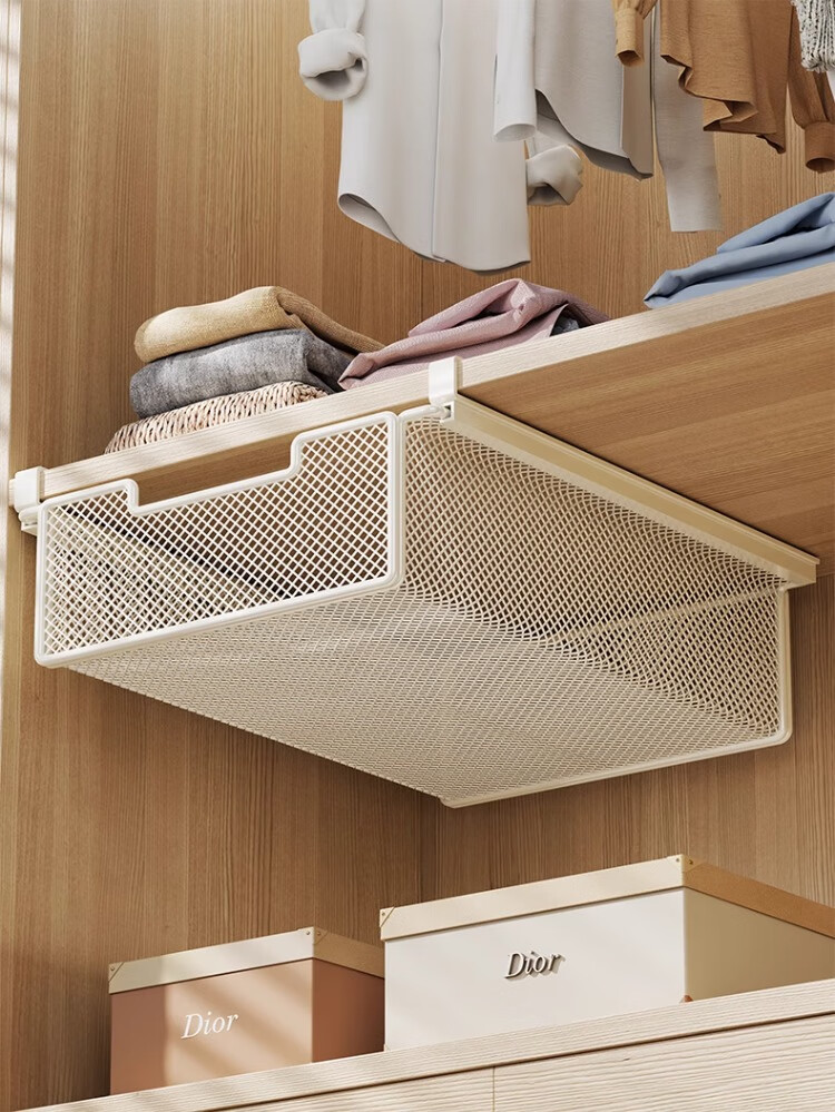 尔思家衣柜下抽屉式挂篮铁艺衣服收纳分层架家用挂式省空间衣物整理隔板 白色
