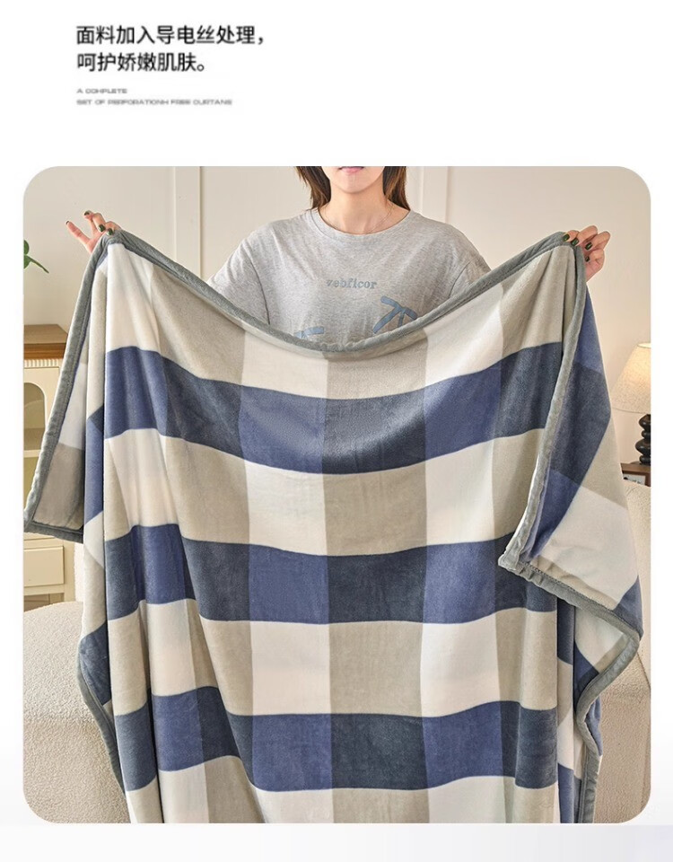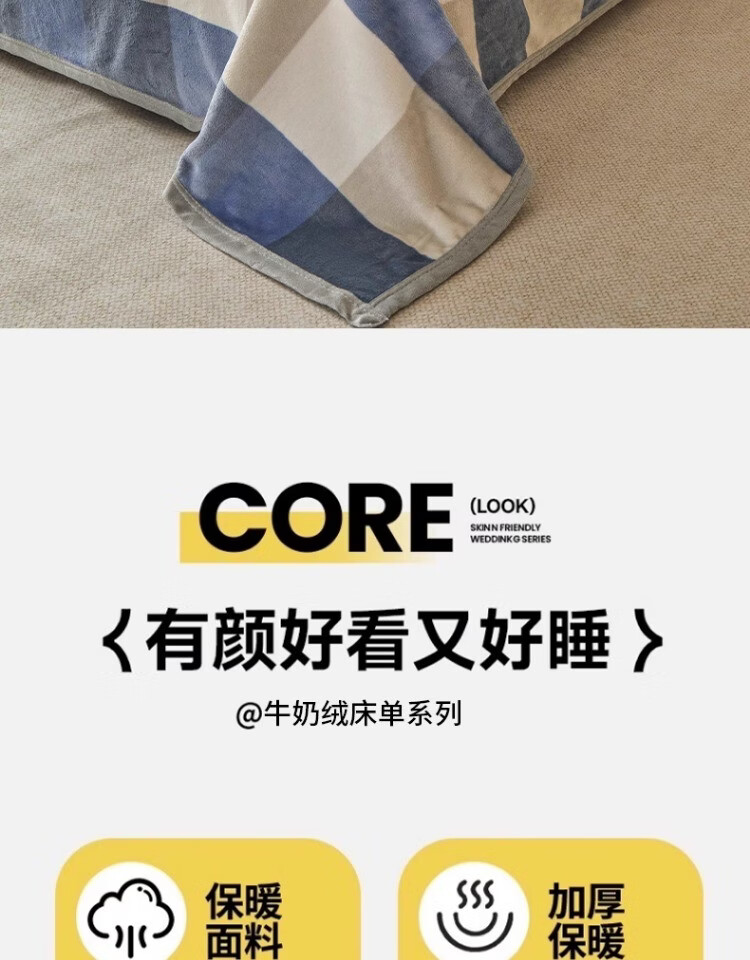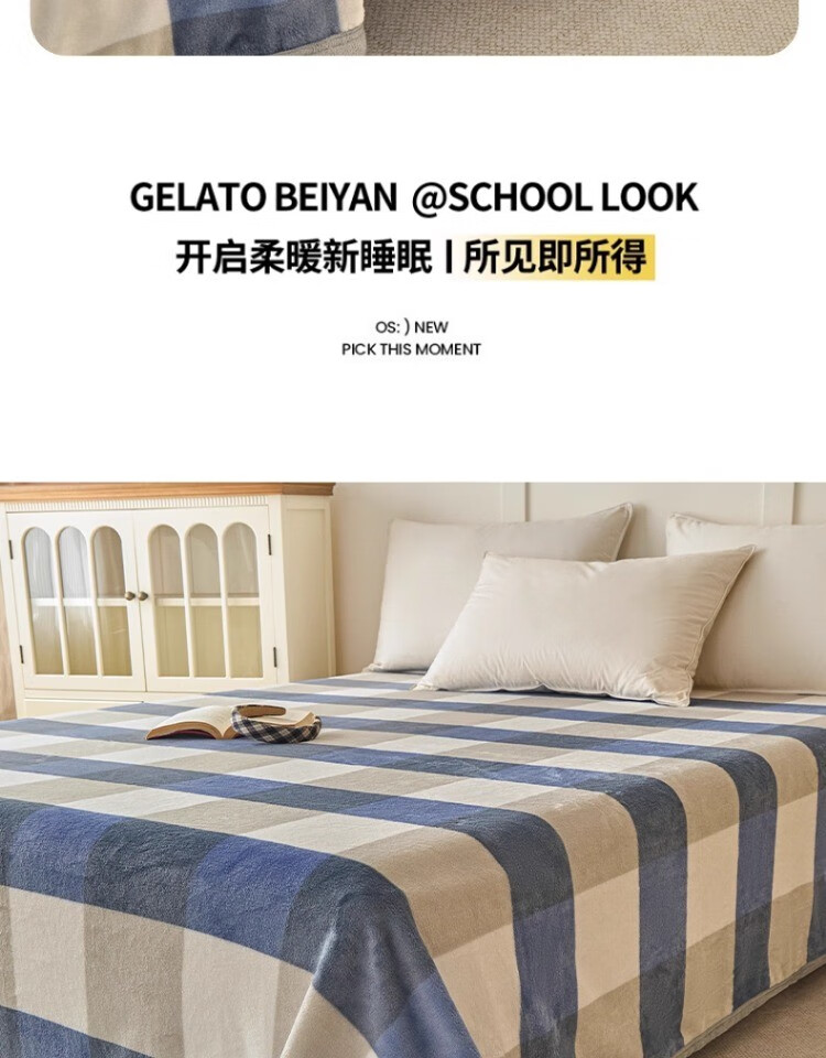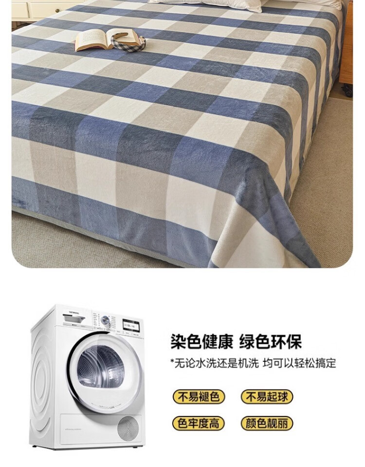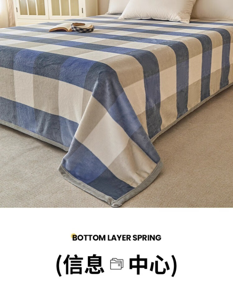 红蜻蜓(RED DRAGONFLY)牛奶绒床单冬季加绒加厚保暖床单单件200x230cm双人毛绒毯被单 牛奶绒床单-蓝大格【加厚保暖】 200x230cm-单床单【适合1.8m床】