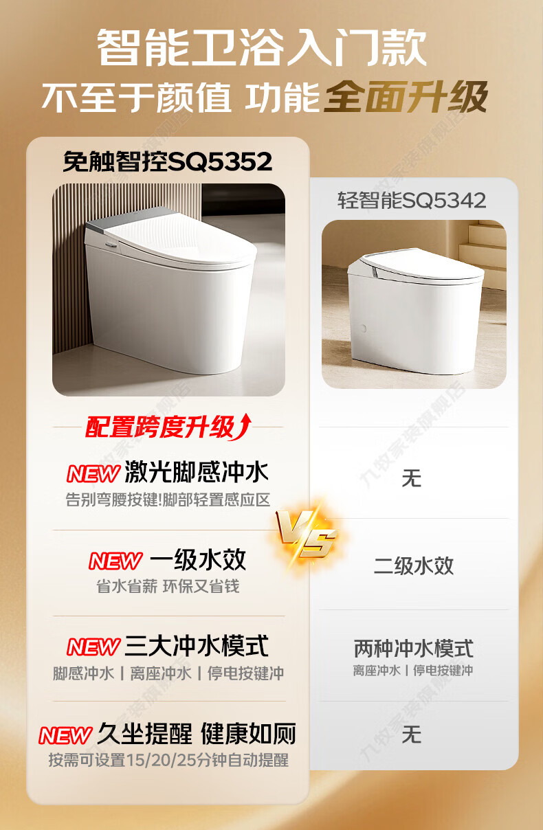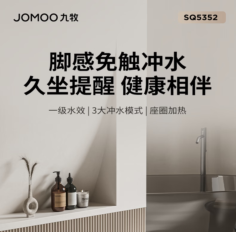 九牧(JOMOO)轻智能马桶座圈加热脚感冲水久坐提醒虹吸坐便器一级水效5342升级 【26年新品脚感免触冲+久坐提醒】SQ5352 305坑距【290-390以内选择】