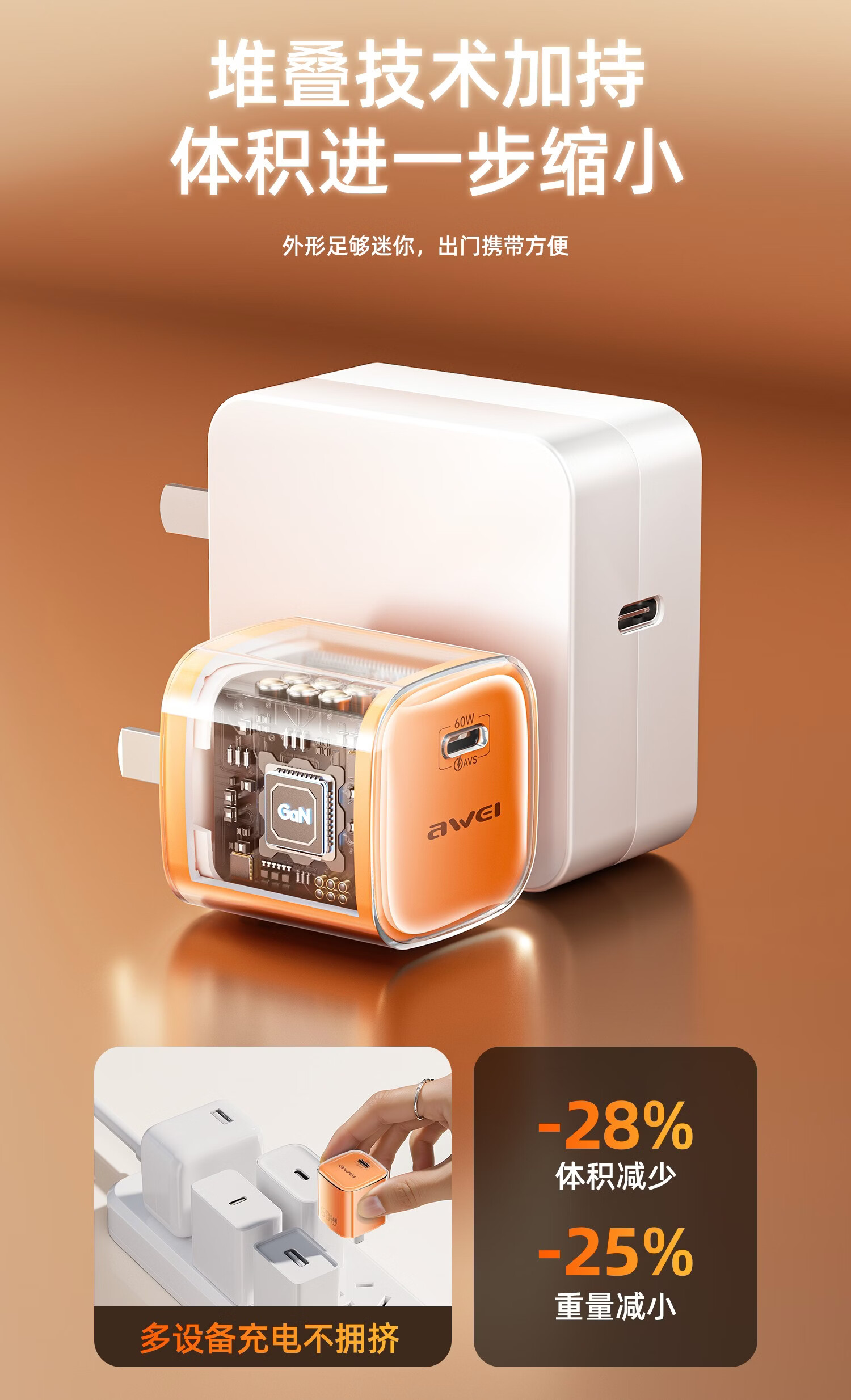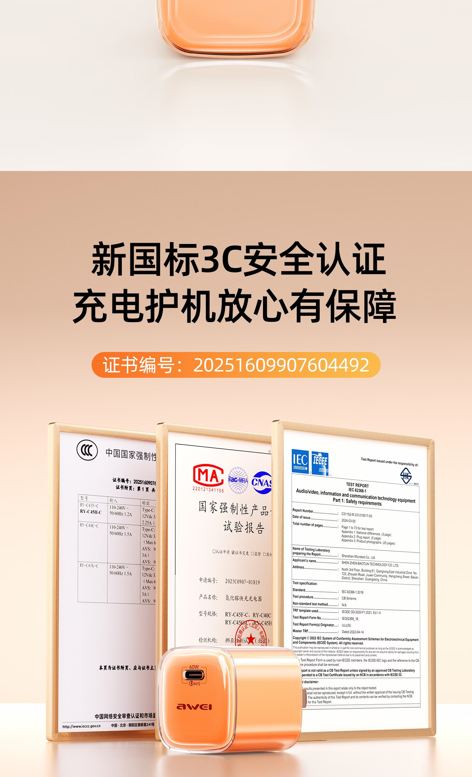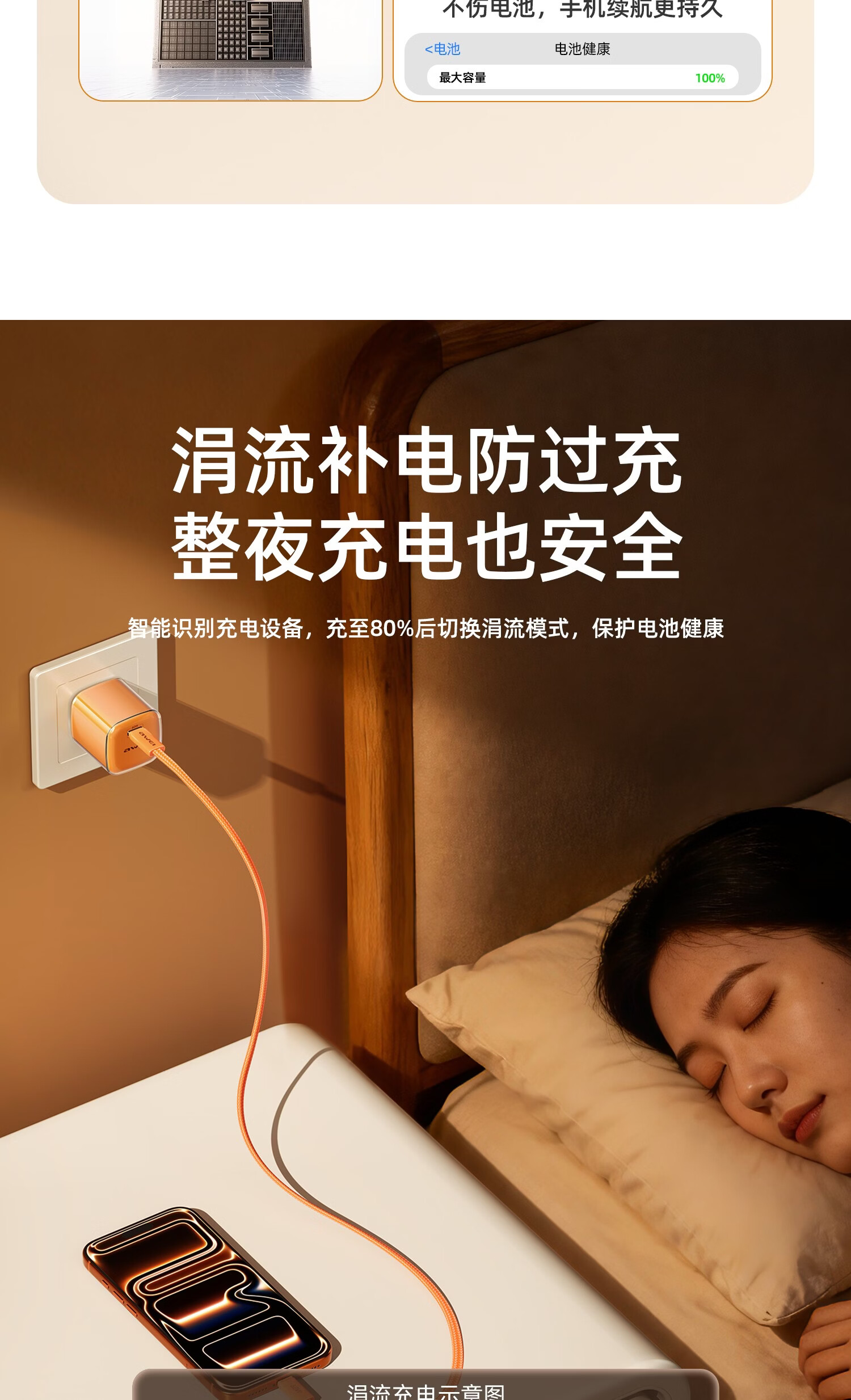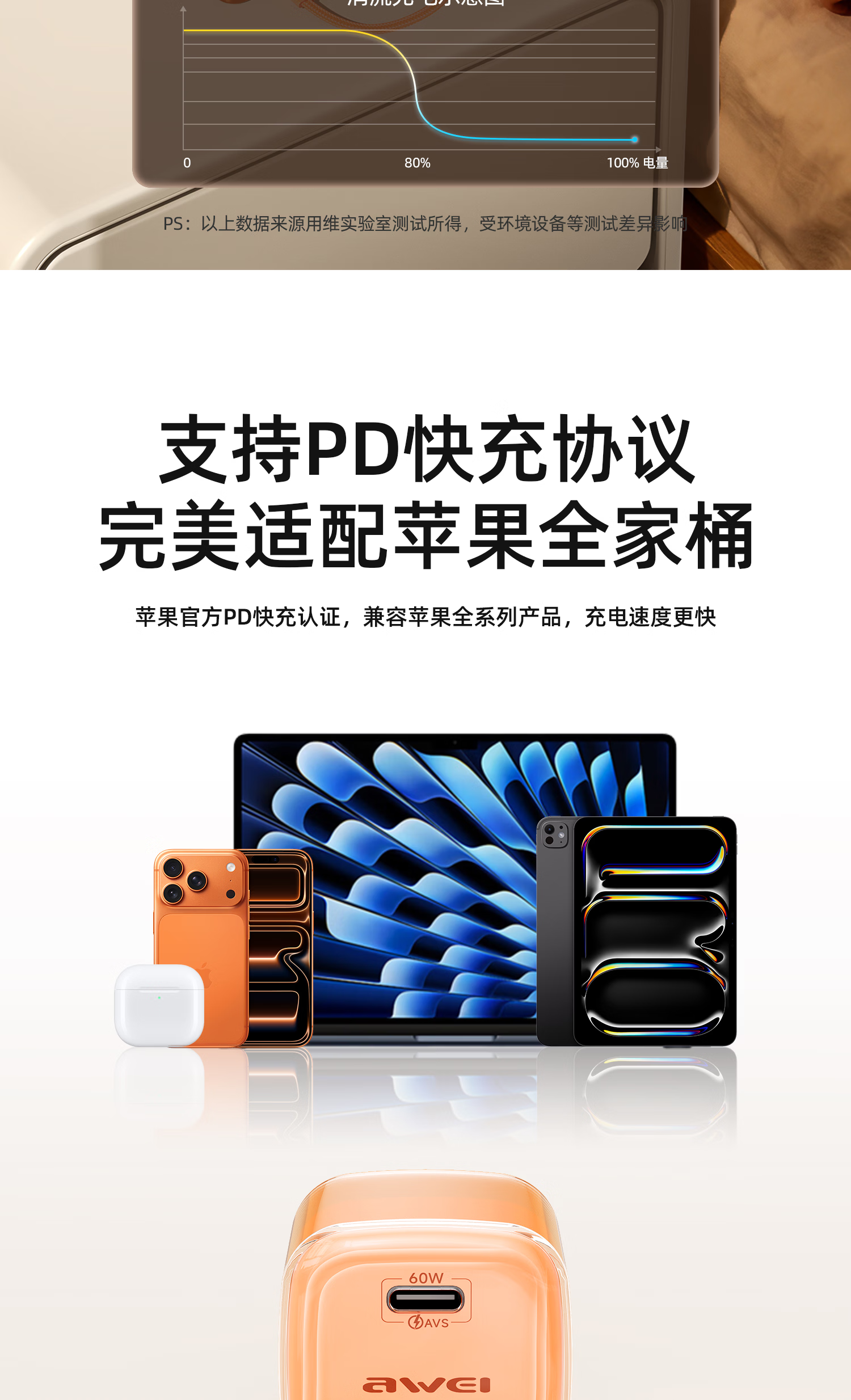 用维【iPhone17首选】新款60W充电器适用苹果新机iPhone17ProMax充电头16手机30W/45W快充PD氮化镓 【星宇橙】1m|C-C加宽编织线|60W低温闪充