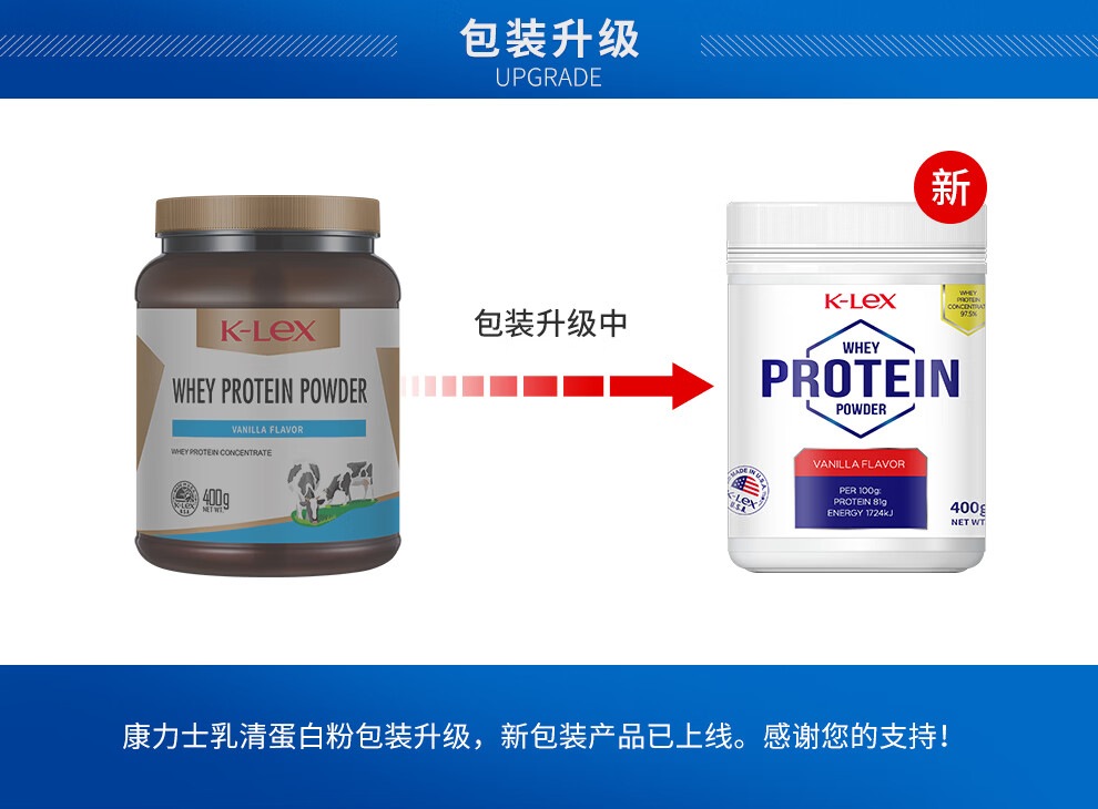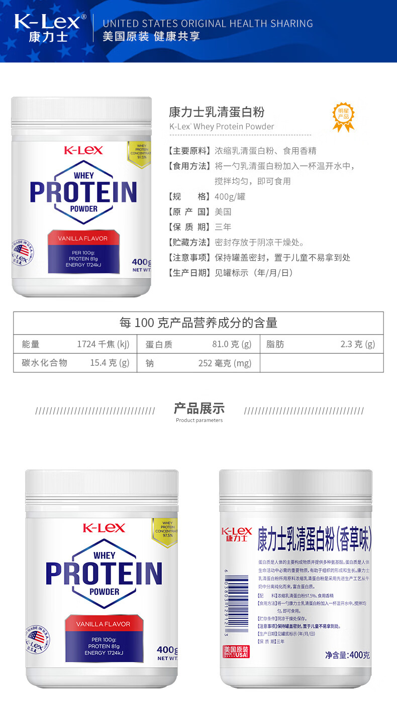 康力士美国原装进口乳清蛋白粉动物蛋白质中老年成人术后营养粉礼品 400g*2罐 含81%蛋白质