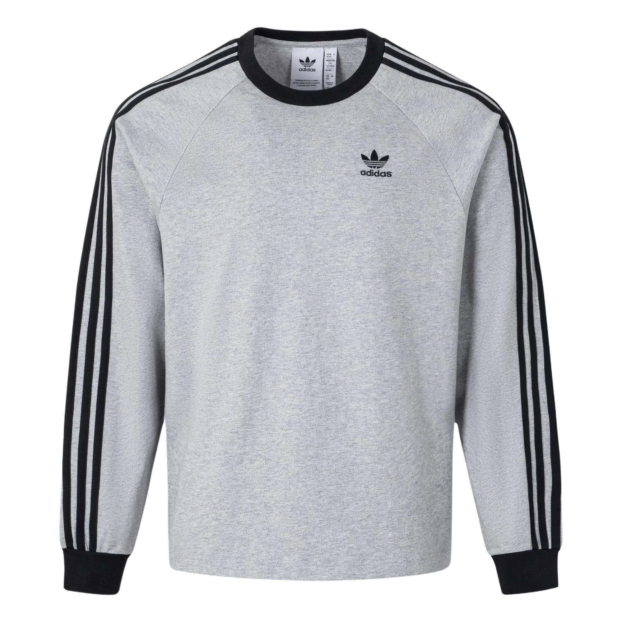 阿迪达斯(adidas)Classics3-StripesLS圆领运动条纹长袖T恤男款中麻灰/黑色 中麻灰/黑色 XS