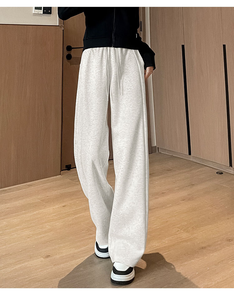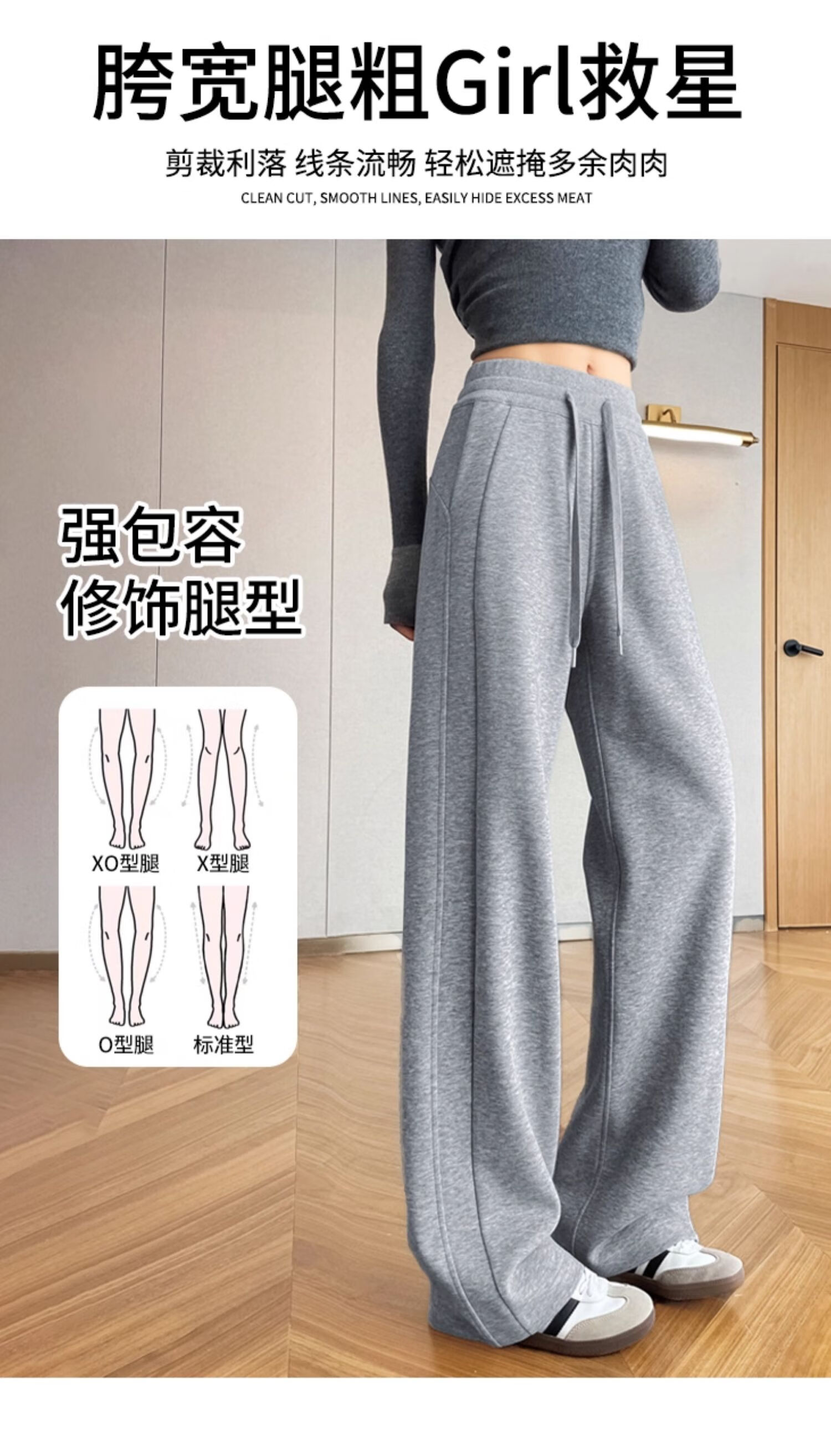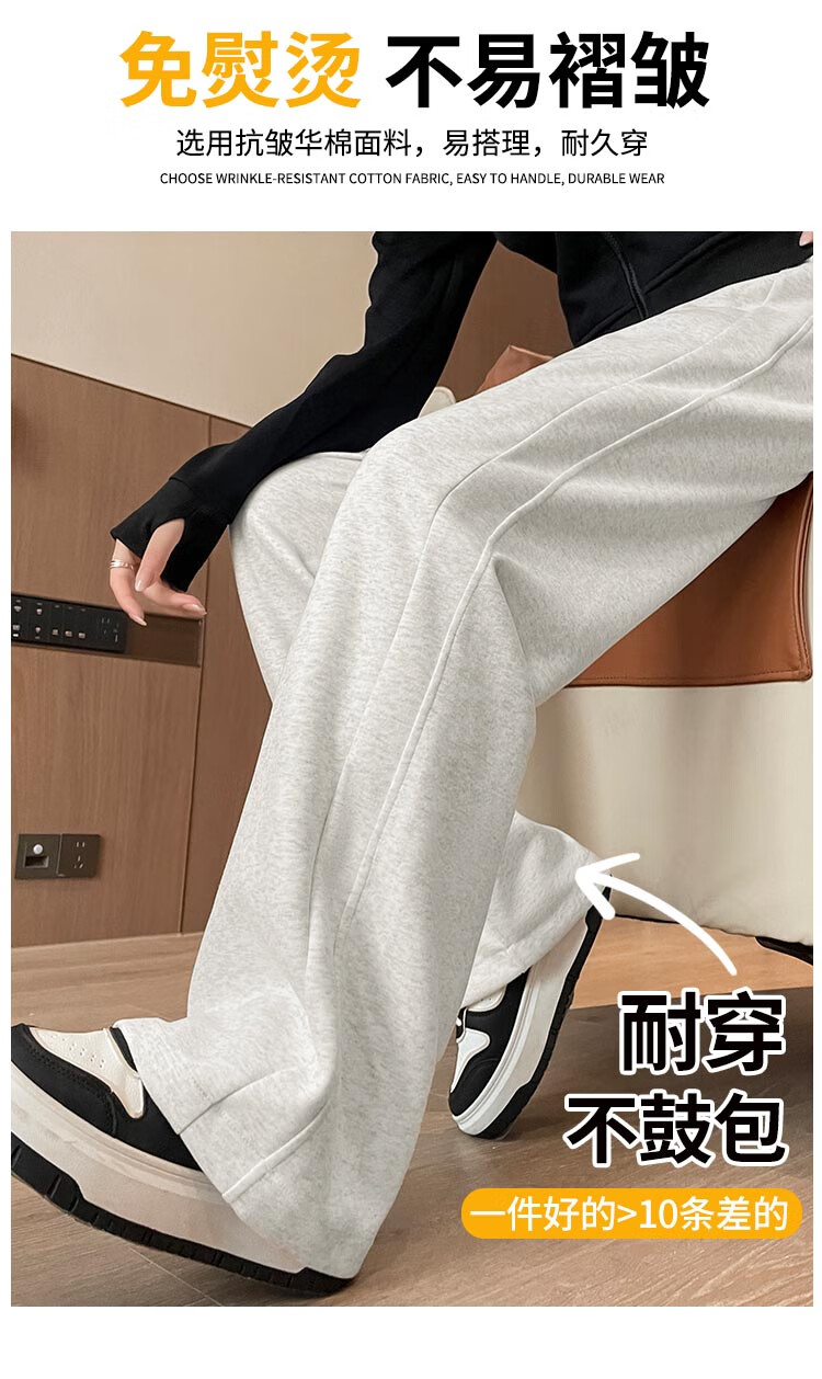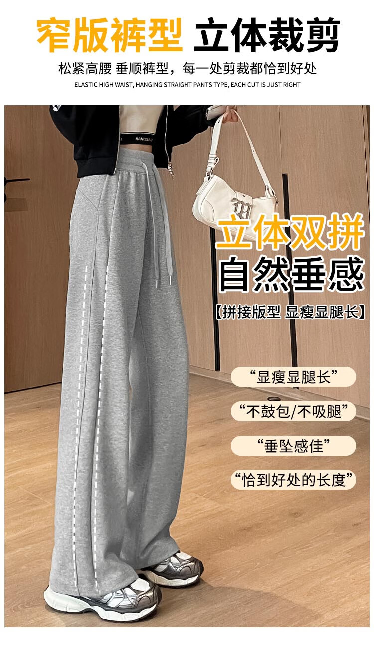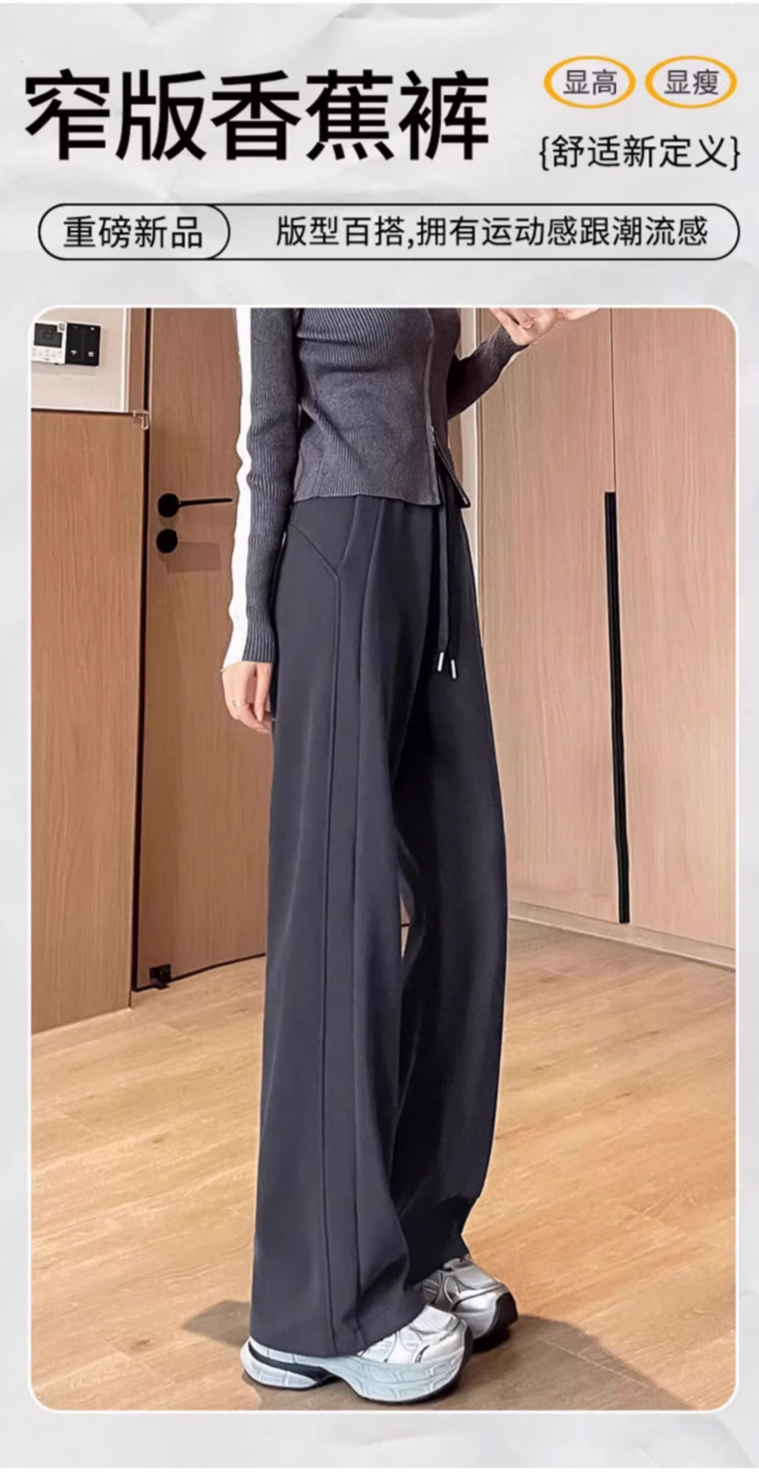 翊尚美香蕉运动裤女2025年秋季新款休闲裤窄版小个子高腰直筒宽松卫裤 白灰色 【高品质显瘦遮肉款】 L 【推荐106-117斤】
