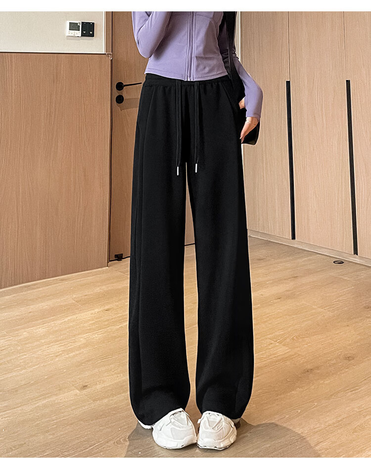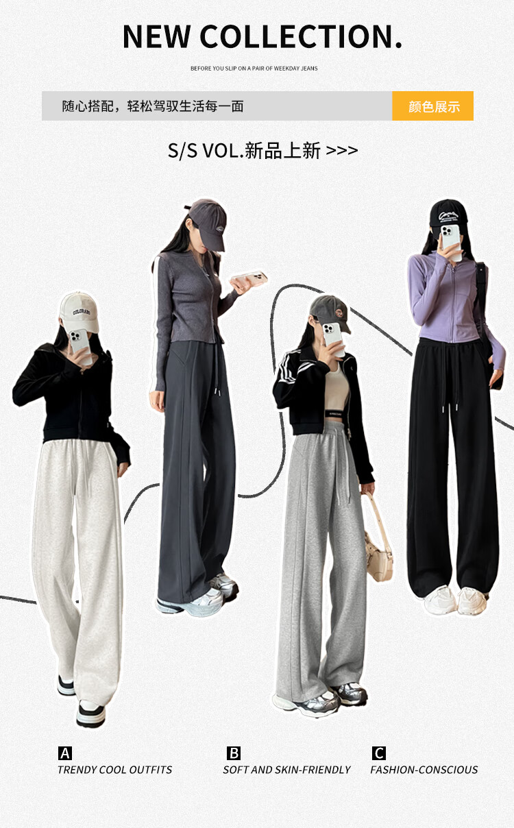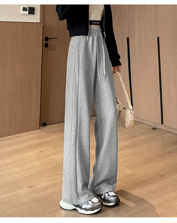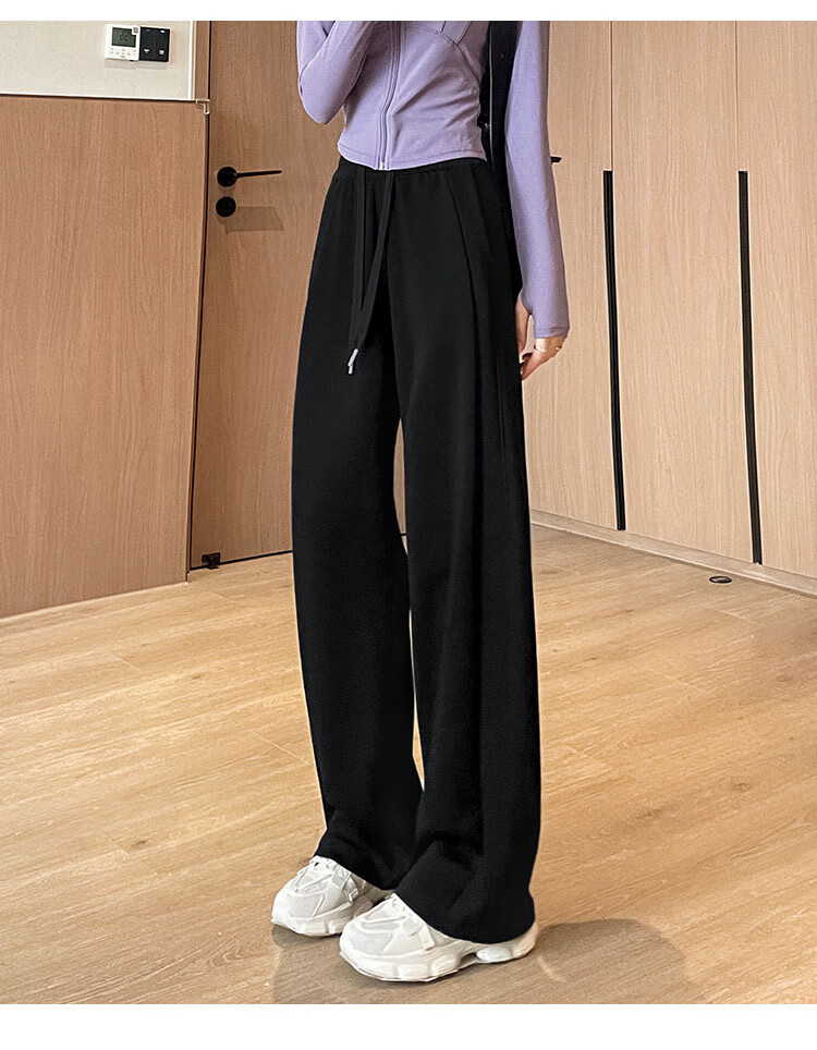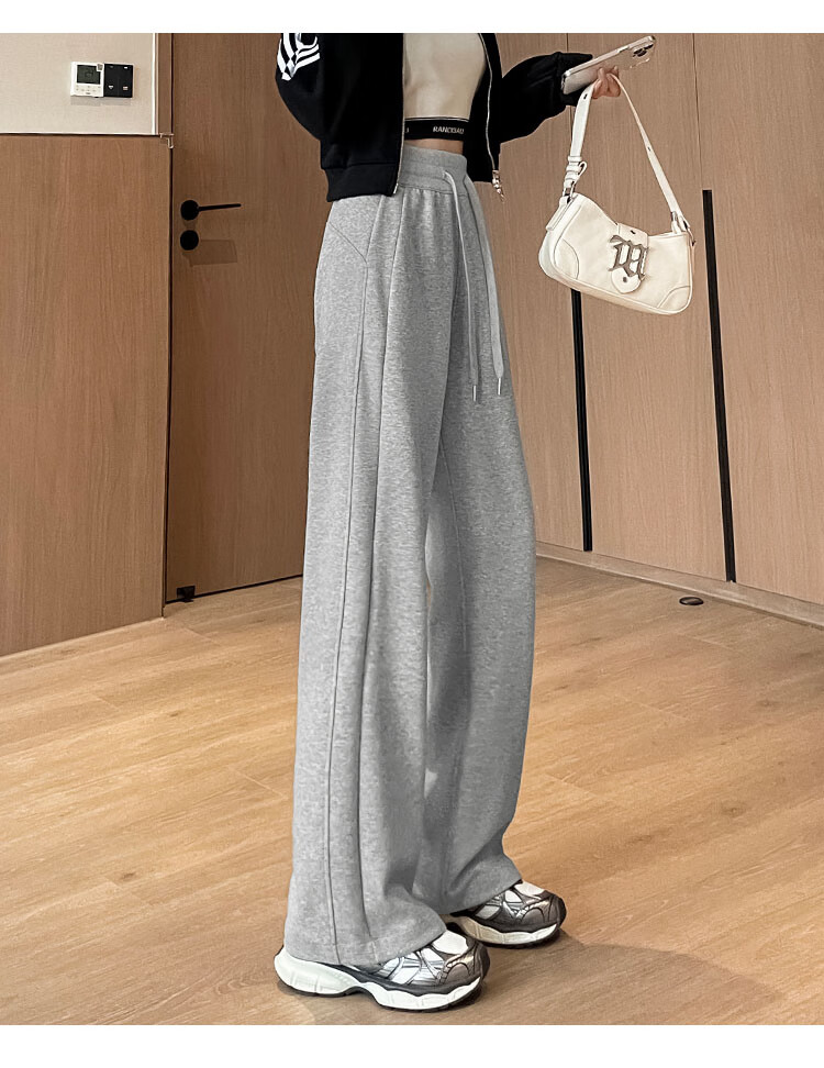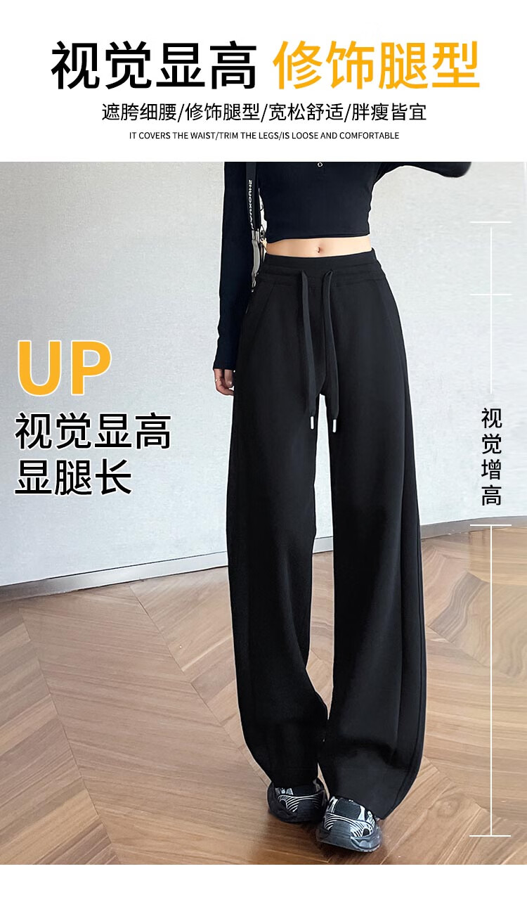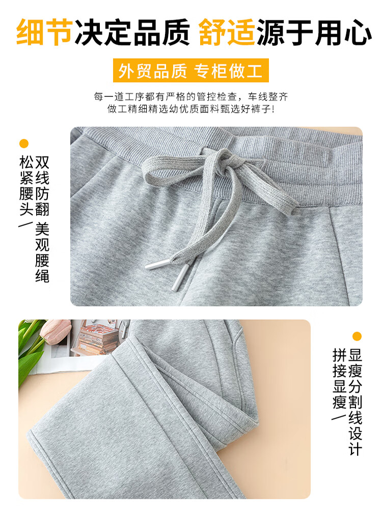 翊尚美香蕉运动裤女2025年秋季新款休闲裤窄版小个子高腰直筒宽松卫裤 白灰色 【高品质显瘦遮肉款】 L 【推荐106-117斤】