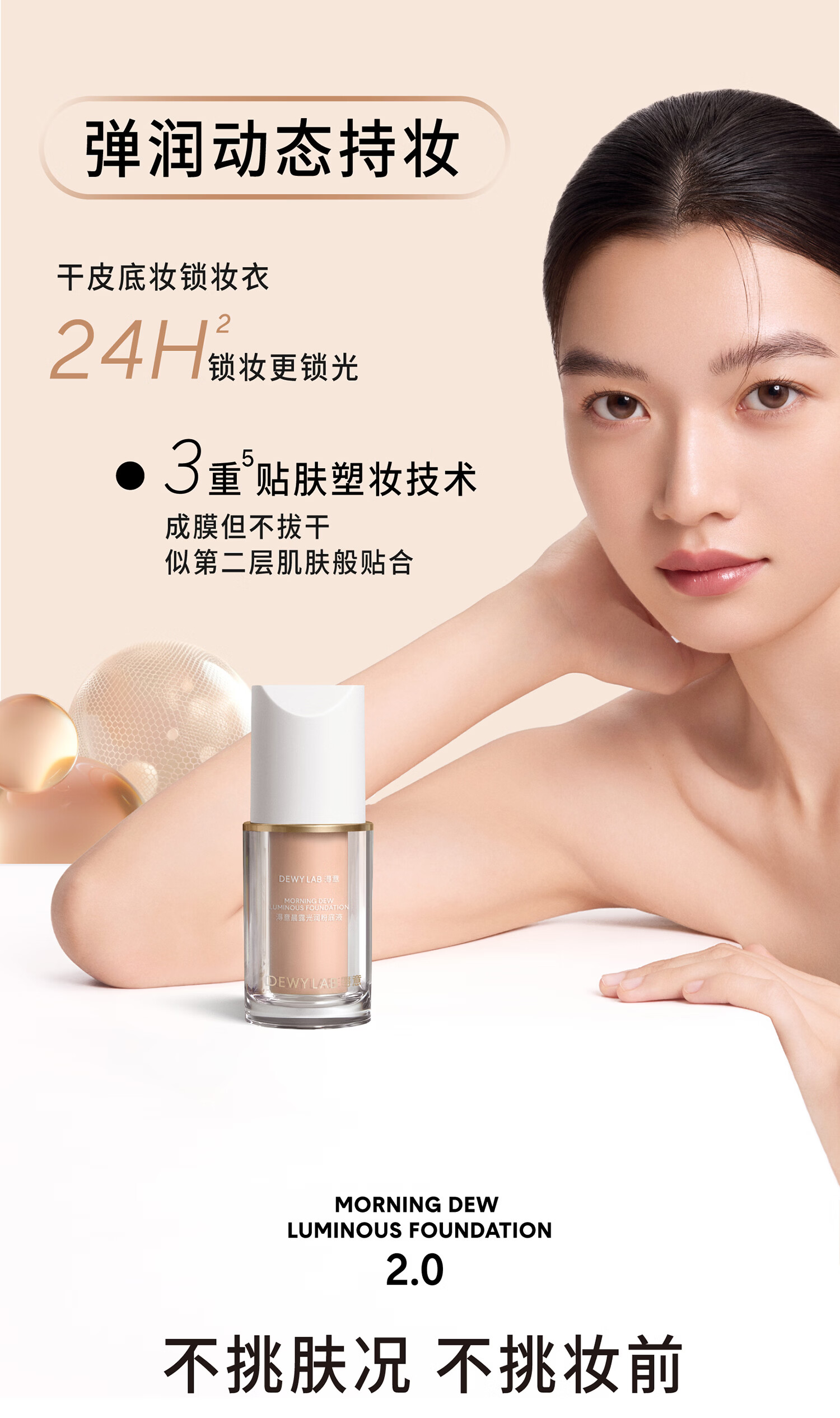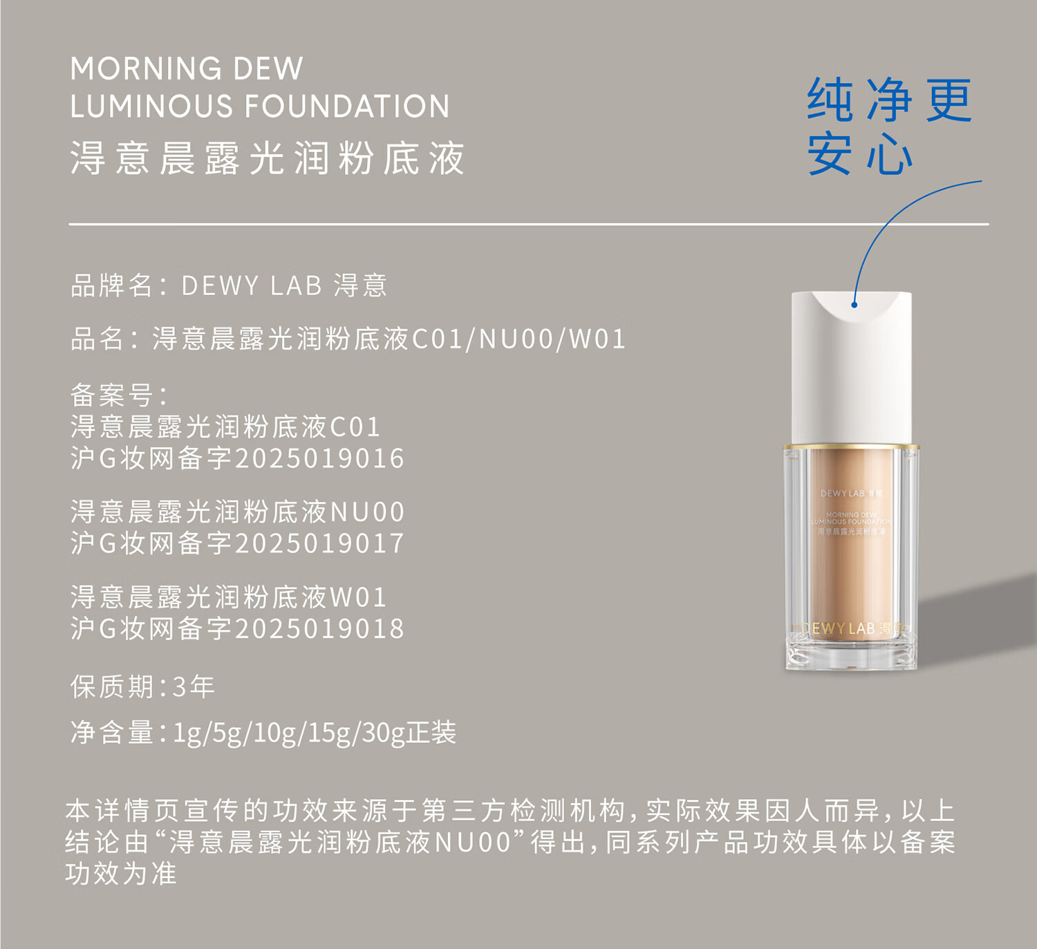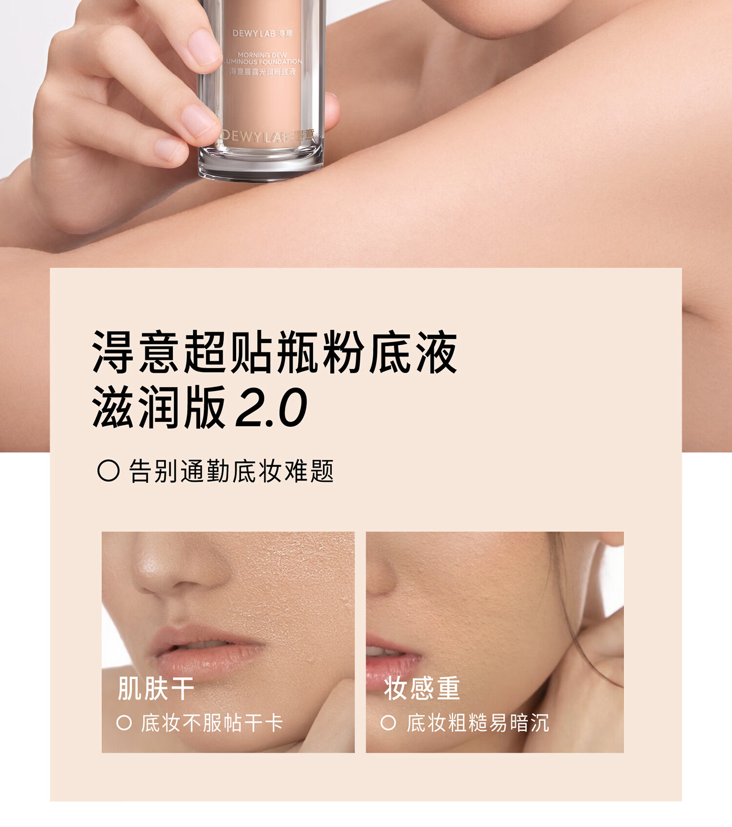 淂意晨露粉底液遮瑕BB霜得意保湿提亮干皮滋润持久轻薄新年礼物生日 【滋润版】晨露光润2.0粉底液30ml NU00象牙白
