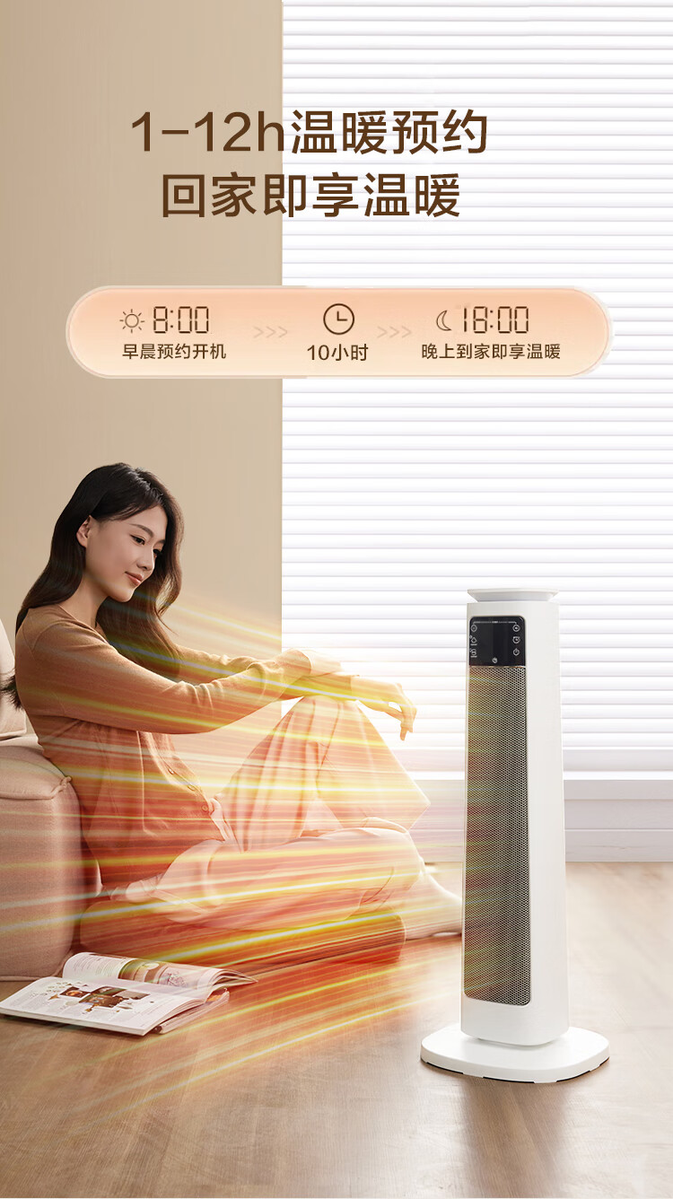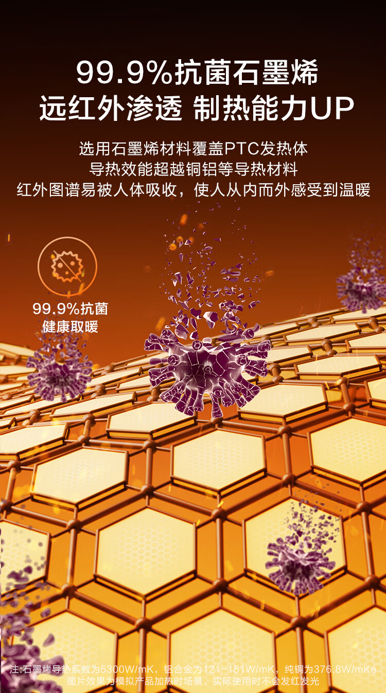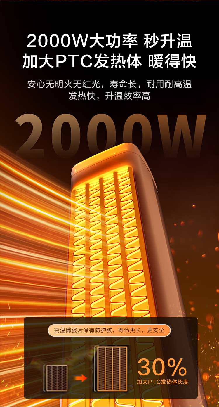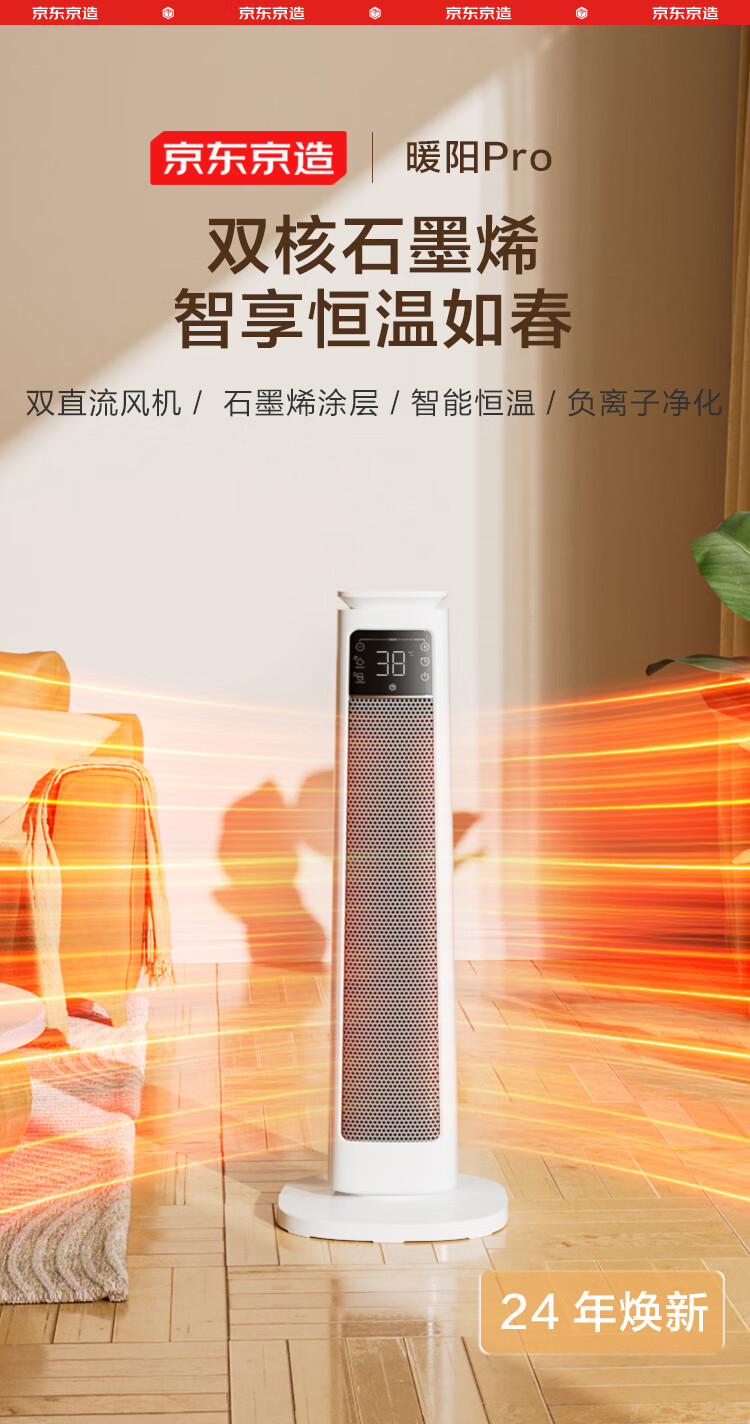 京东京造【超级单品】 石墨烯智能双核小太阳取暖器暖风机电暖气 远程遥控 负离子 智能恒温数显 暖阳Pro
