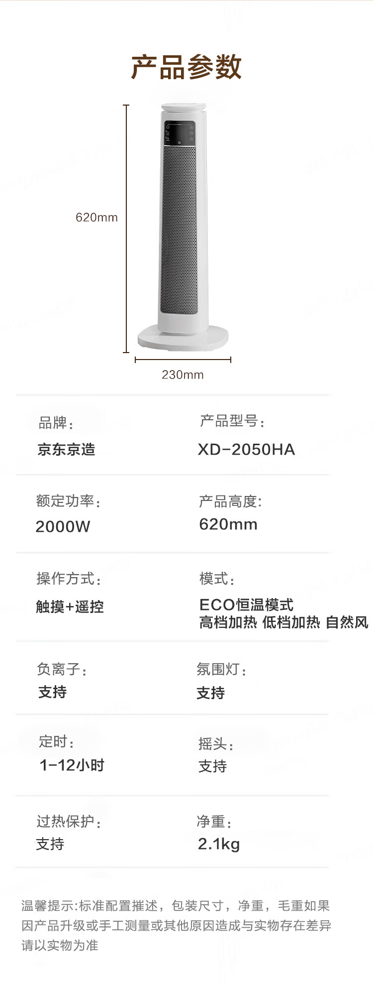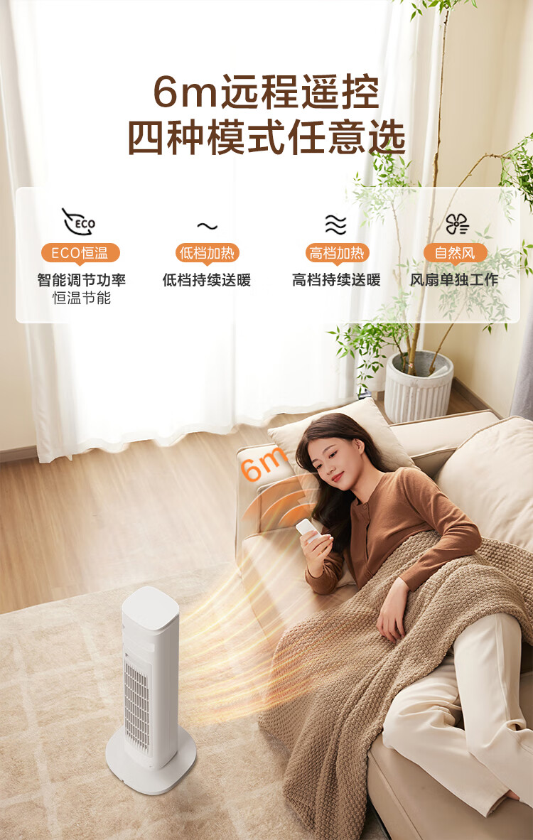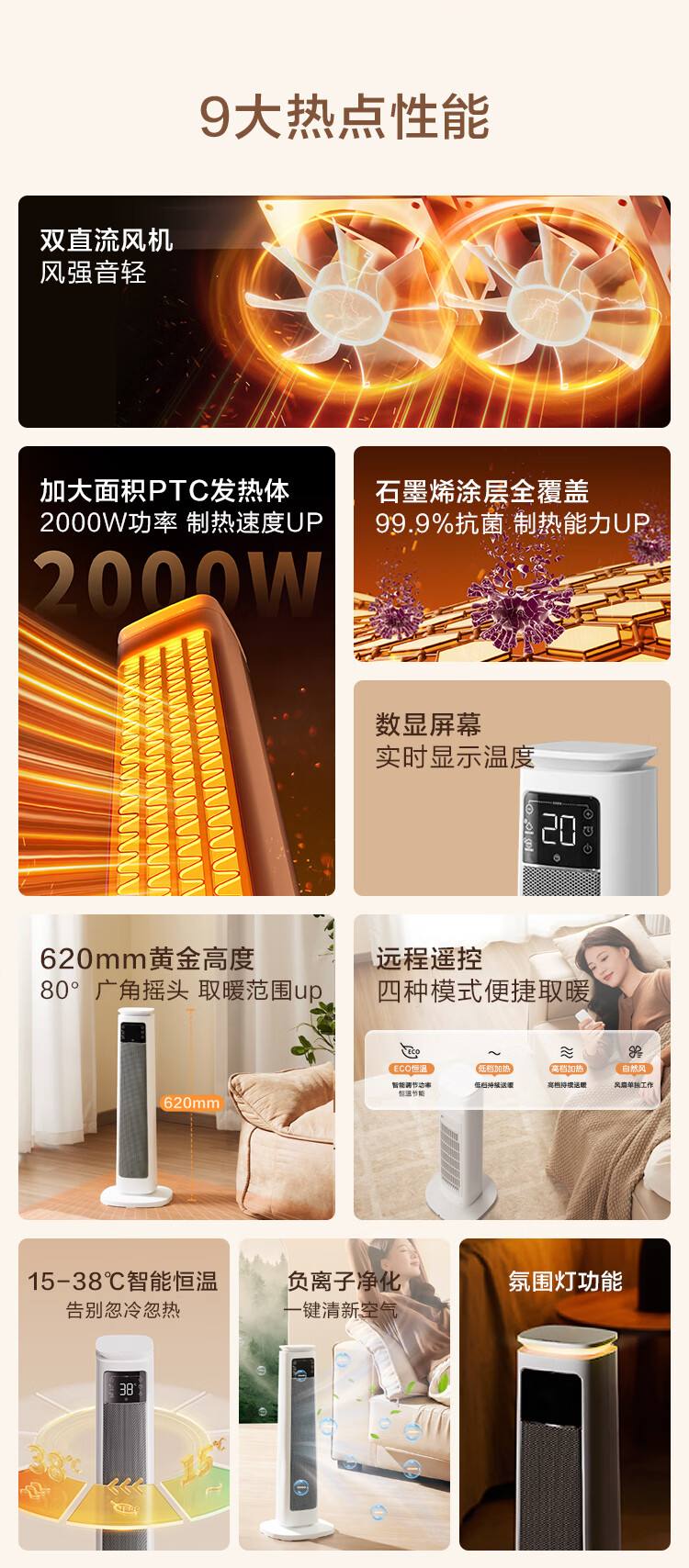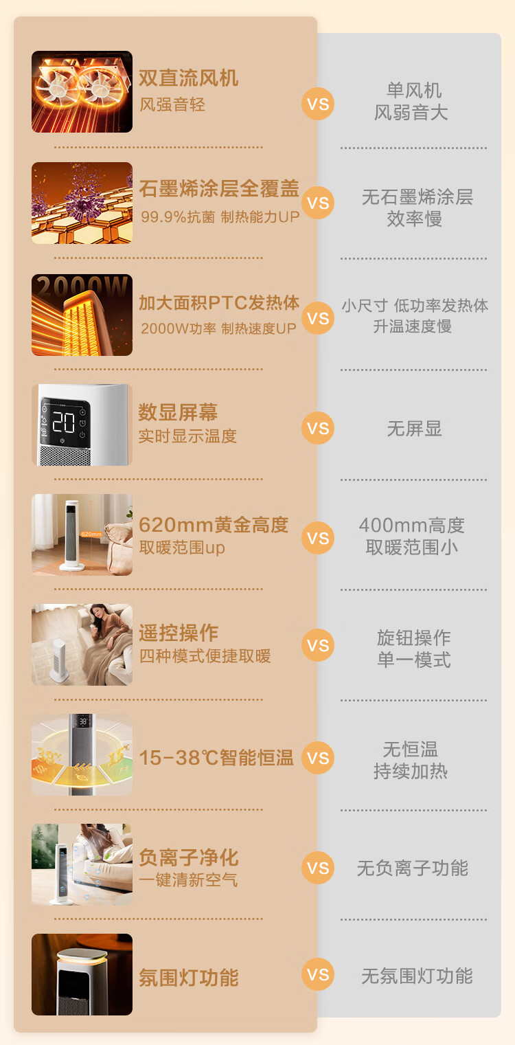 京东京造【超级单品】 石墨烯智能双核小太阳取暖器暖风机电暖气 远程遥控 负离子 智能恒温数显 暖阳Pro
