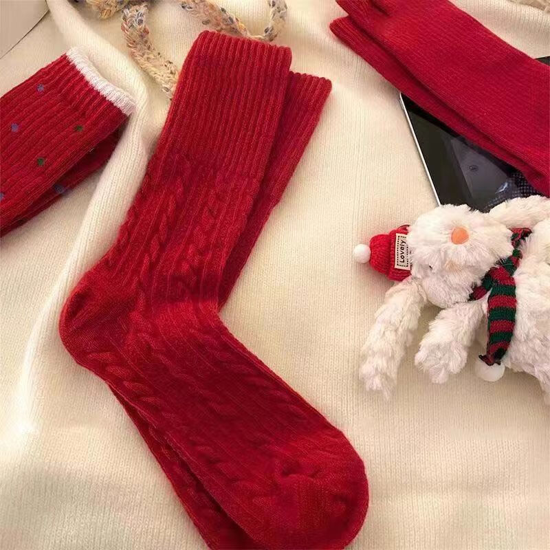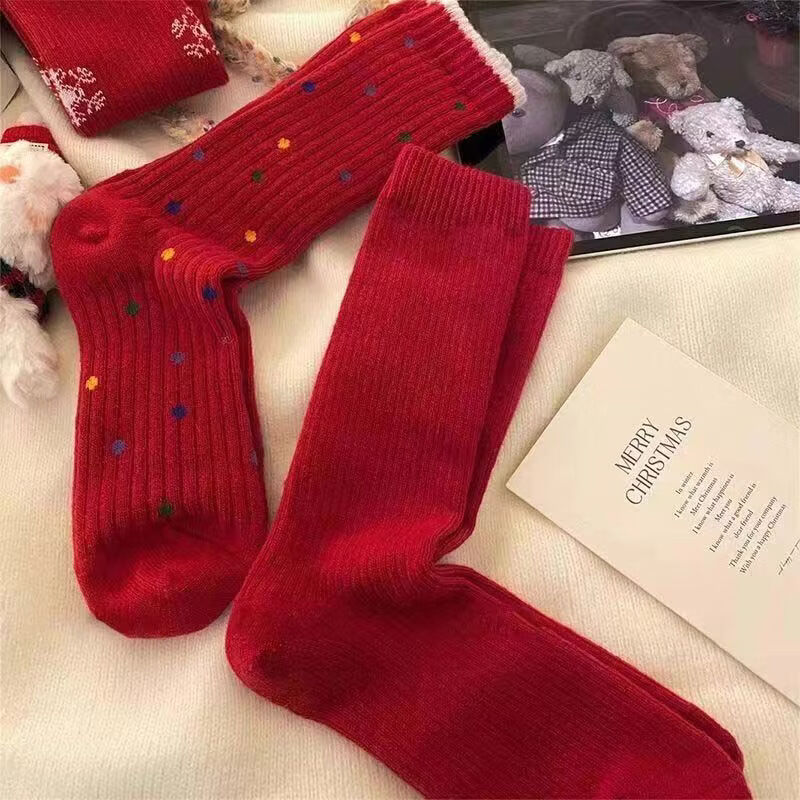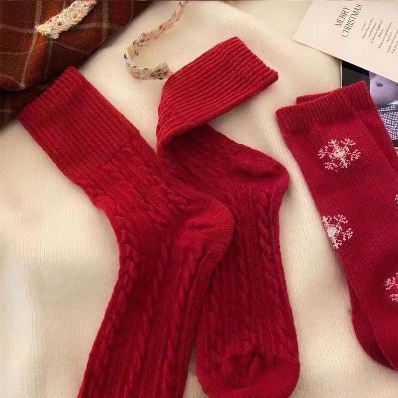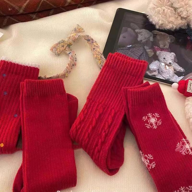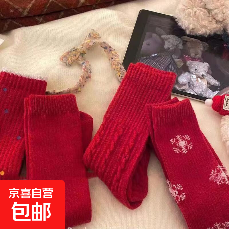 "祝你有始料不及的运气"【暖冬本命红】红色袜子女生本命年中筒袜 款式随机1双装 均码