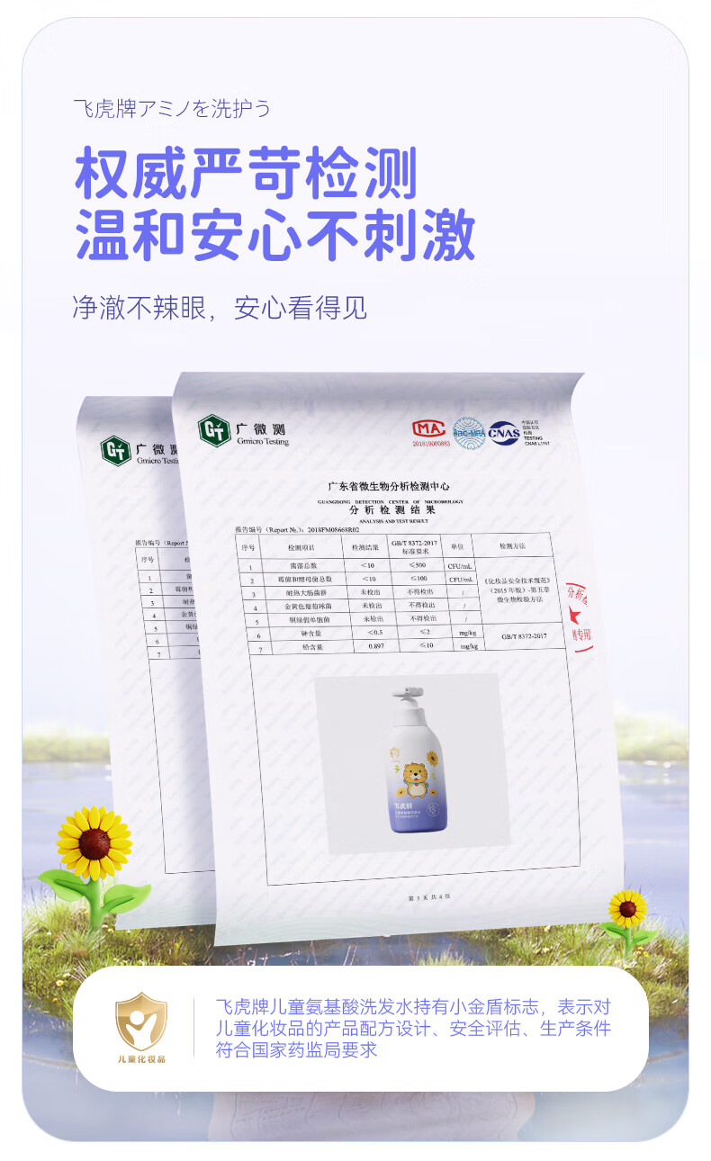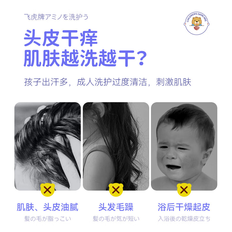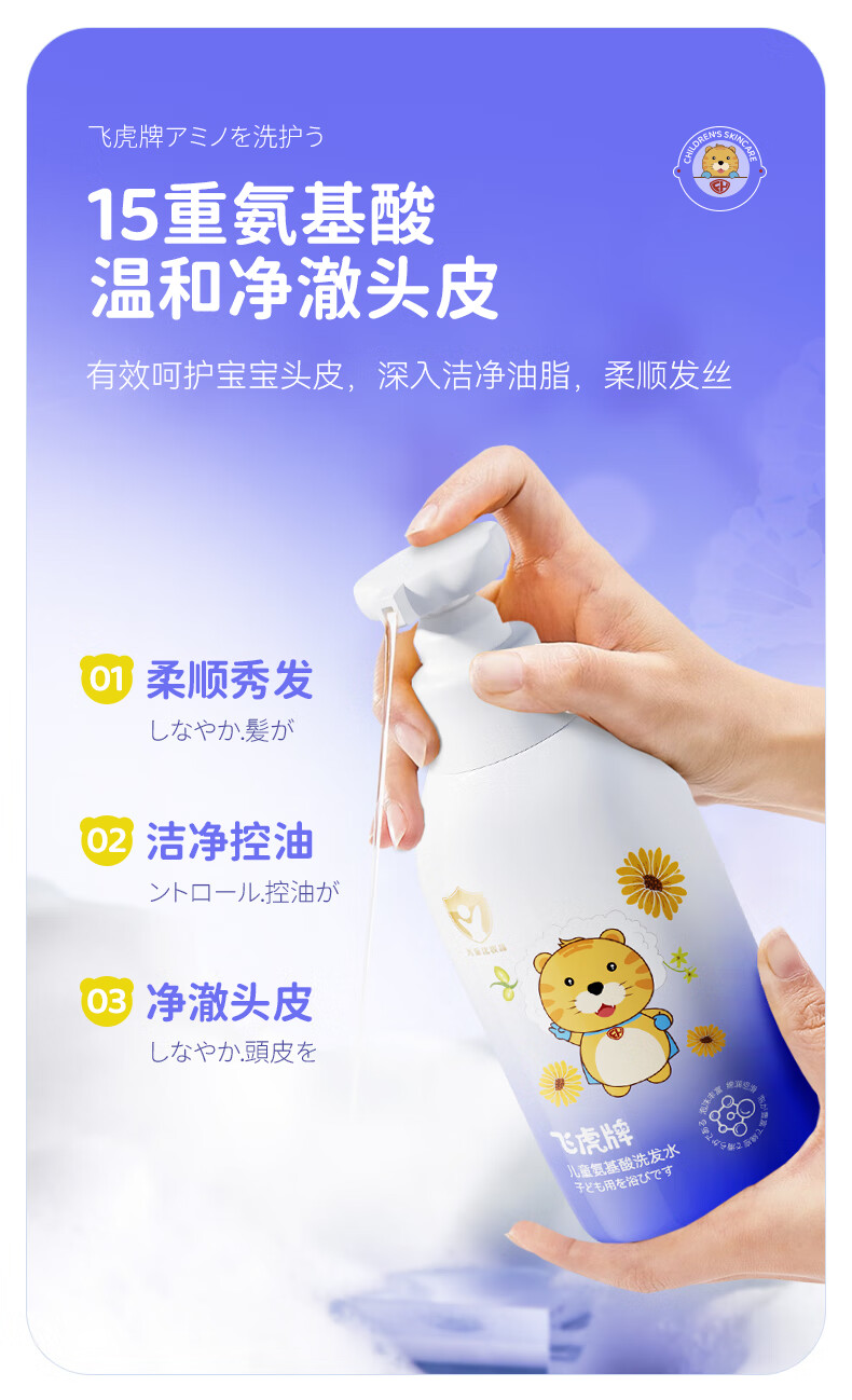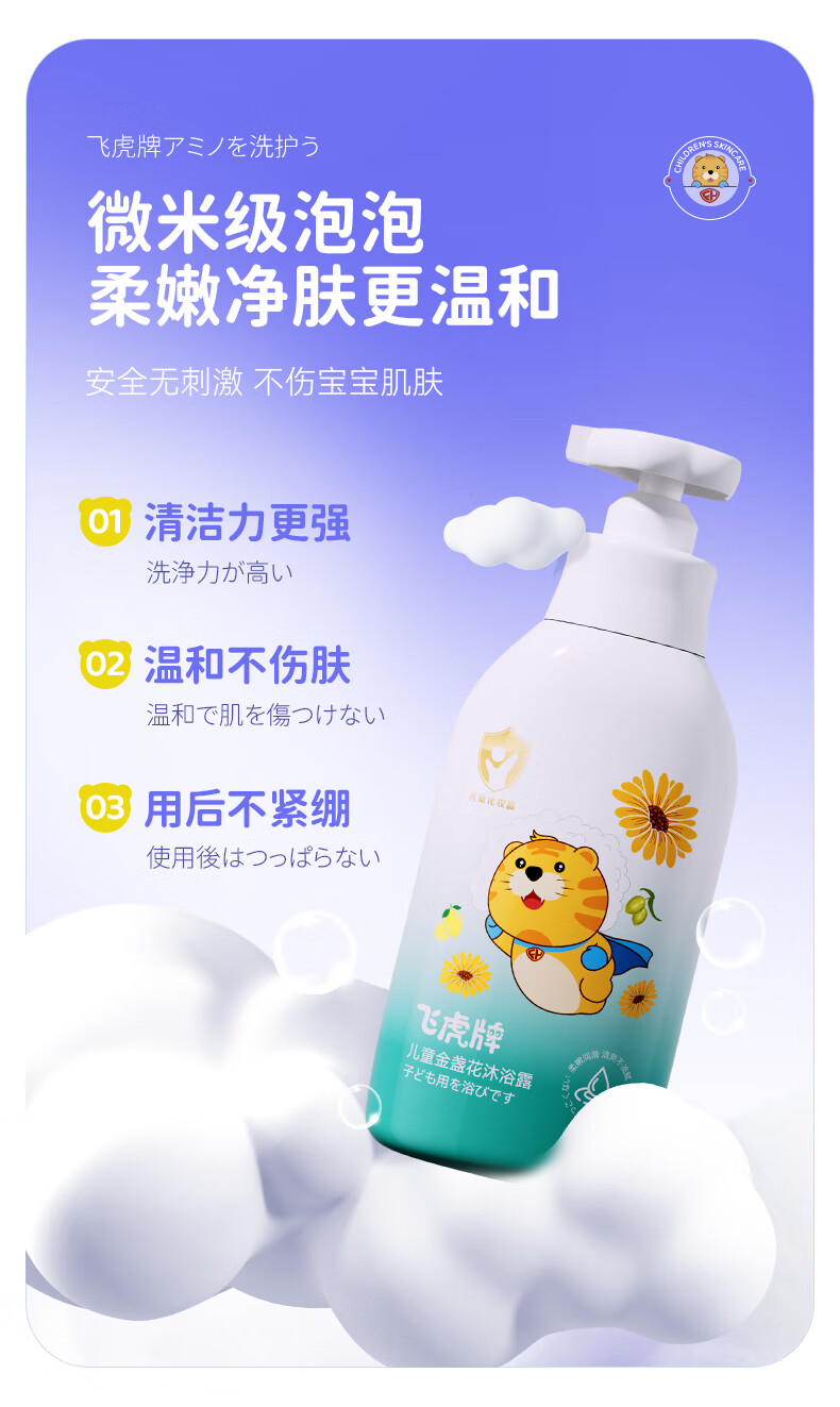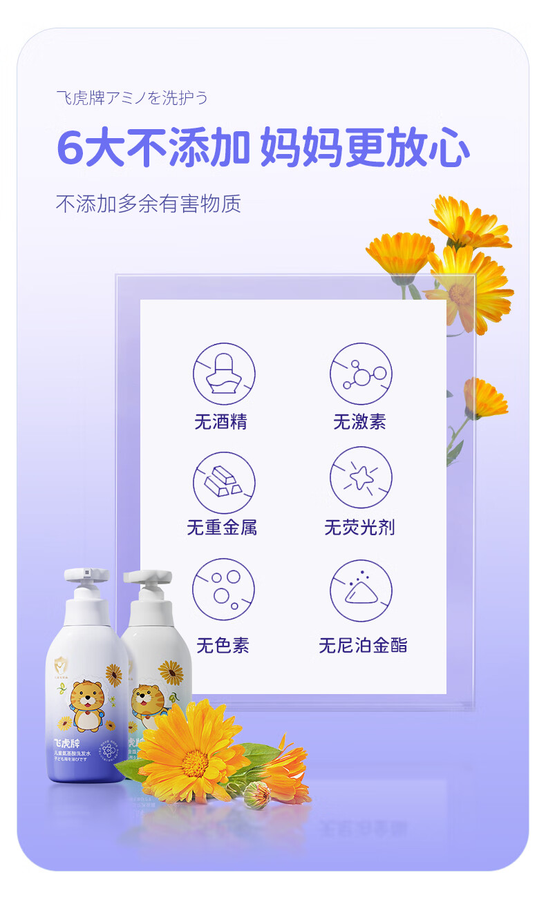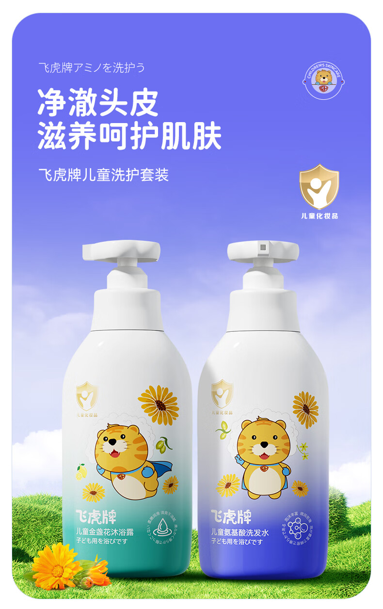飞虎牌儿童氨基酸洗发水+金盏花沐浴露1-3-6-12-15岁男女孩两件组合装