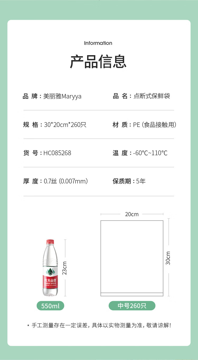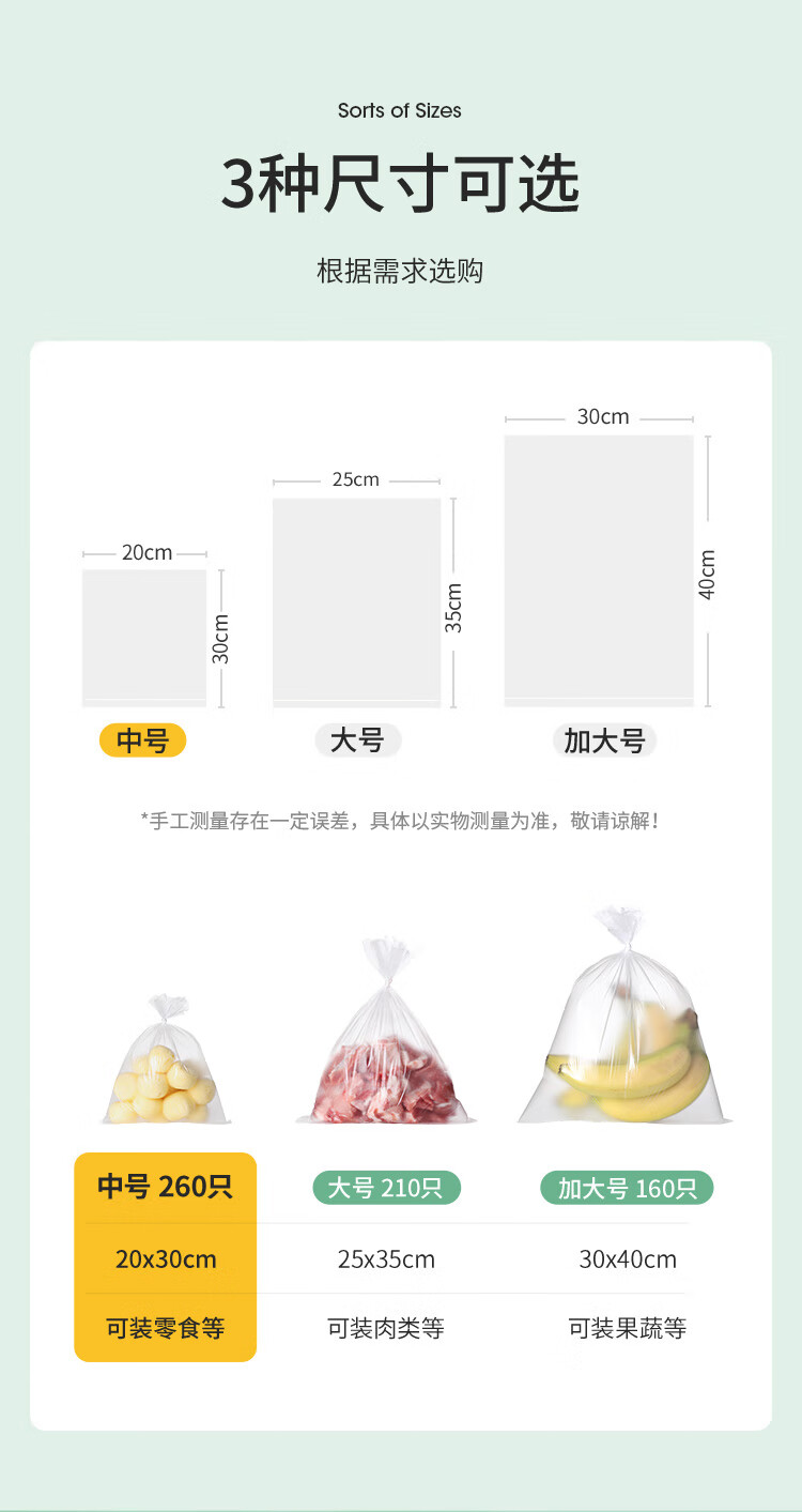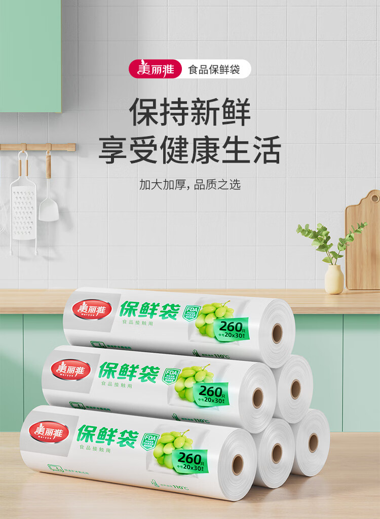 美丽雅食品级保鲜袋一次性点断式中号20*30厘米 厨房冰箱食品袋260只