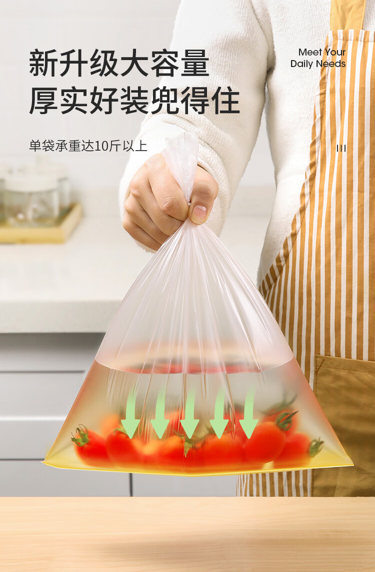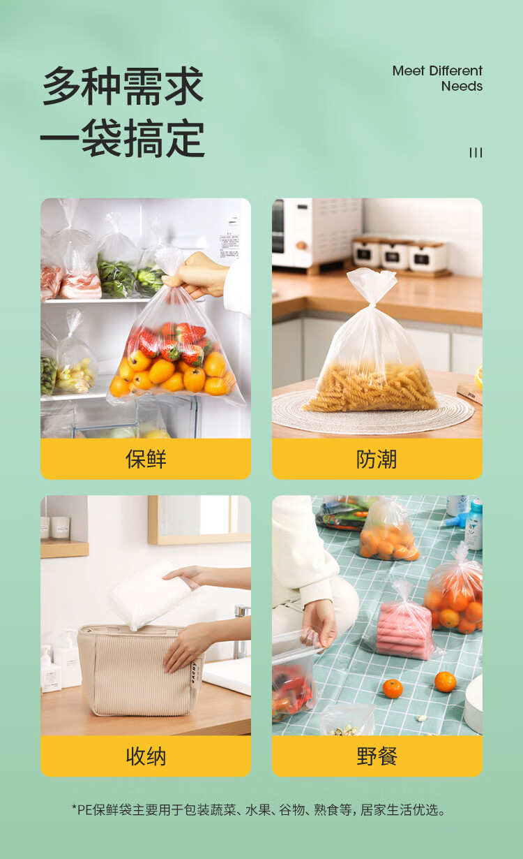 美丽雅 点断式大号保鲜袋食品级分装袋子 塑料袋加厚330只 35*25cm