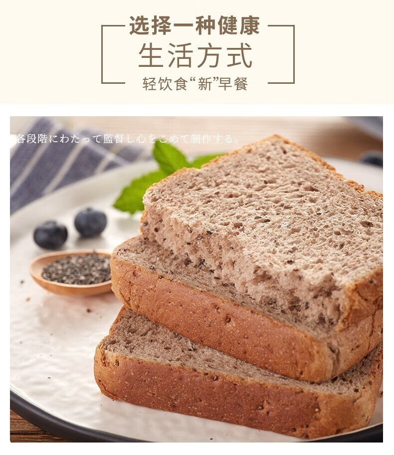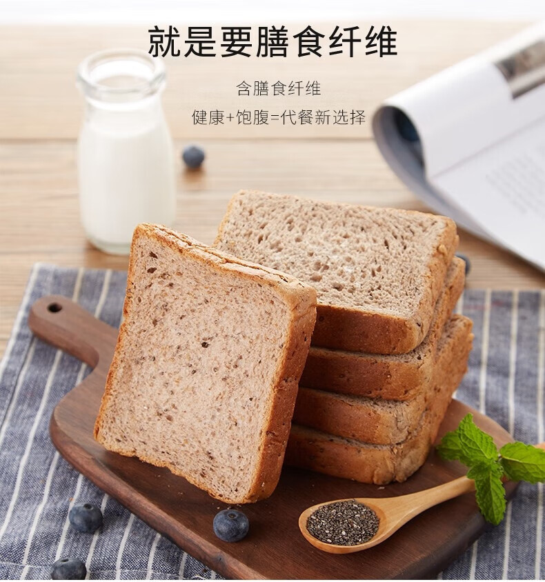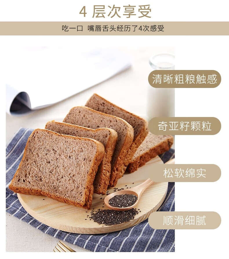 比比赞(BIBIZAN)奇亚籽黑麦全麦吐司1000g饱腹粗粮面包早餐蛋糕点心休闲零食品