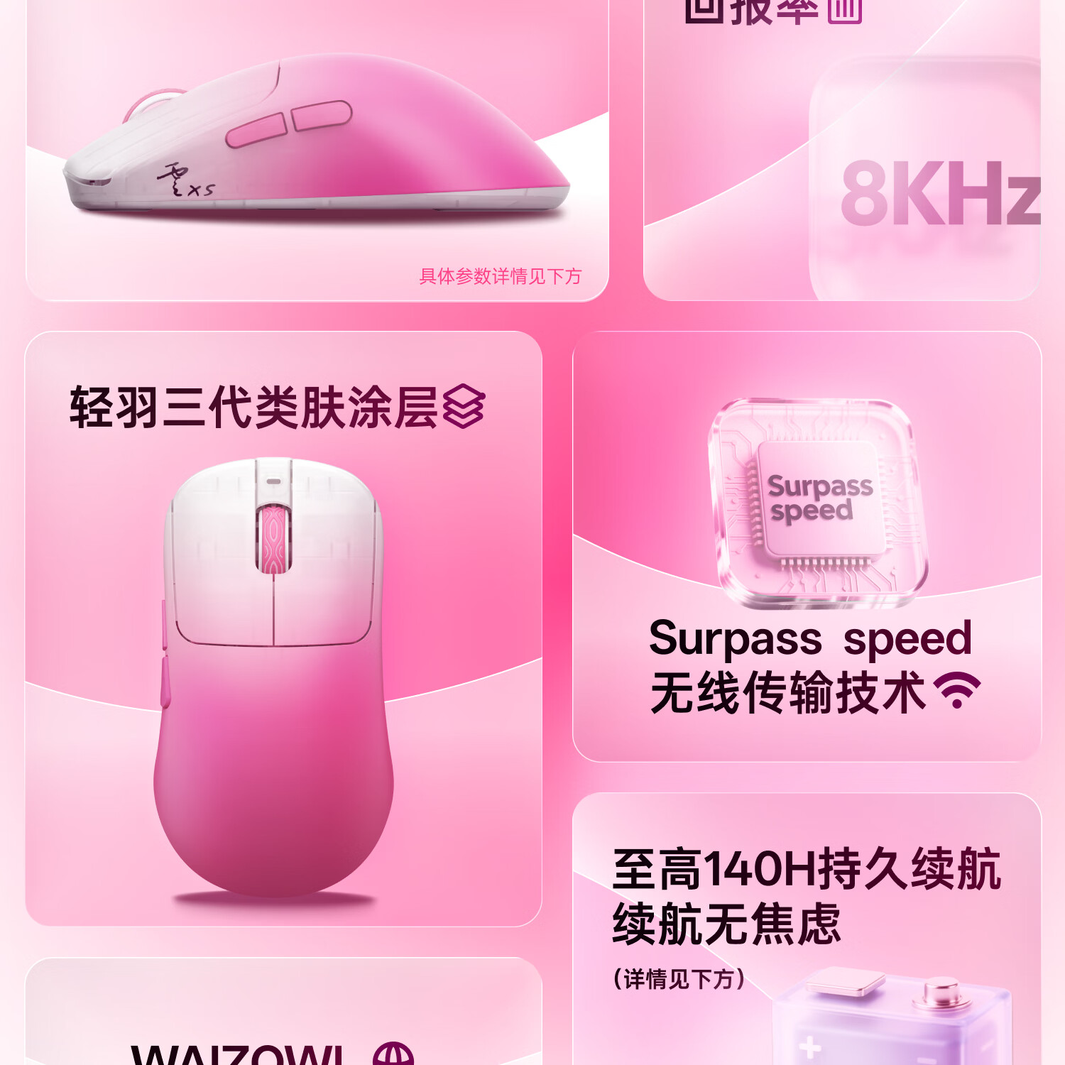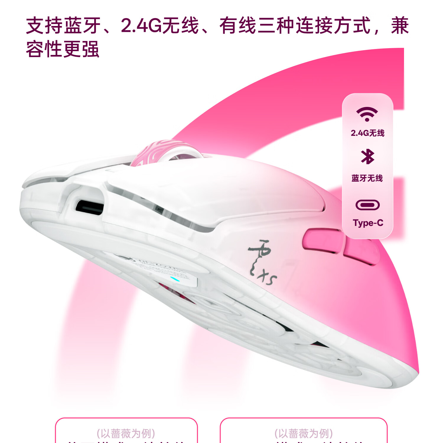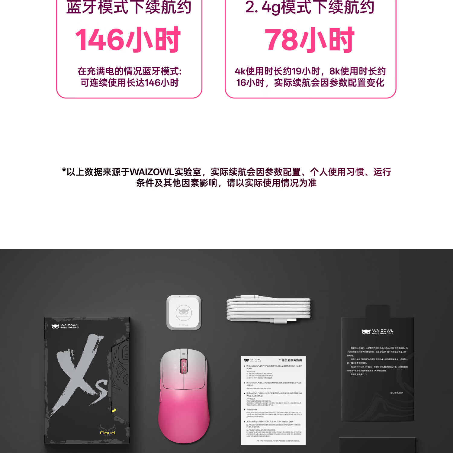 WAIZOWL唯卓 云Cloud XS 3950无线鼠标 对称游戏鼠标 轻量化三模蓝牙 8k电竞鼠标 办公游戏 瓦洛兰特csgo CloudXS丨蔷薇+8k接收器