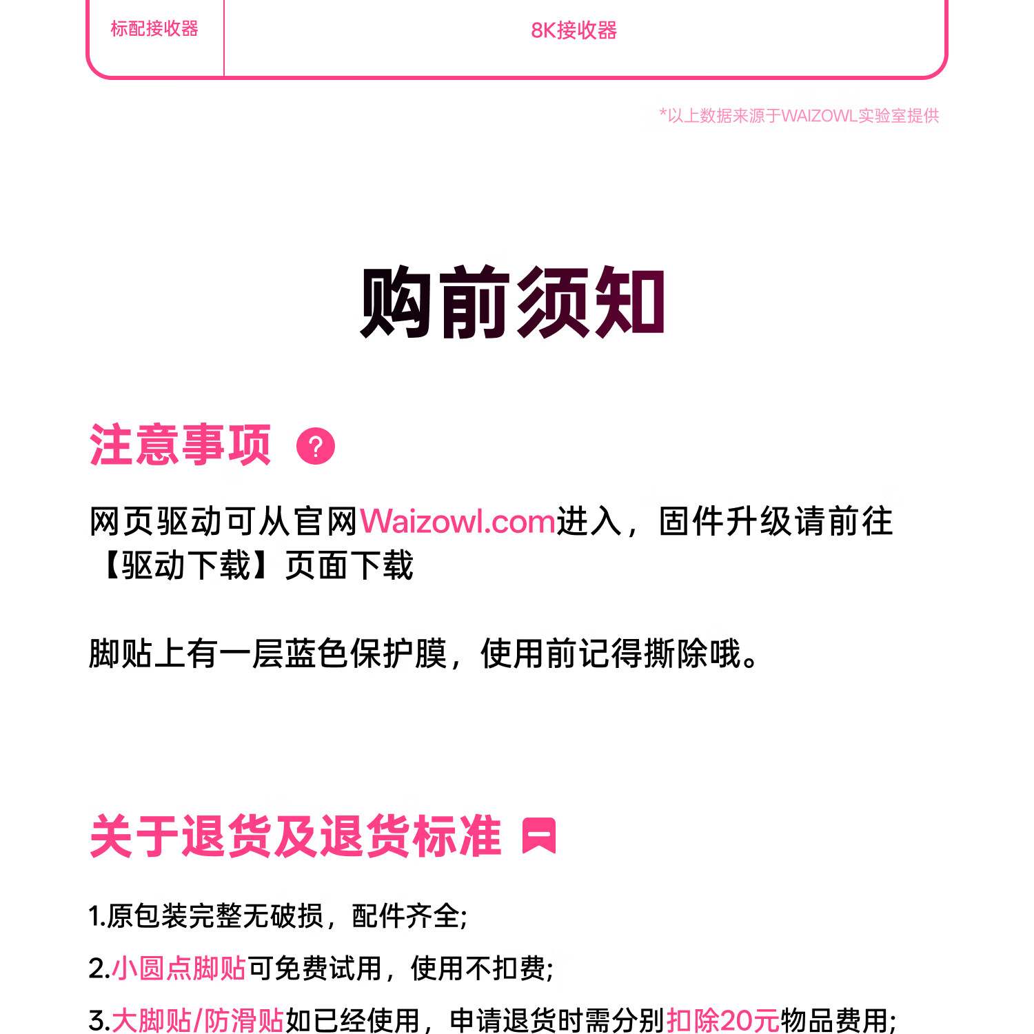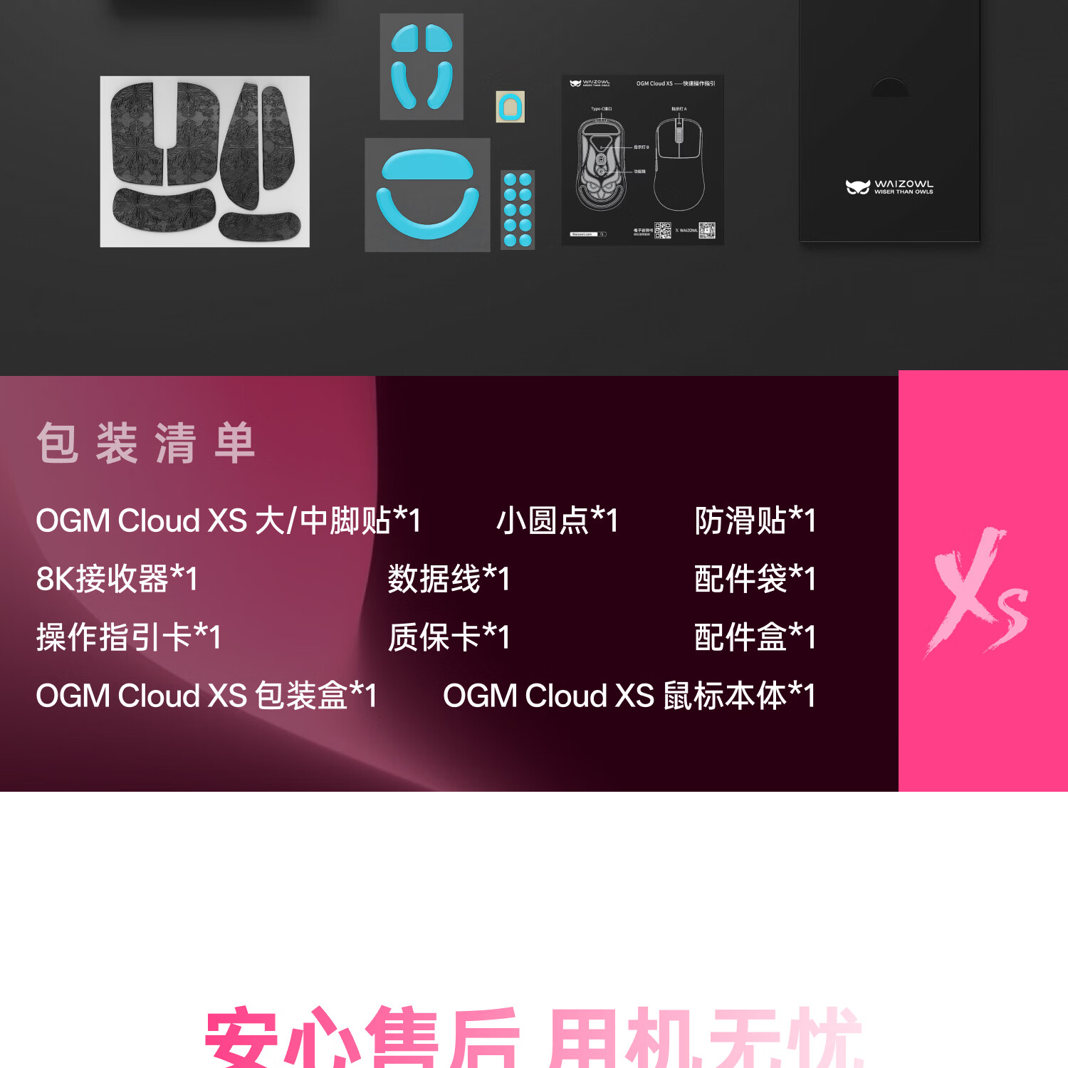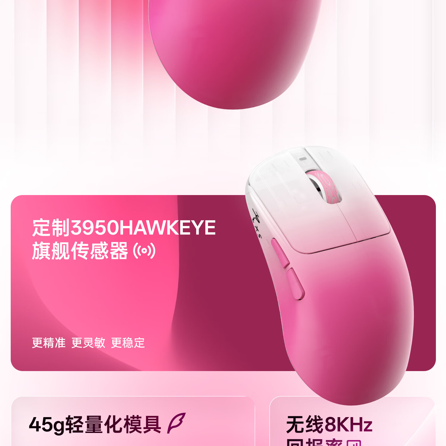 WAIZOWL唯卓 云Cloud XS 3950无线鼠标 对称游戏鼠标 轻量化三模蓝牙 8k电竞鼠标 办公游戏 瓦洛兰特csgo CloudXS丨蔷薇+8k接收器