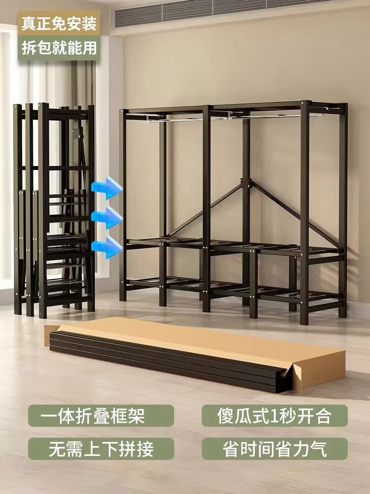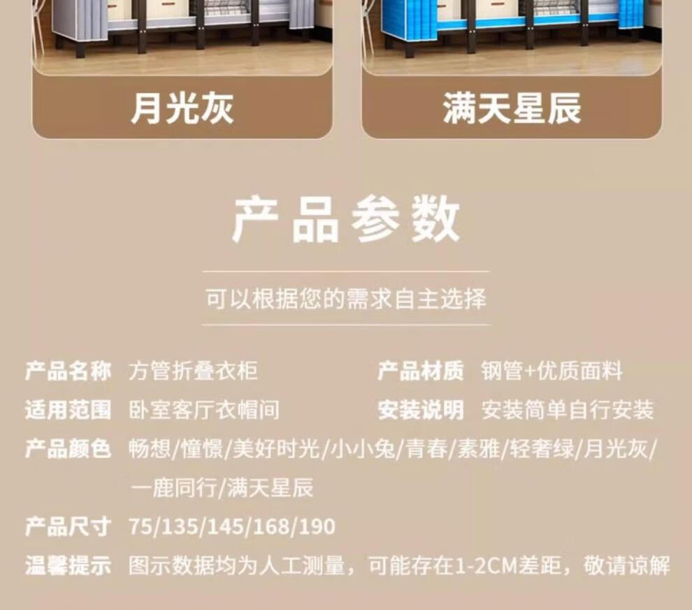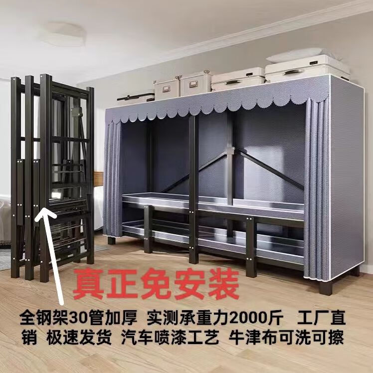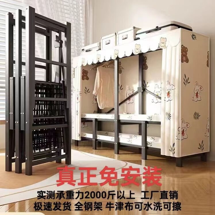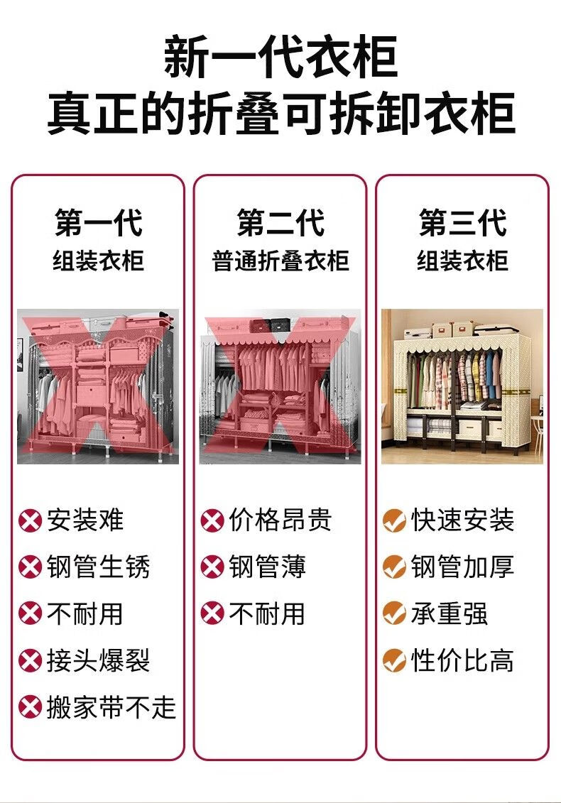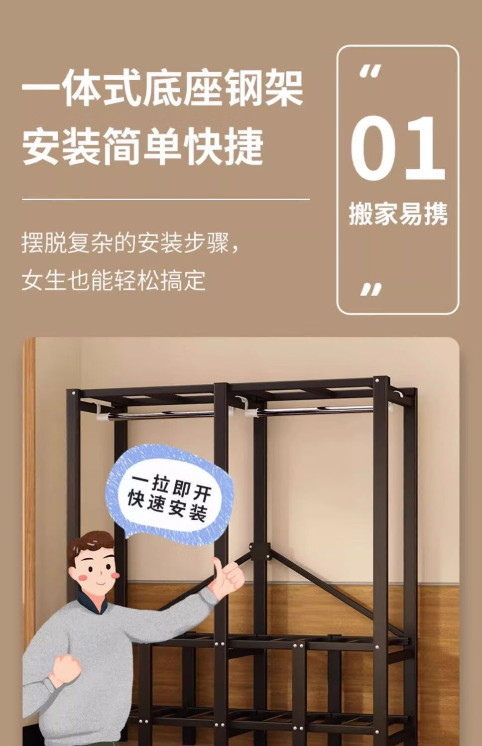 忆思暮布衣柜折叠真正免安装家用卧室出租房全钢架加厚定制挂衣厨 长1.9米免安装全钢架质保10年 憧.憬