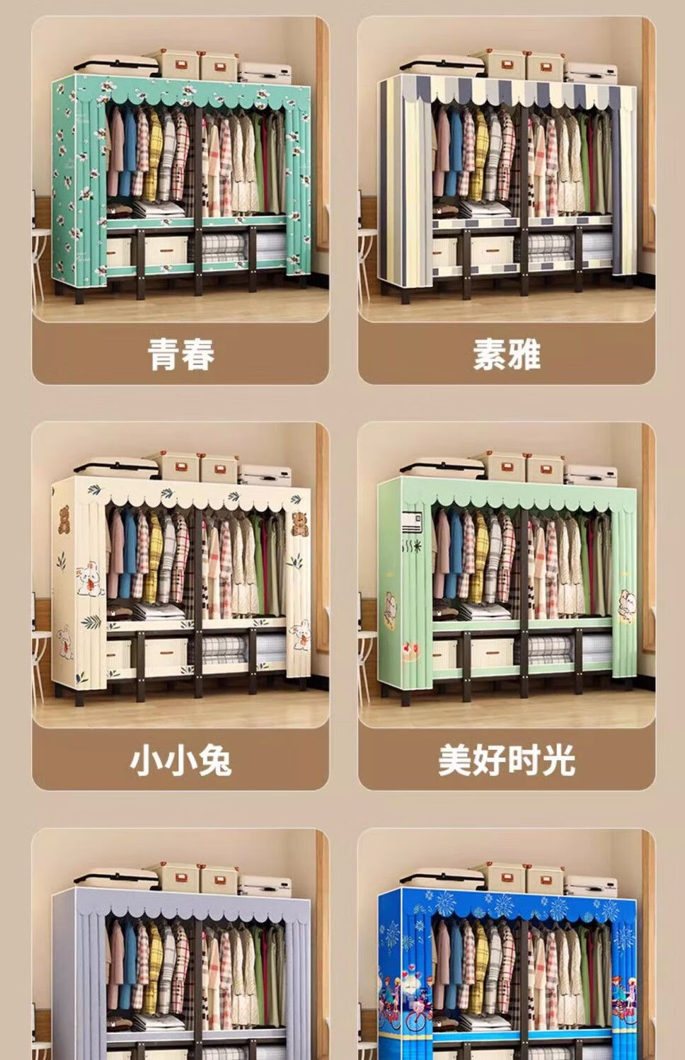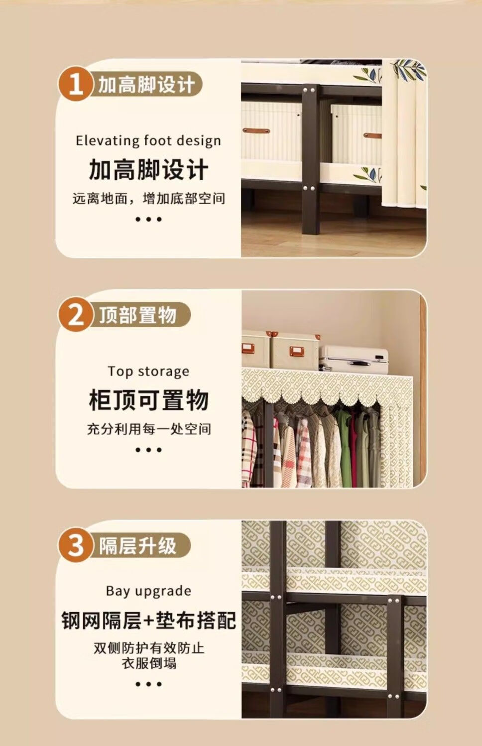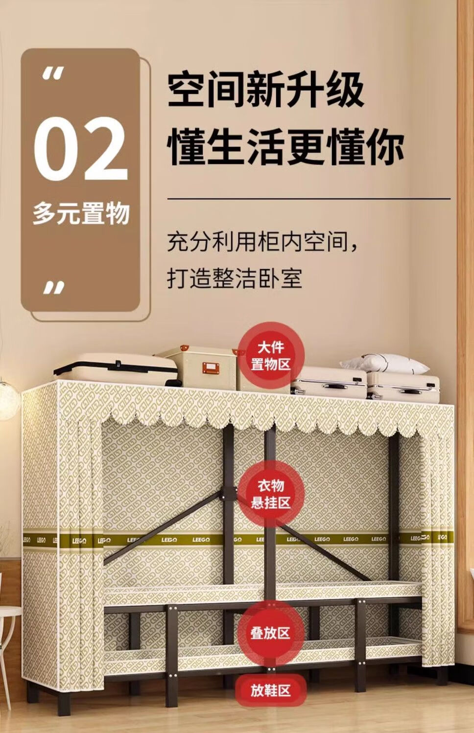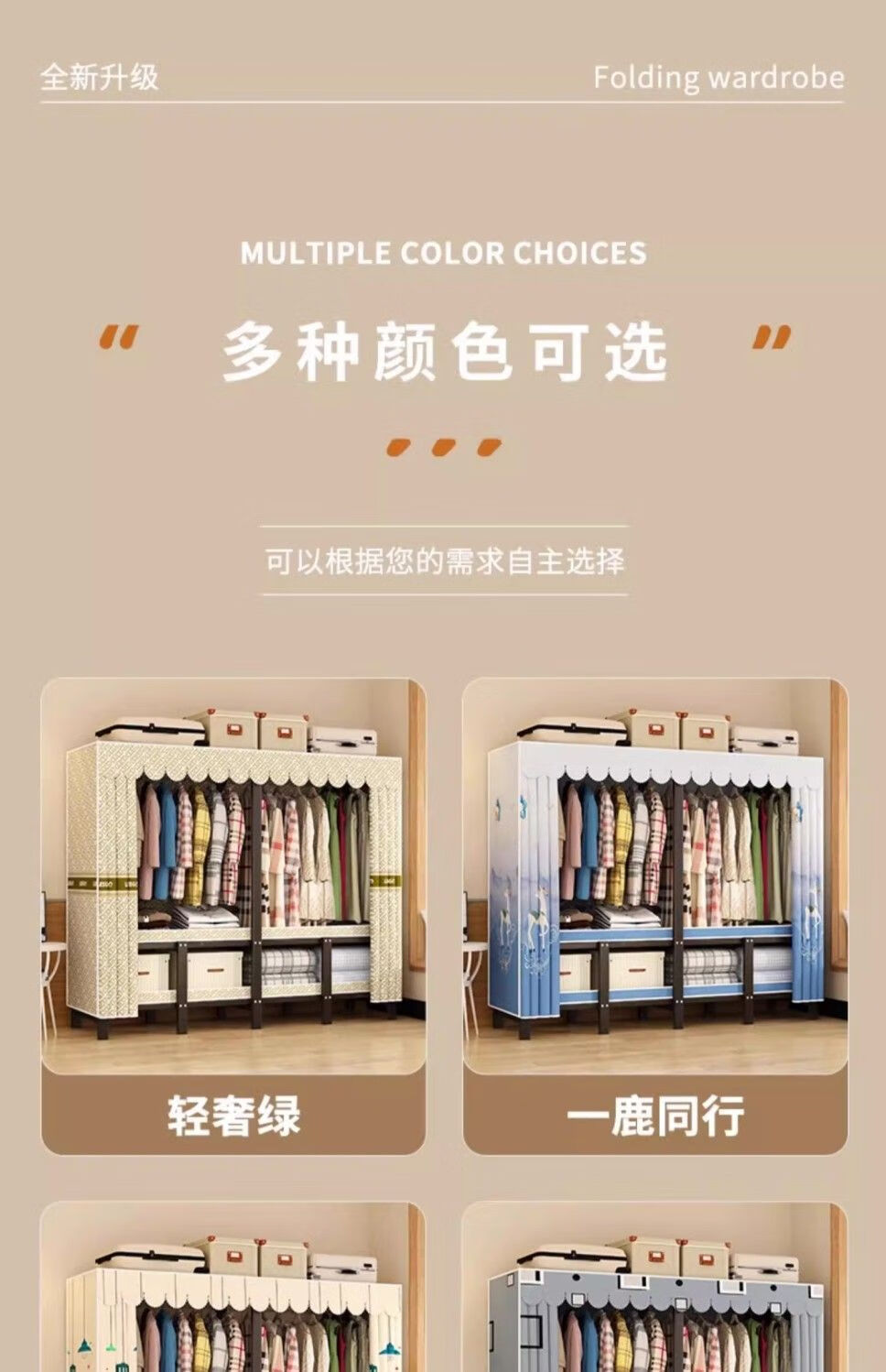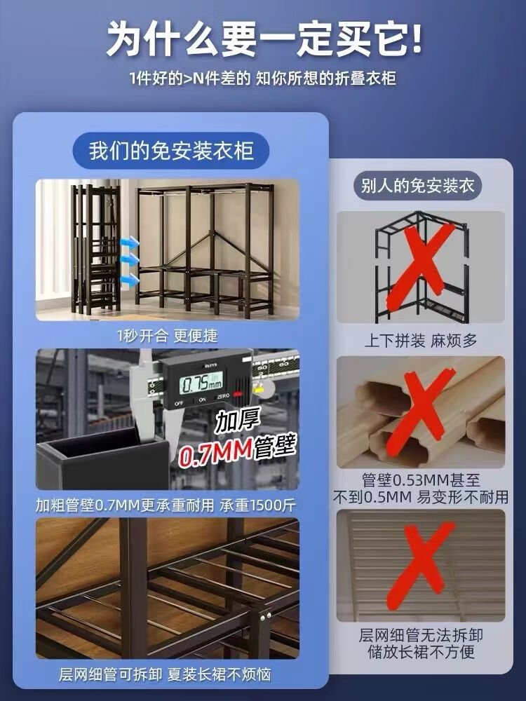 忆思暮布衣柜折叠真正免安装家用卧室出租房全钢架加厚定制挂衣厨 长1.9米免安装全钢架质保10年 憧.憬