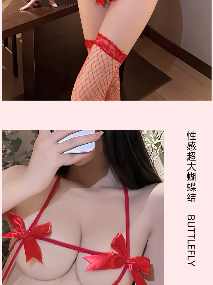 圣诞礼物情趣内衣性感房事战袍母犬sm羞耻大尺度制服诱惑纯欲内衣 【圣诞小兔】红色圣诞套装+红网袜