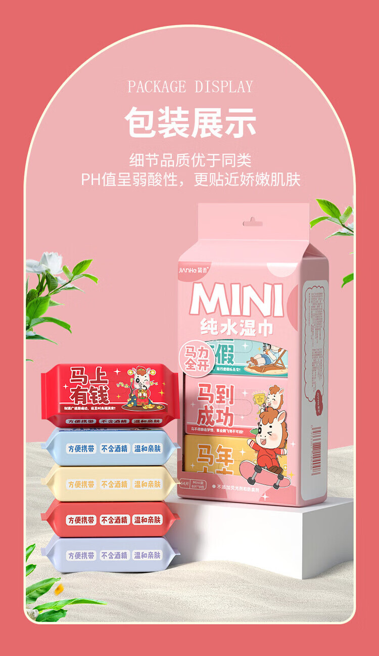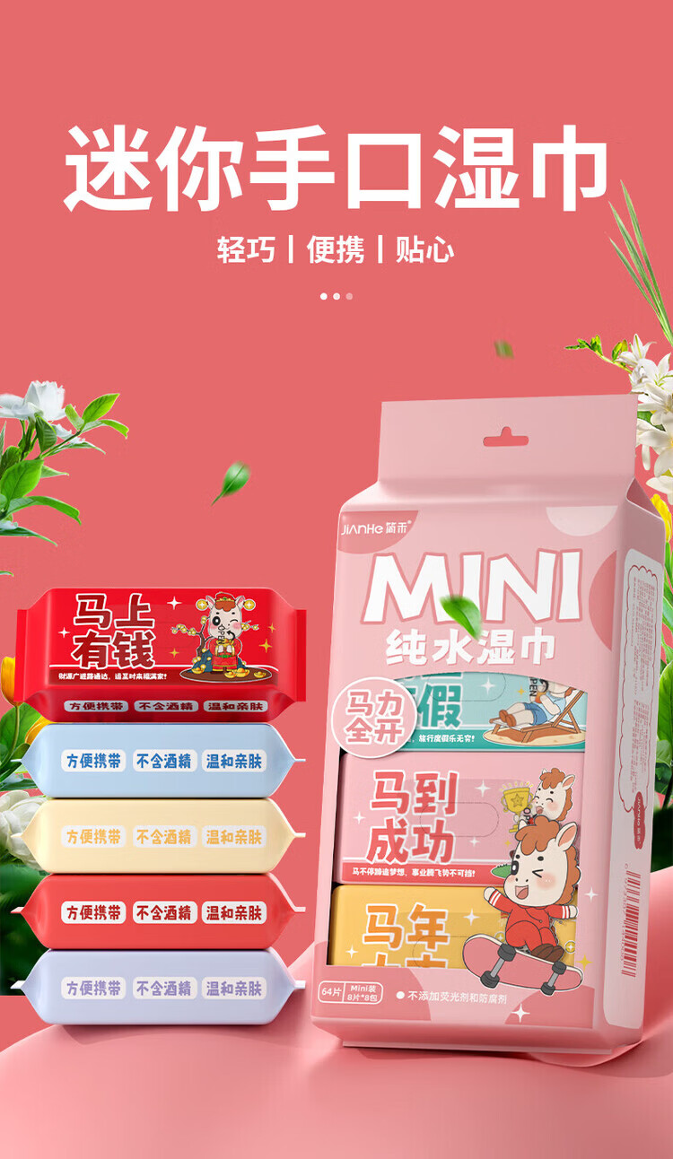 简禾(jianhe)EDI超纯水湿巾迷你小包便携装婴儿手口温和湿纸巾 【便携纯水-马年贺岁款】 8抽 16包