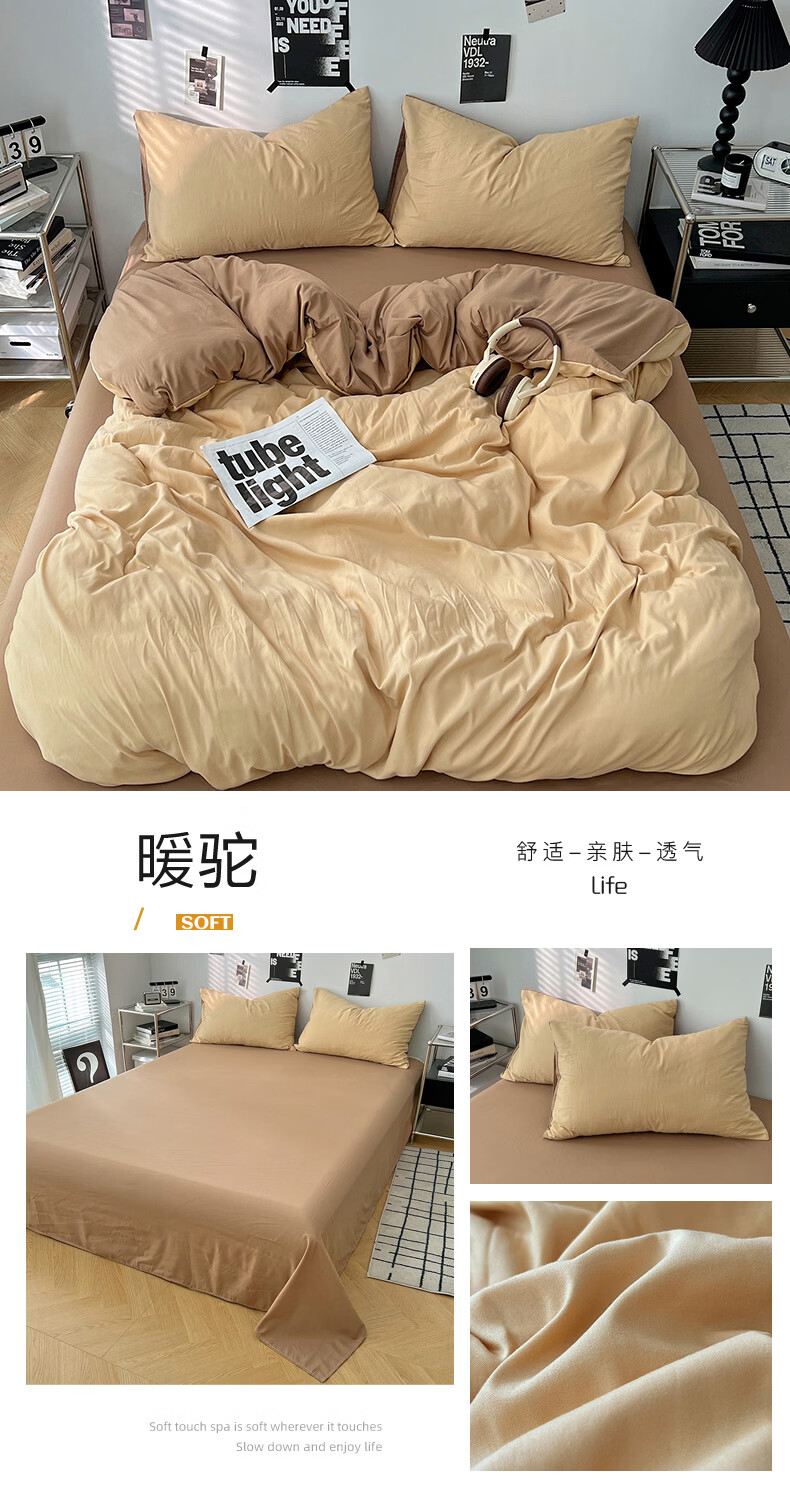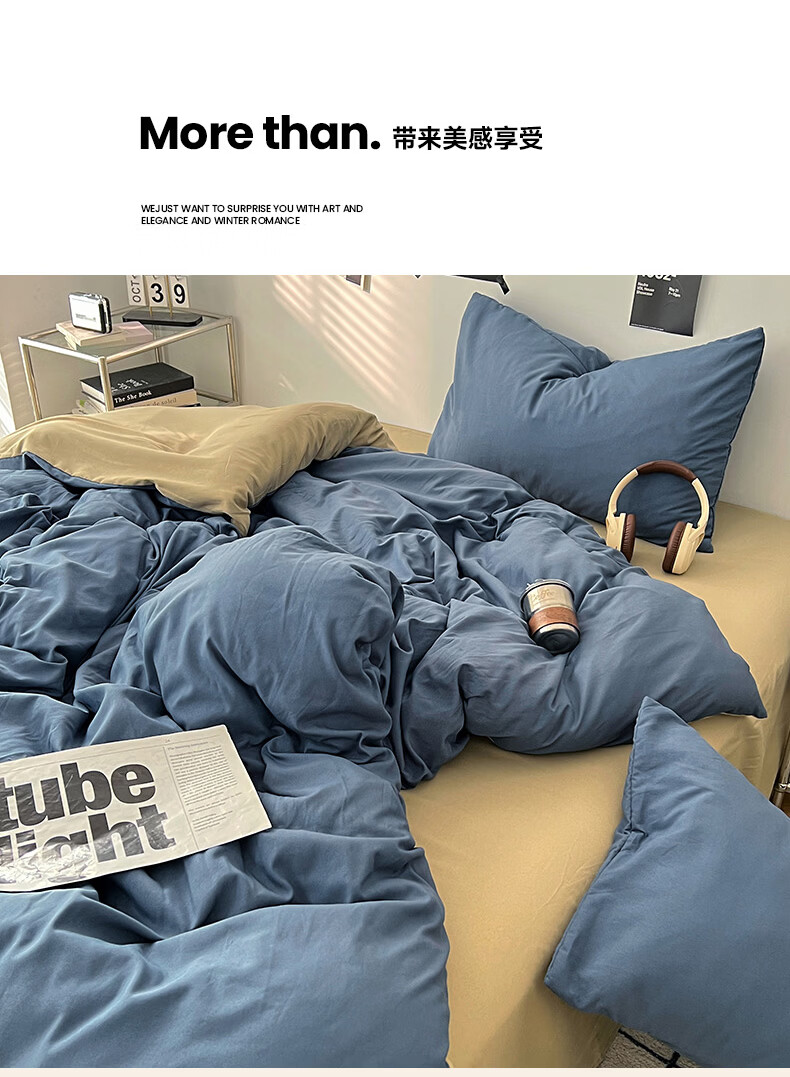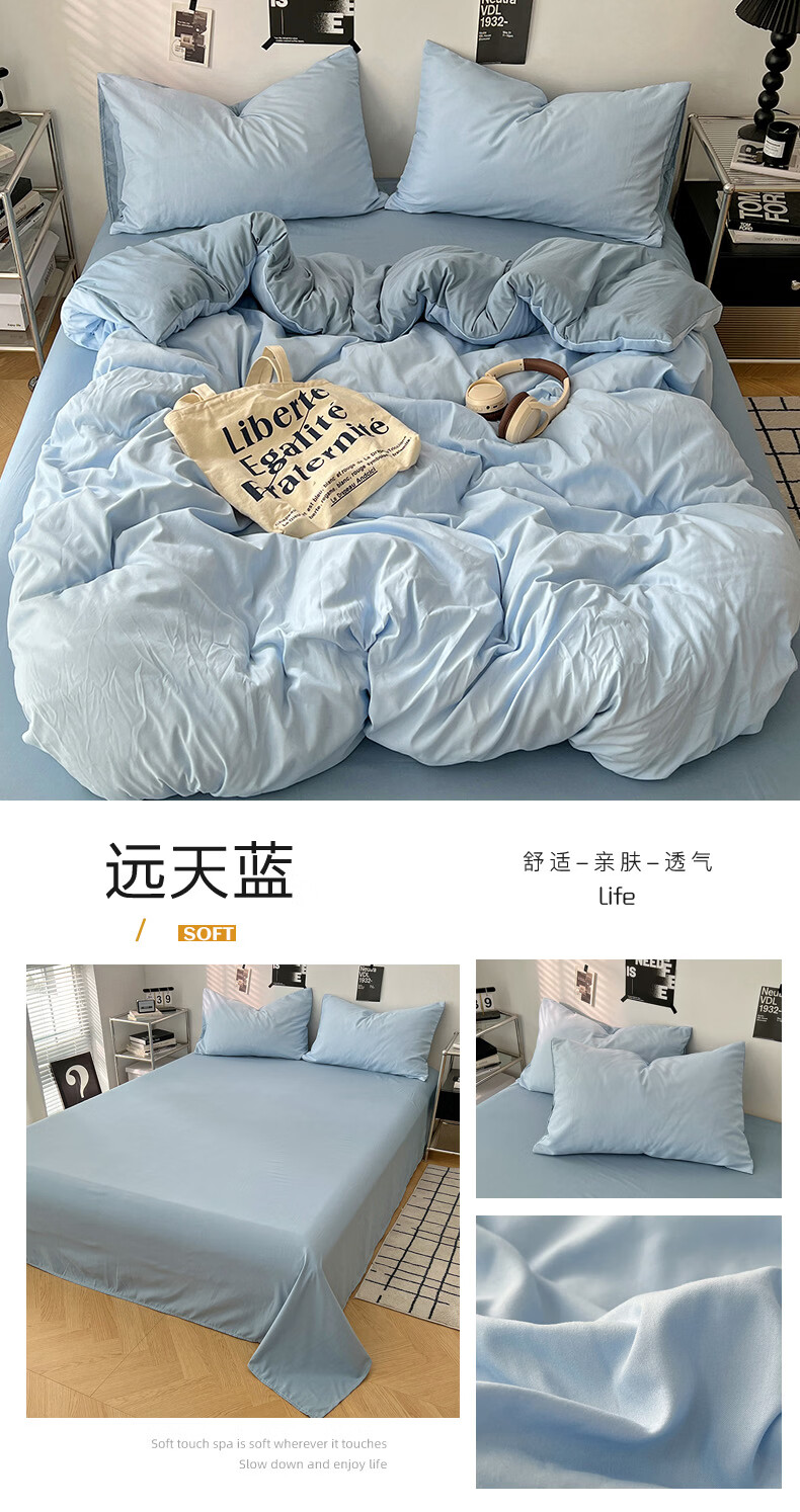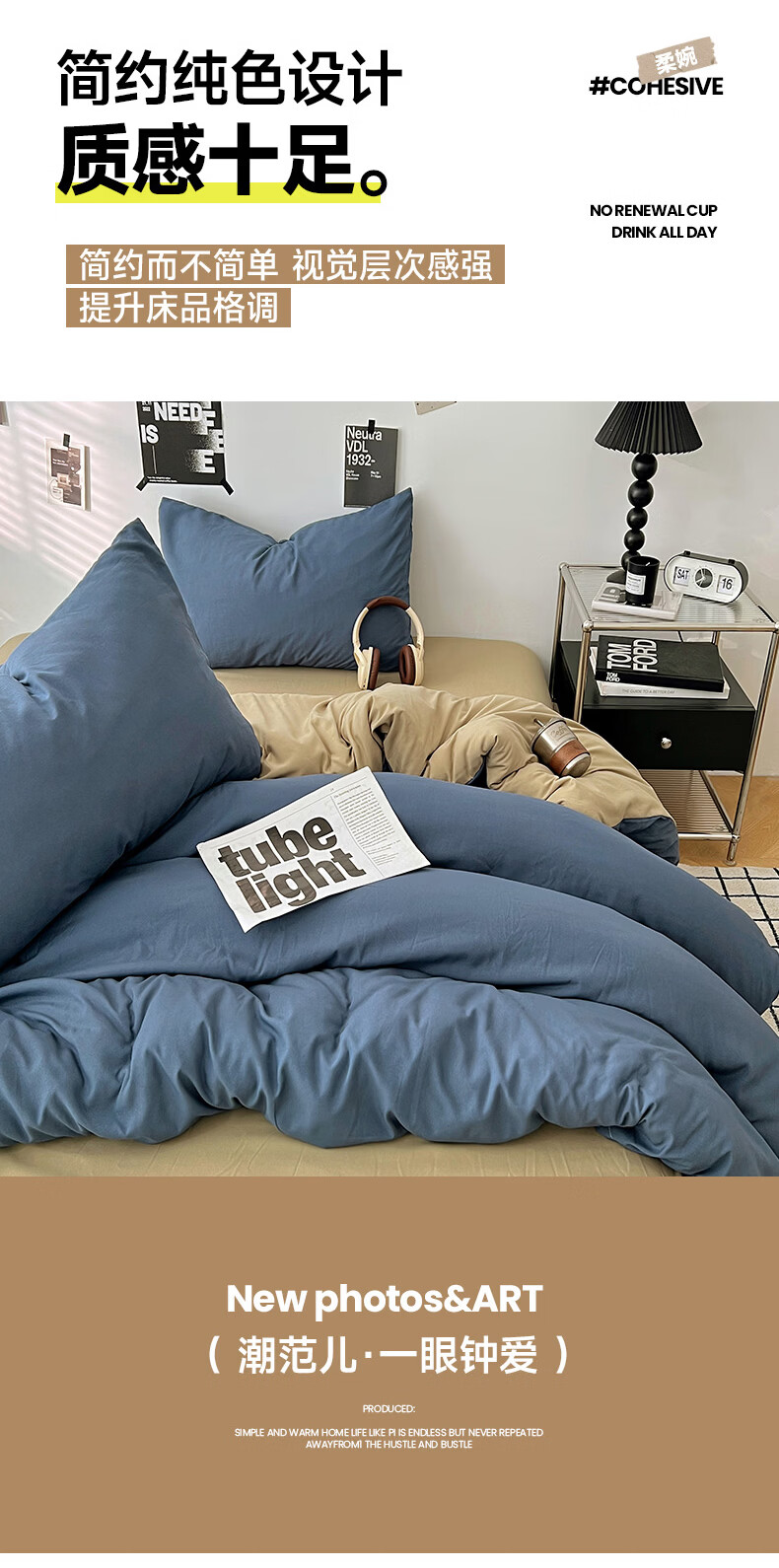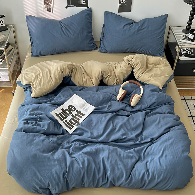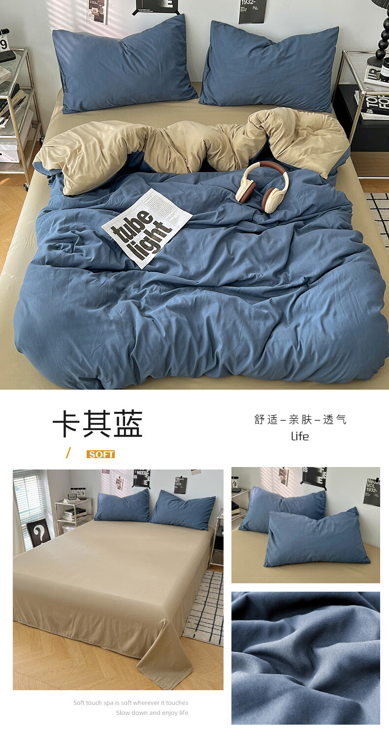 VJE水洗棉床单四件套2025新款四季通用被罩被套卡通三件套床上用品4 奶茶-海盐冰蓝 【三件套】1.2m 床单款 -被套150*200cm