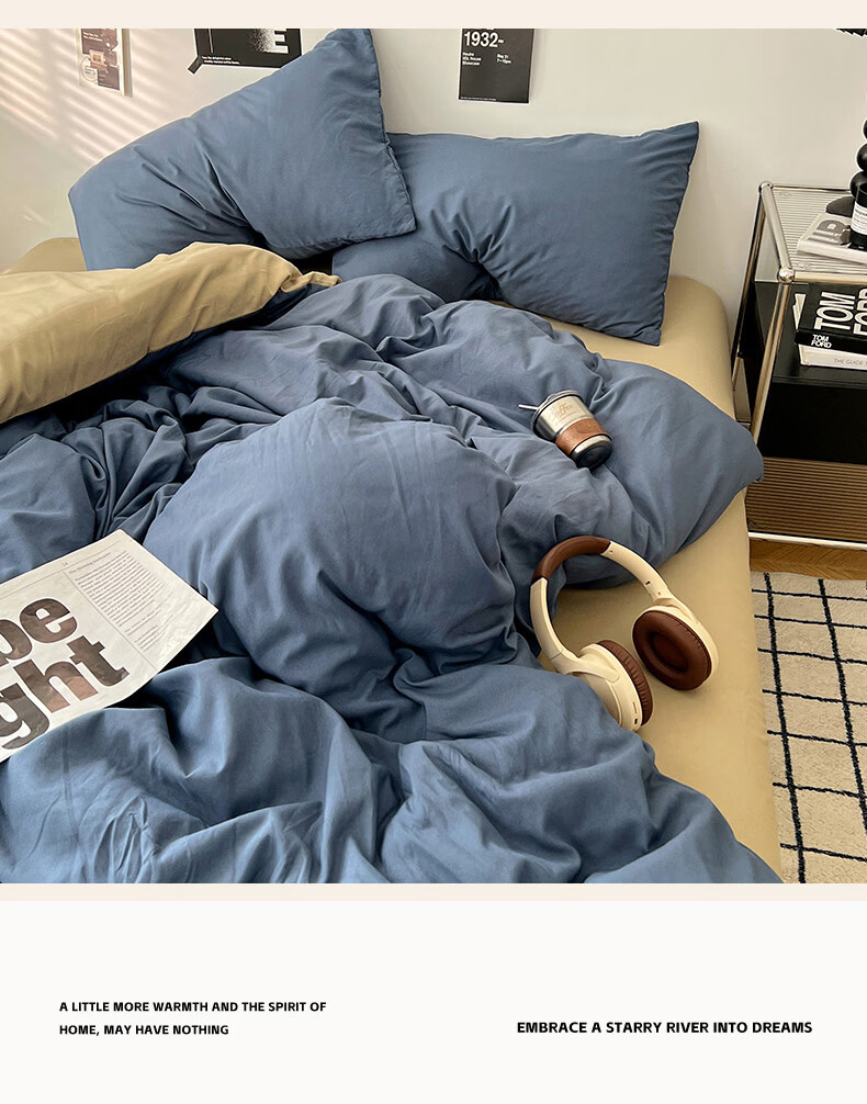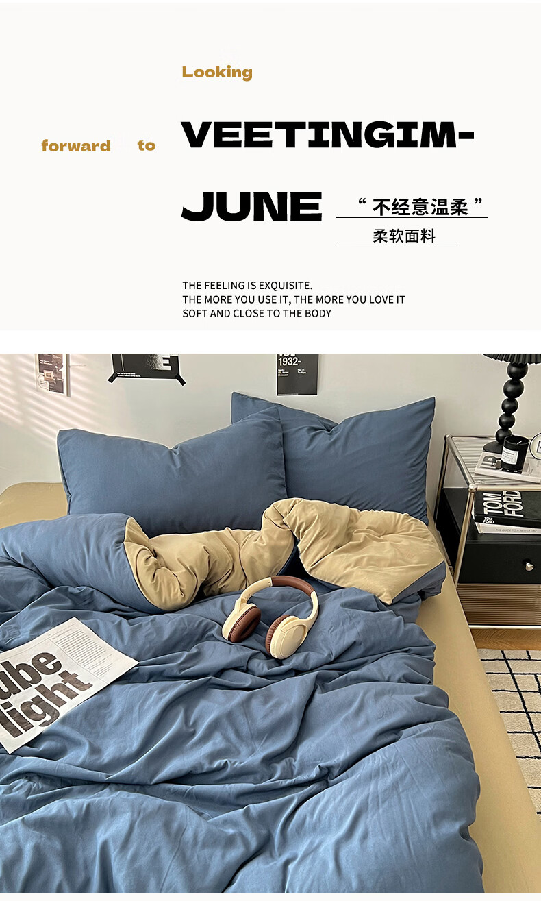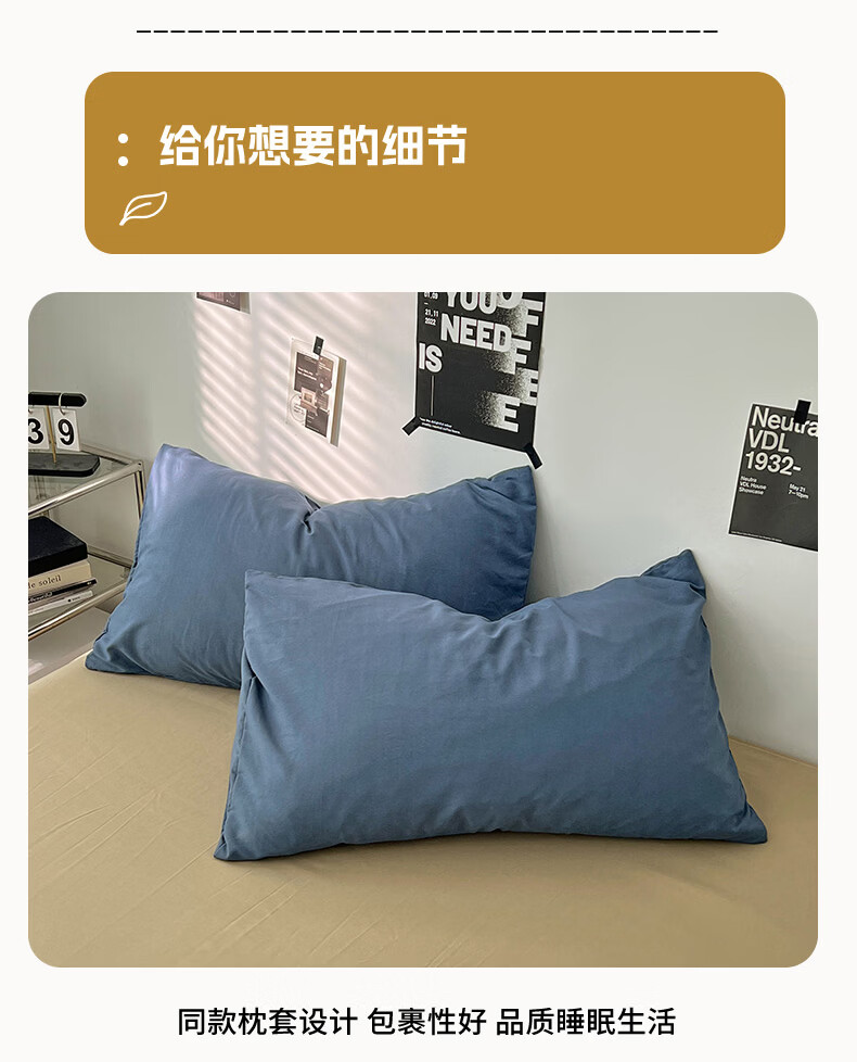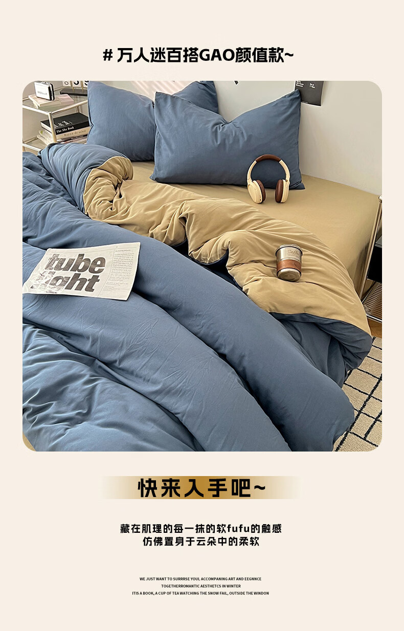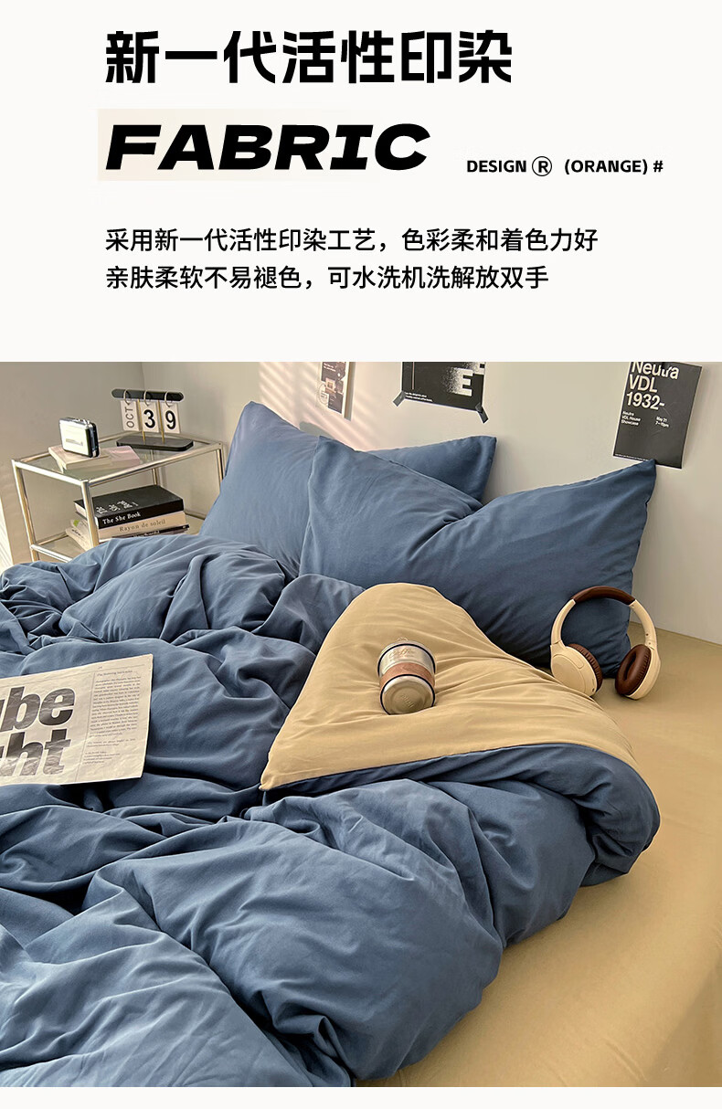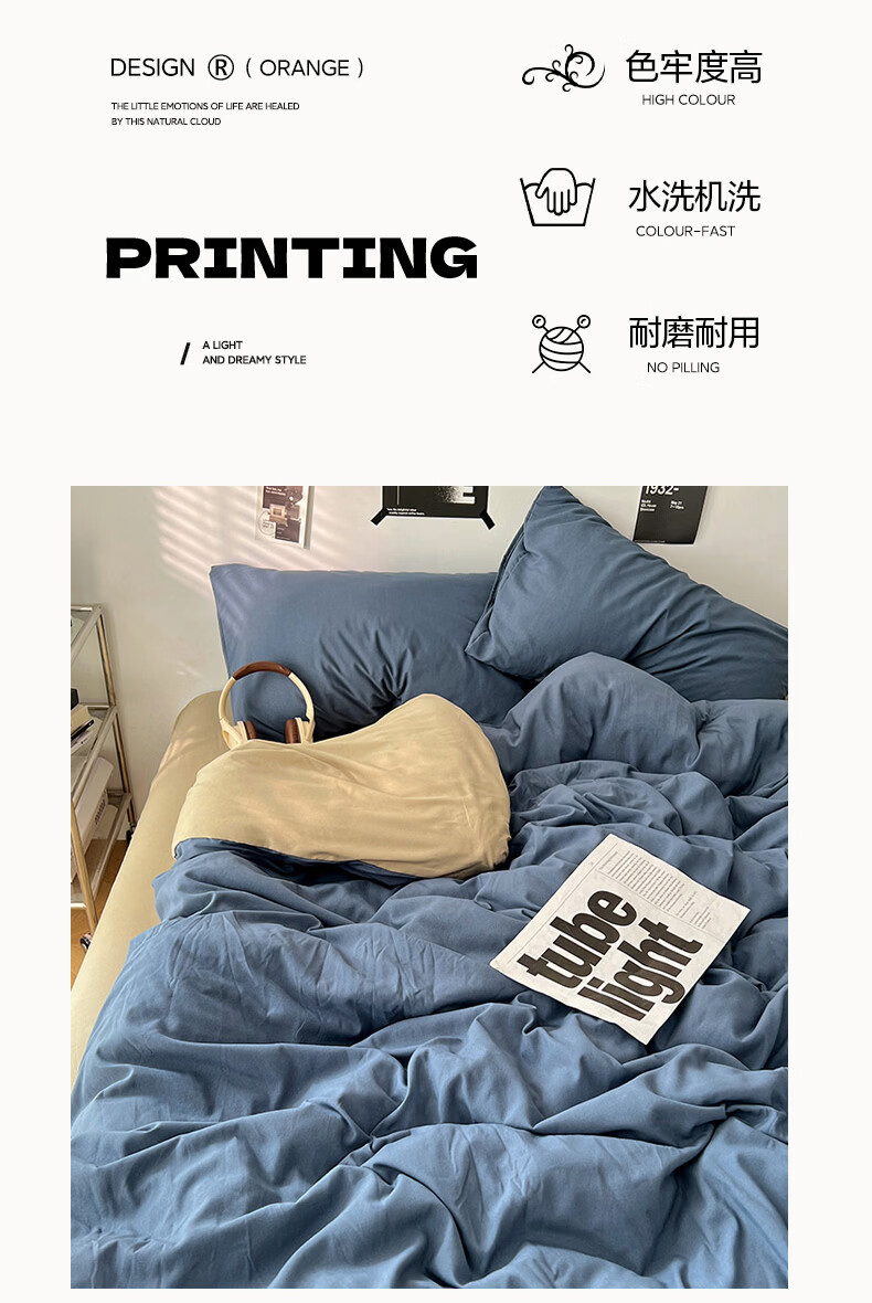 VJE水洗棉床单四件套2025新款四季通用被罩被套卡通三件套床上用品4 奶茶-海盐冰蓝 【三件套】1.2m 床单款 -被套150*200cm