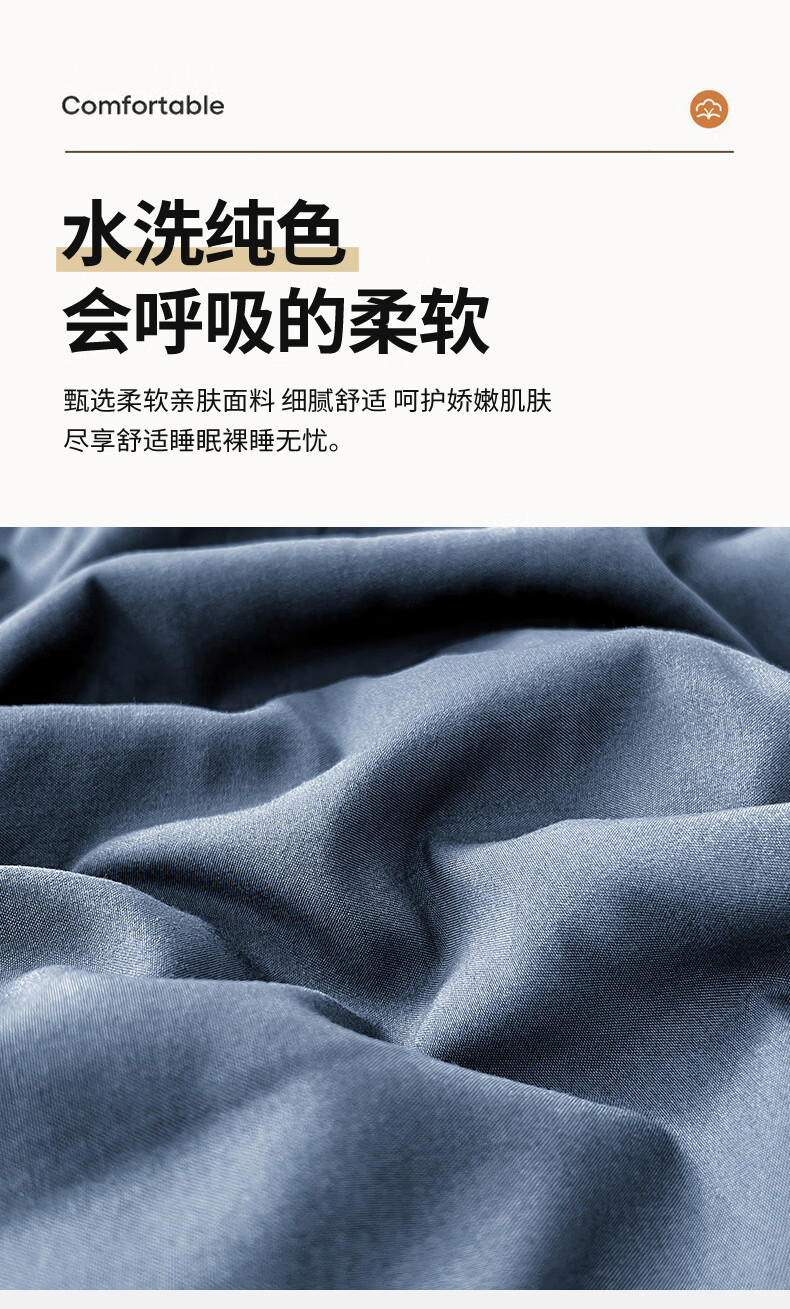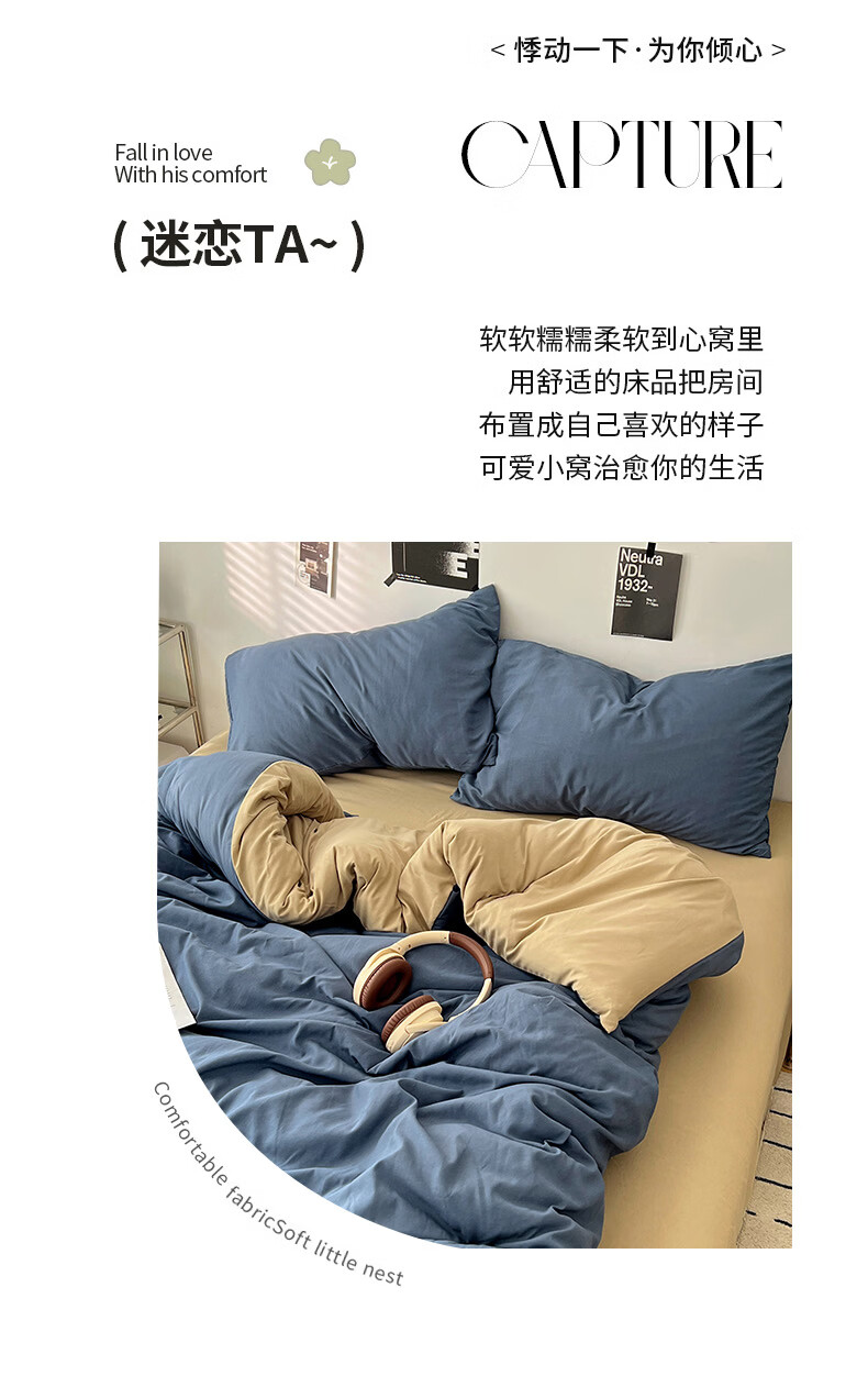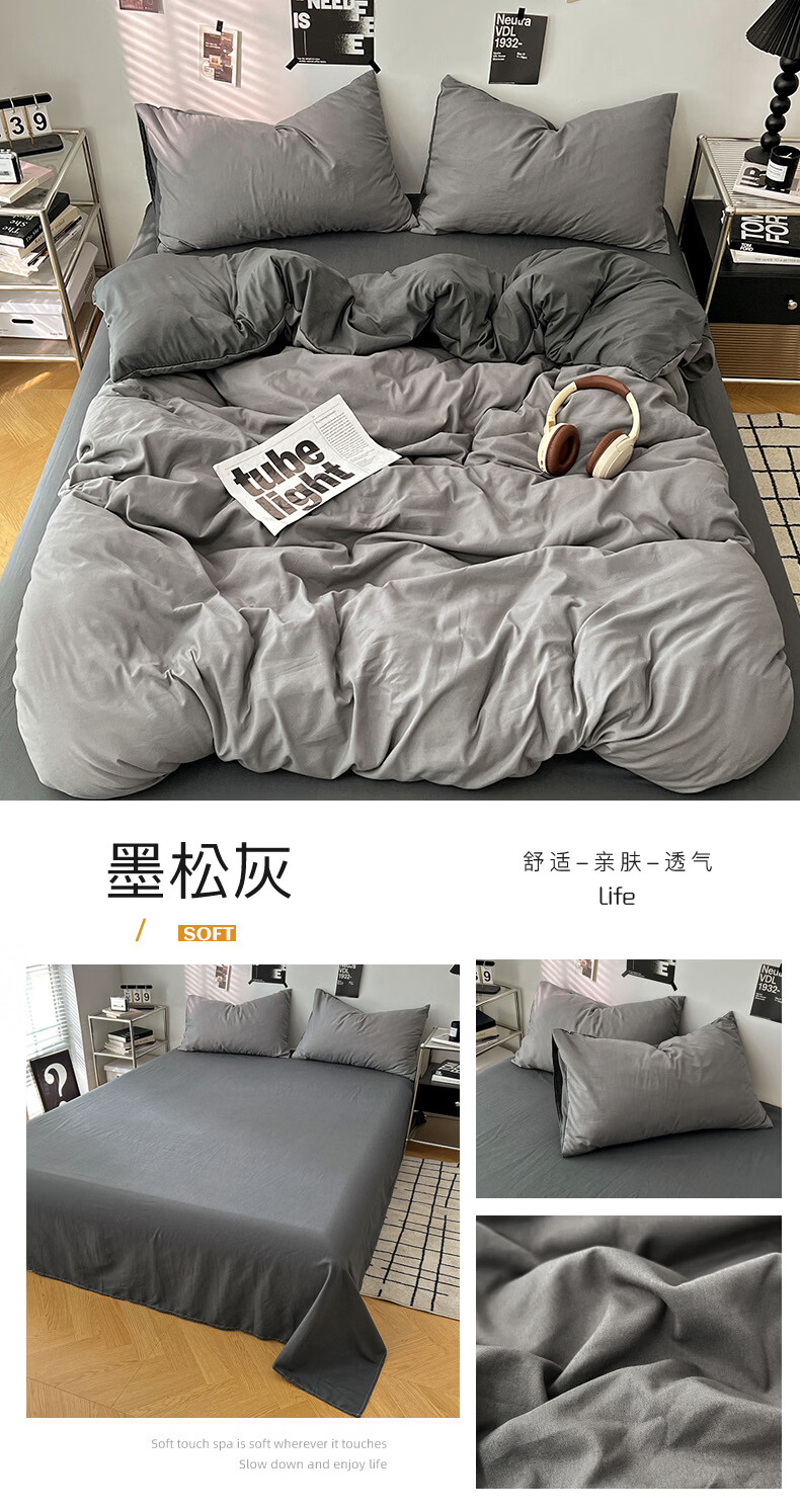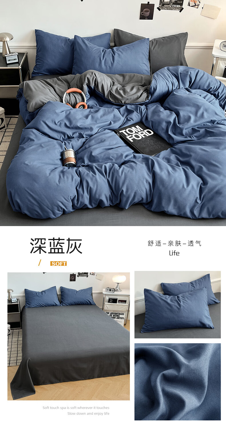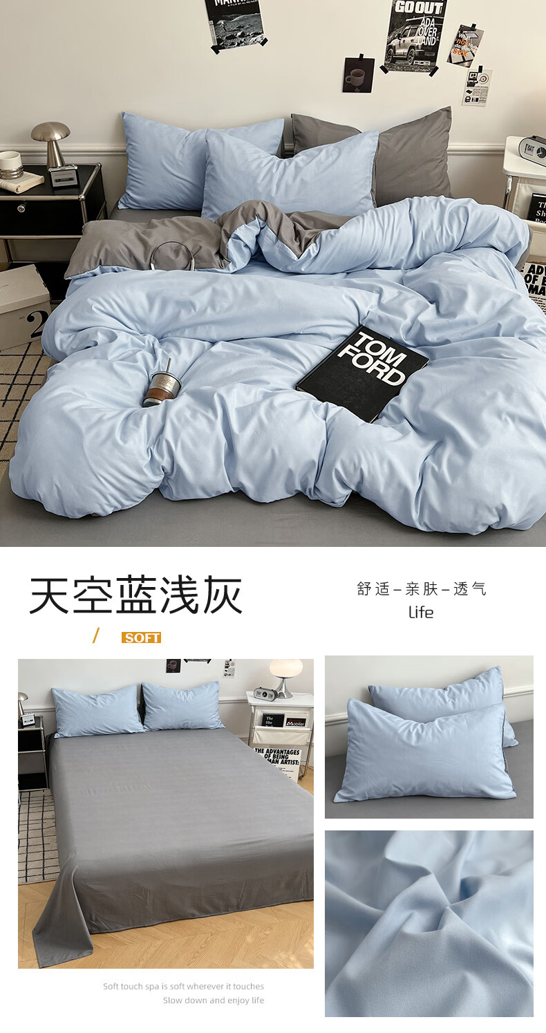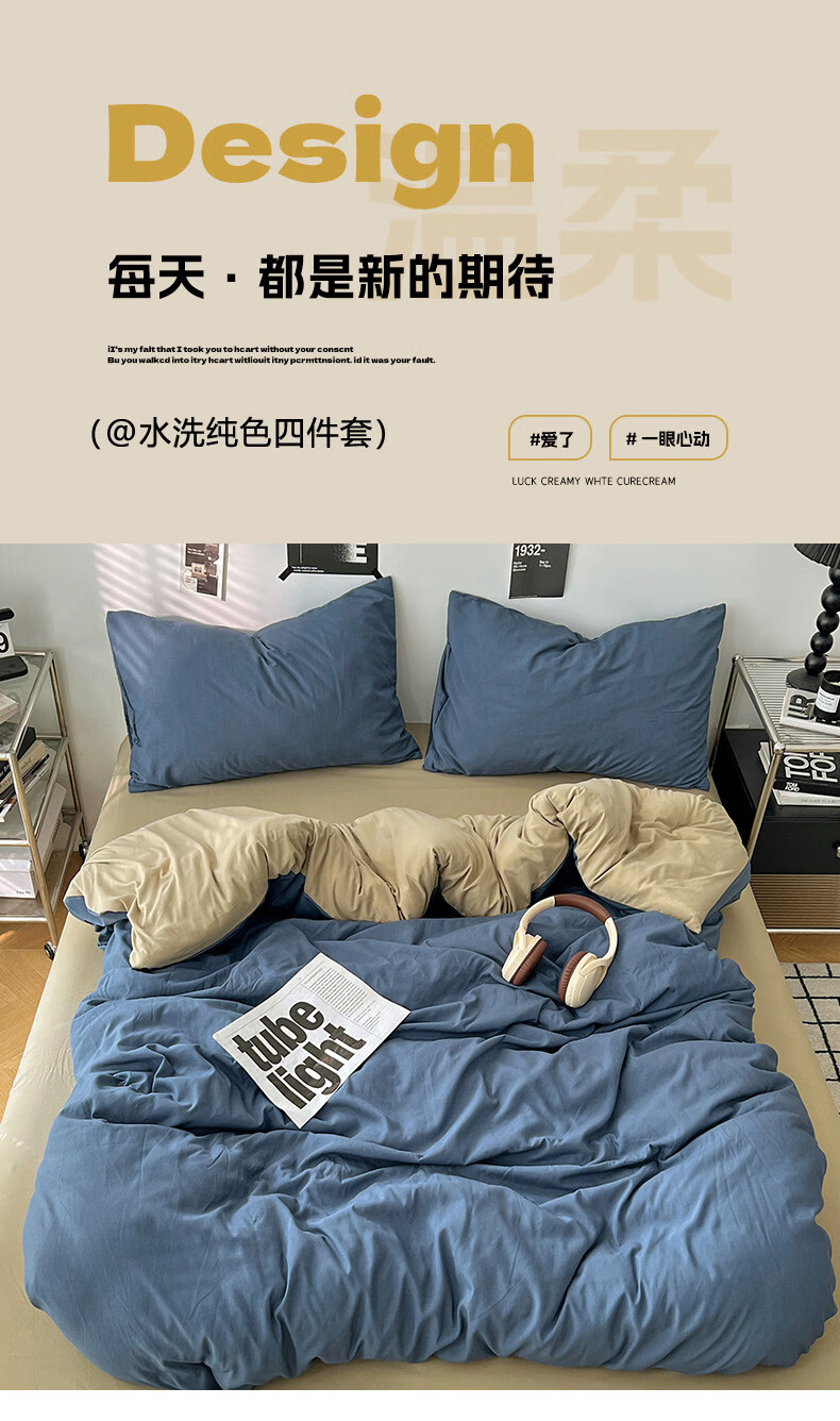 VJE水洗棉床单四件套2025新款四季通用被罩被套卡通三件套床上用品4 奶茶-海盐冰蓝 【三件套】1.2m 床单款 -被套150*200cm
