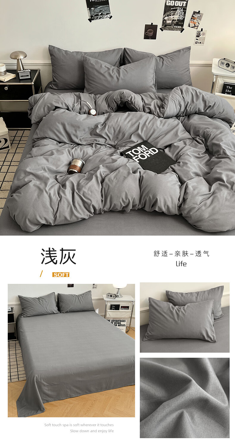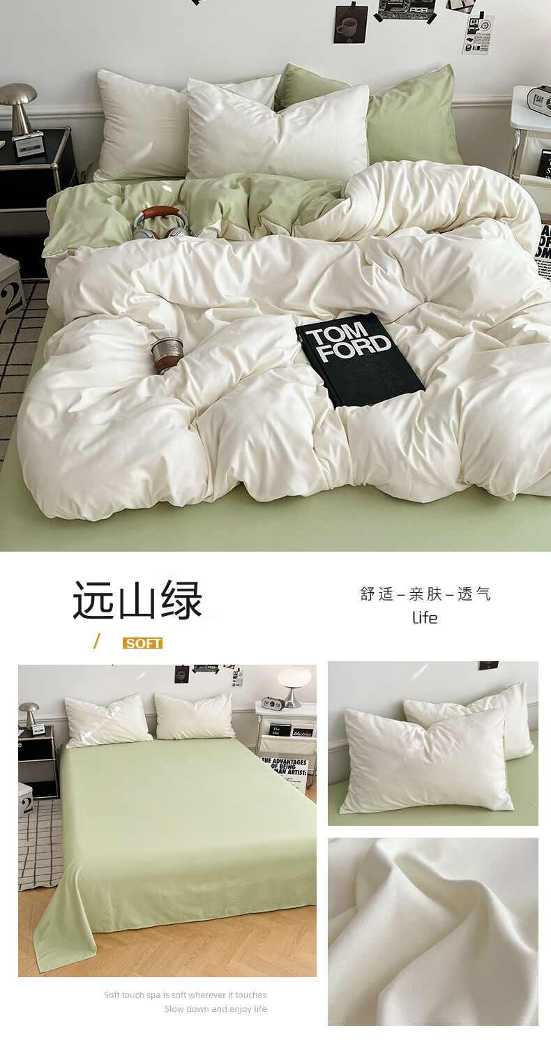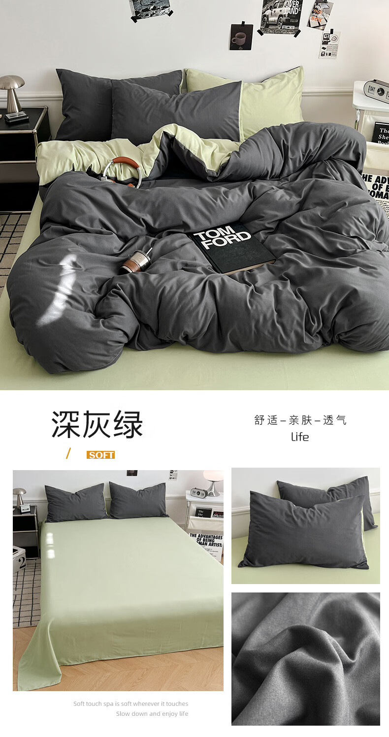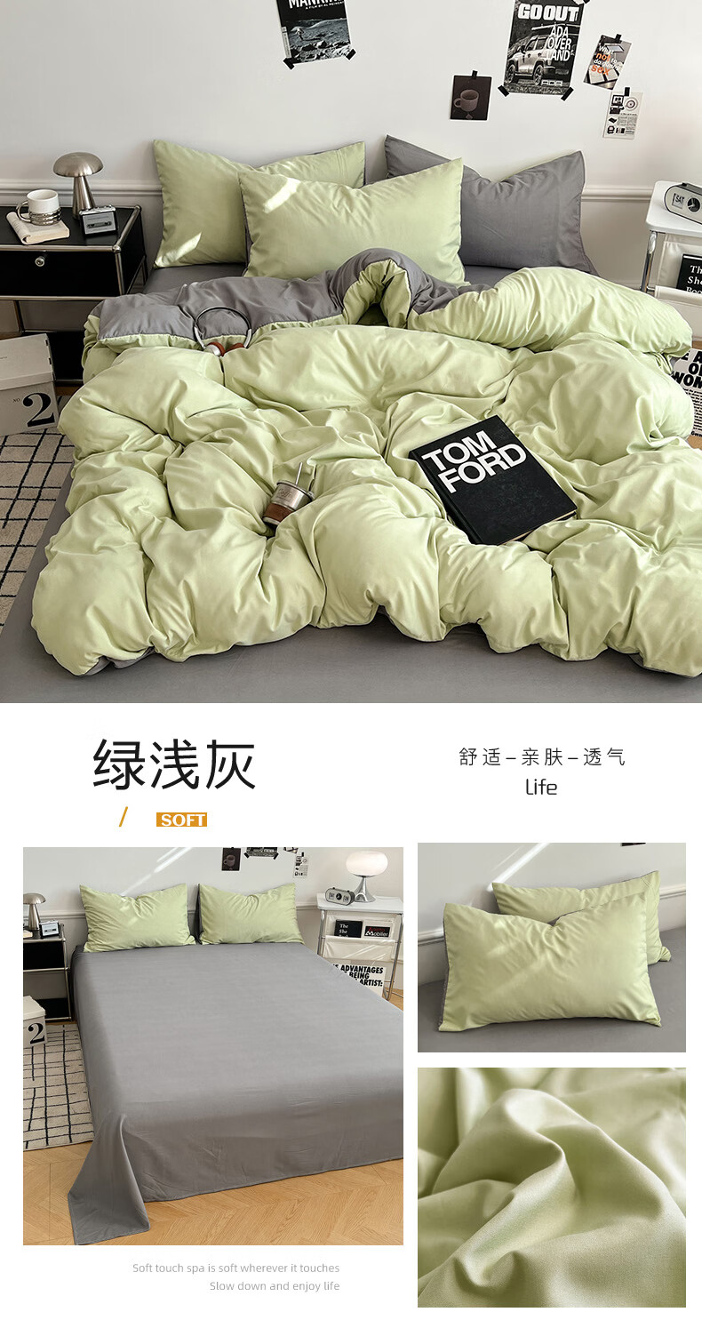 10A抗菌四件套学生宿舍三件套床单被套小清新套件 绿浅灰 床单款 三件套(被套150*200cm)
