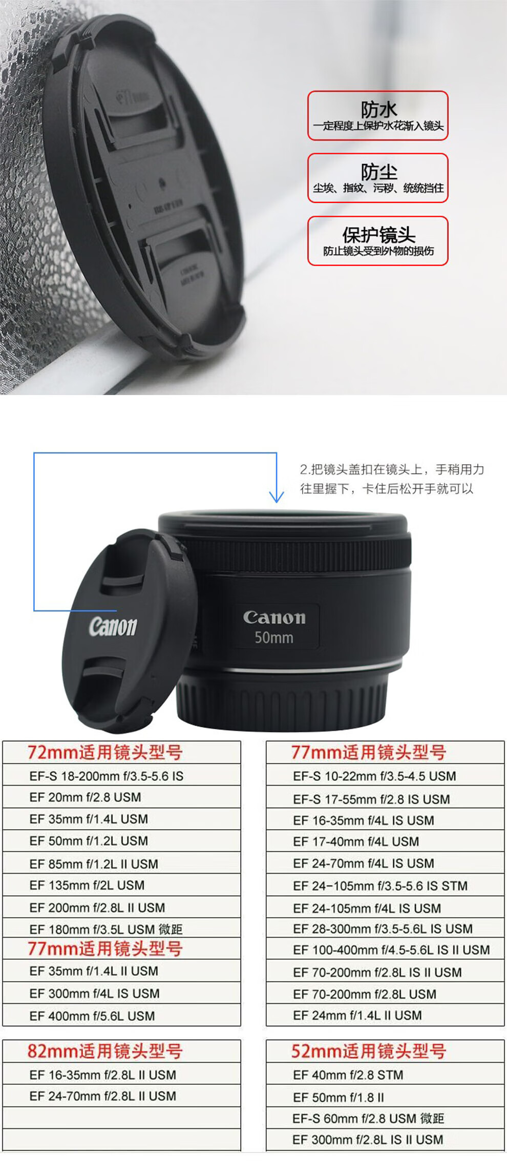 一叶兰 适用于佳能相机49-52-55-58-67-72-77-82镜头盖 18-135 18-55 82mm