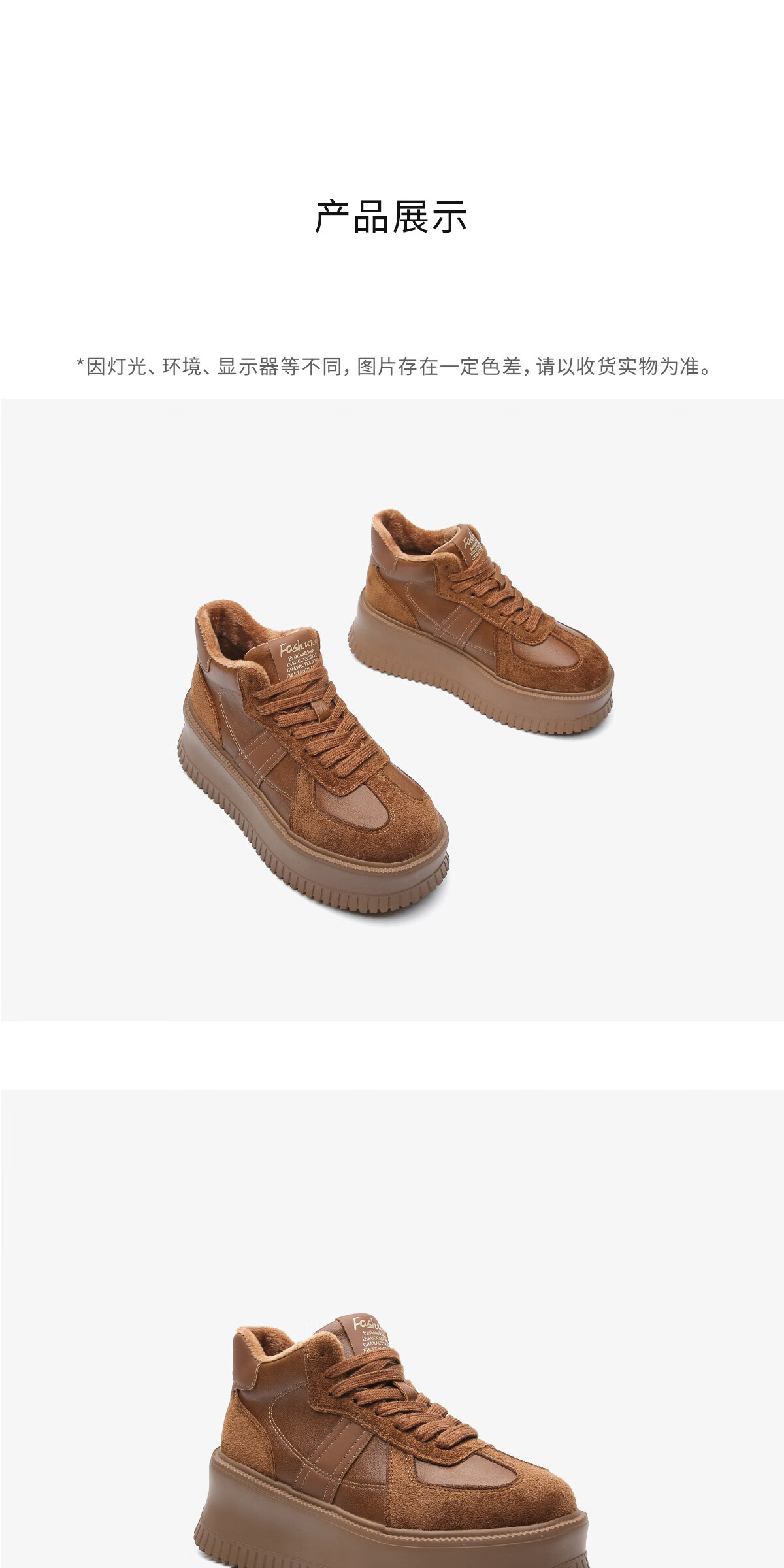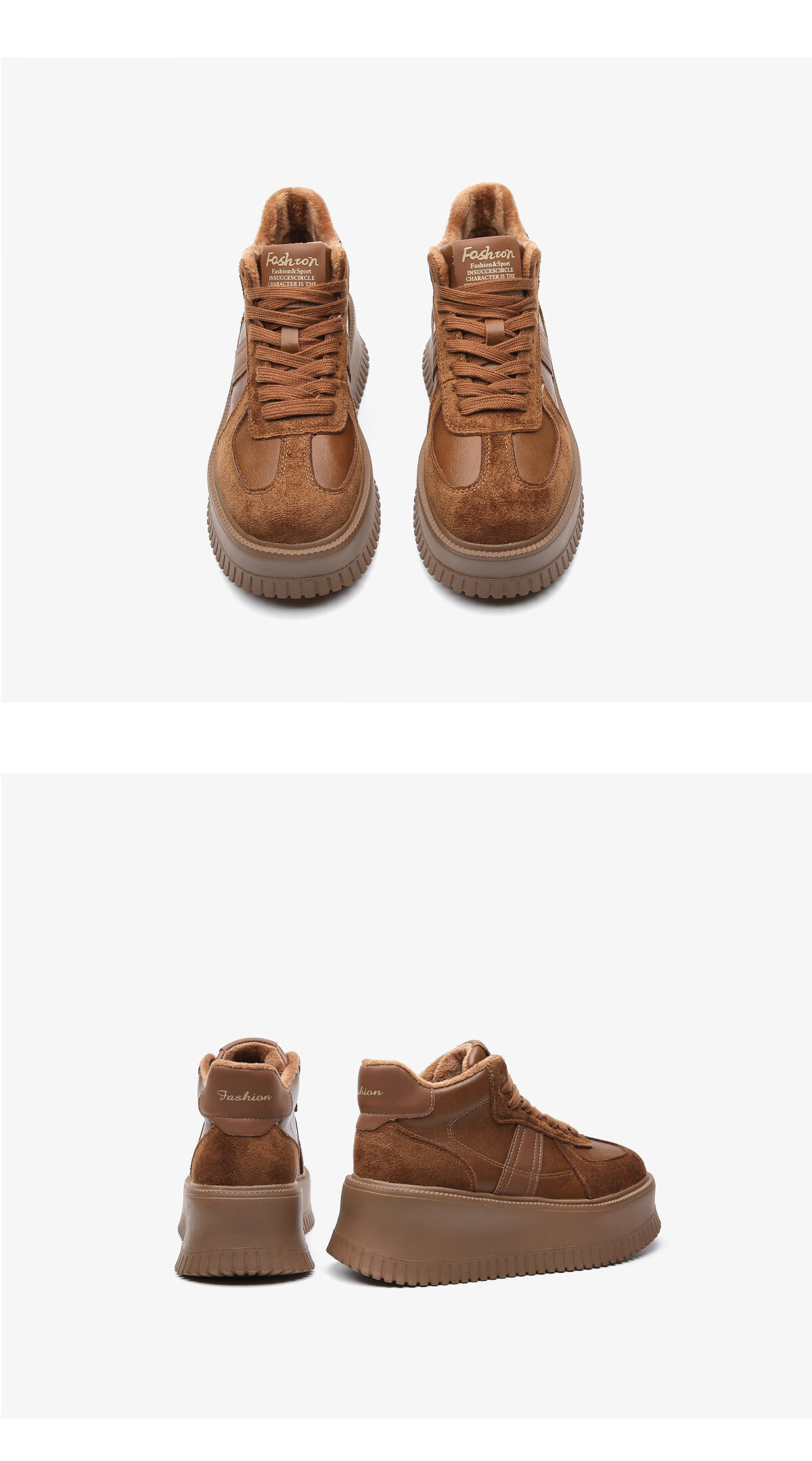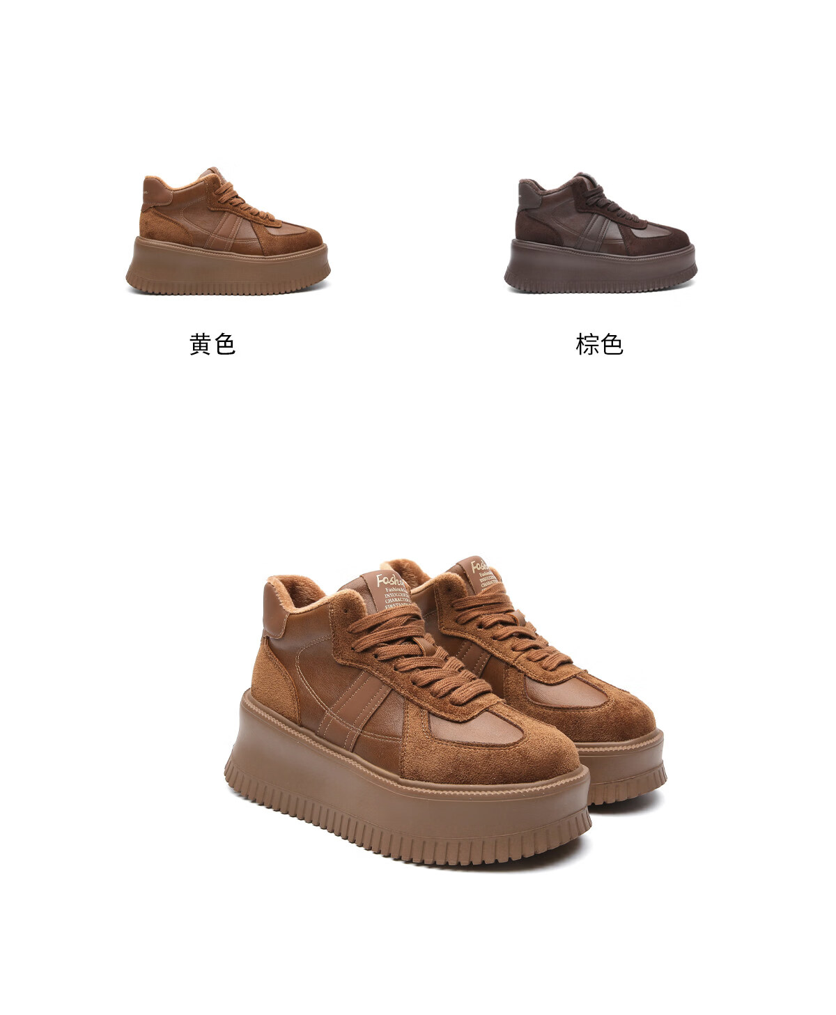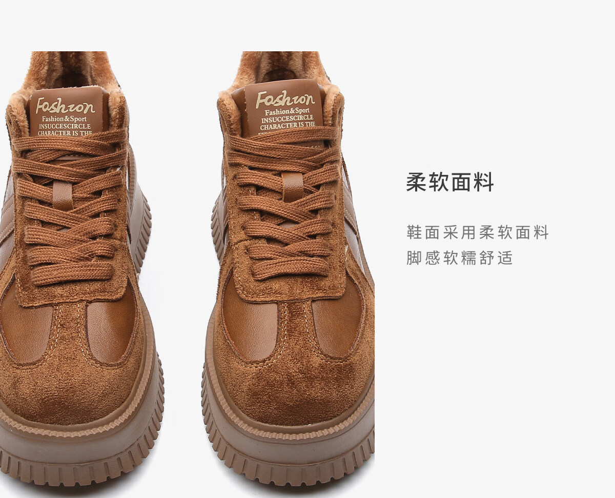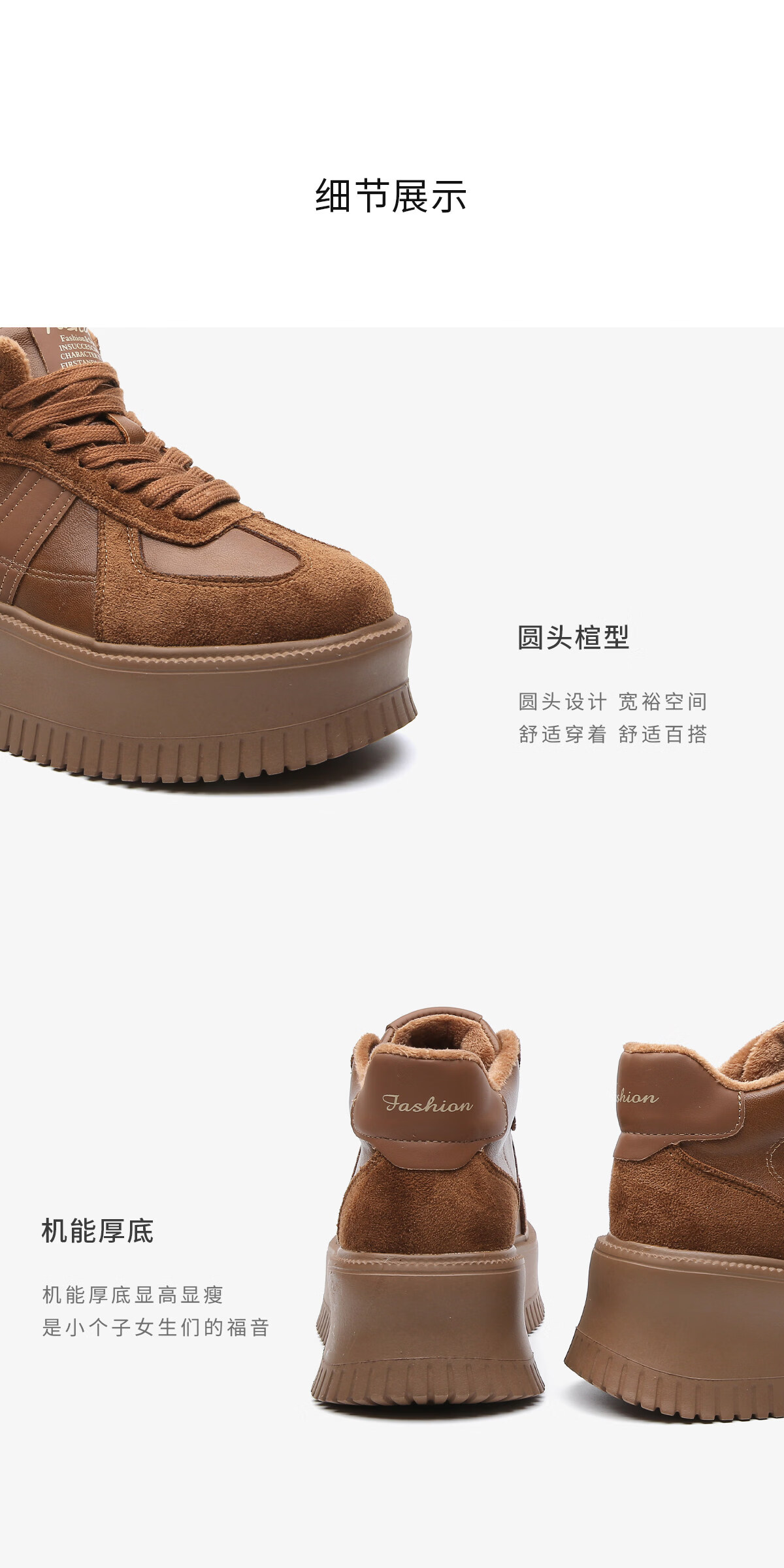 月芽儿德训鞋子女2025新款秋冬加绒复古松糕鞋百搭系带休闲鞋 绒里棕色03T 34