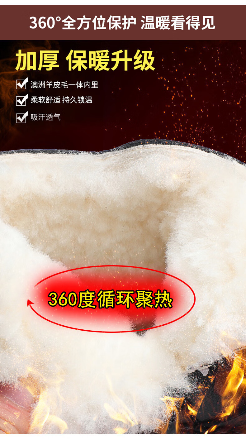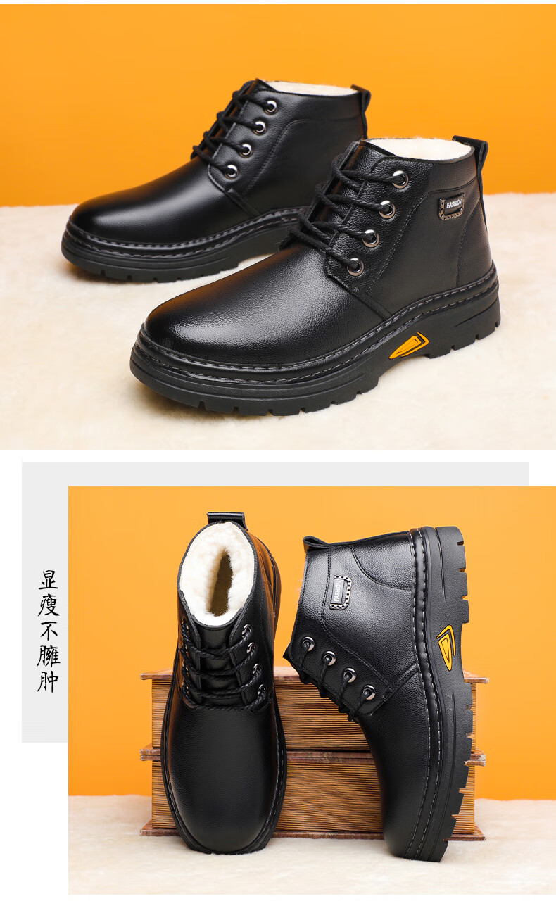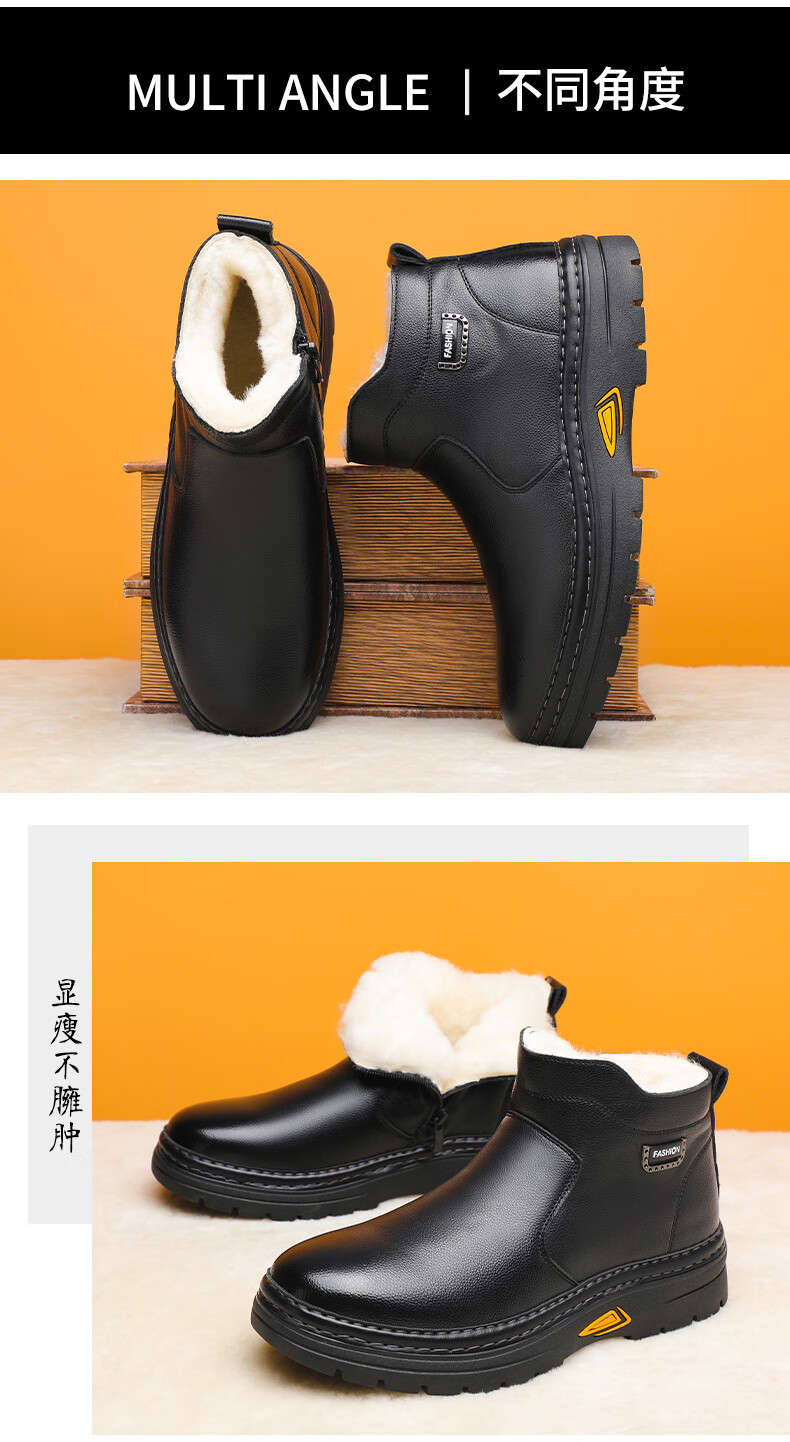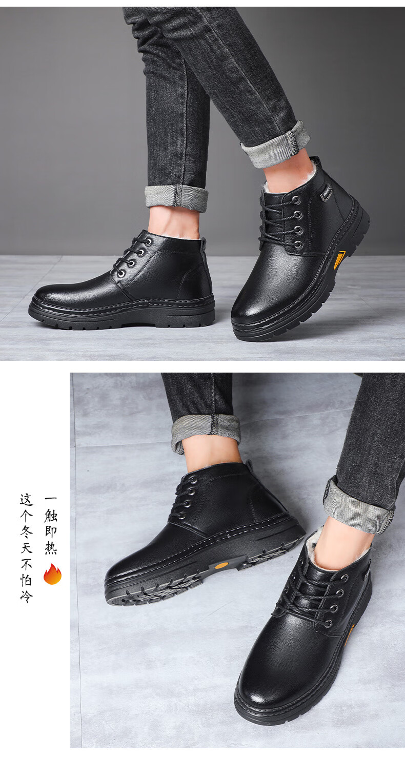 稻草人(MEXICAN)冬季加厚羊毛高帮皮鞋 男棉鞋羊皮毛一体保暖款 防滑防水设计 黑色 【套脚拉链款】 41 【加厚保暖羊毛】