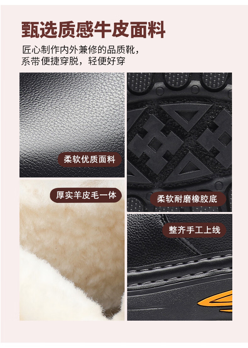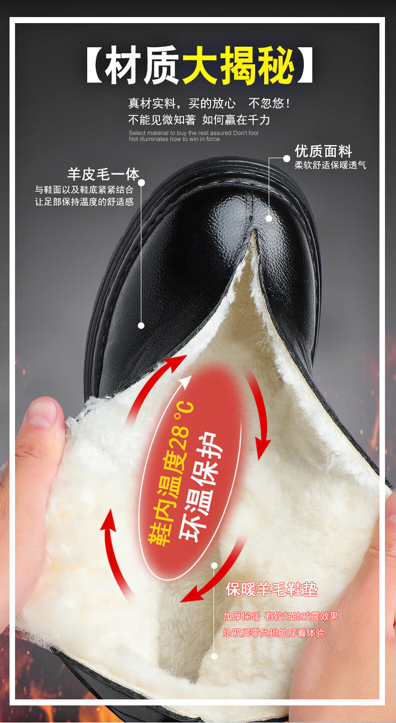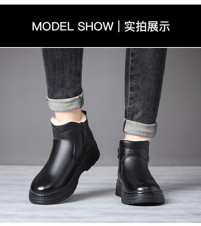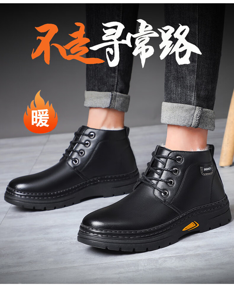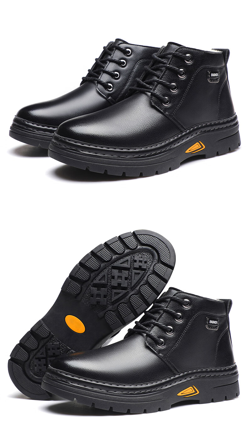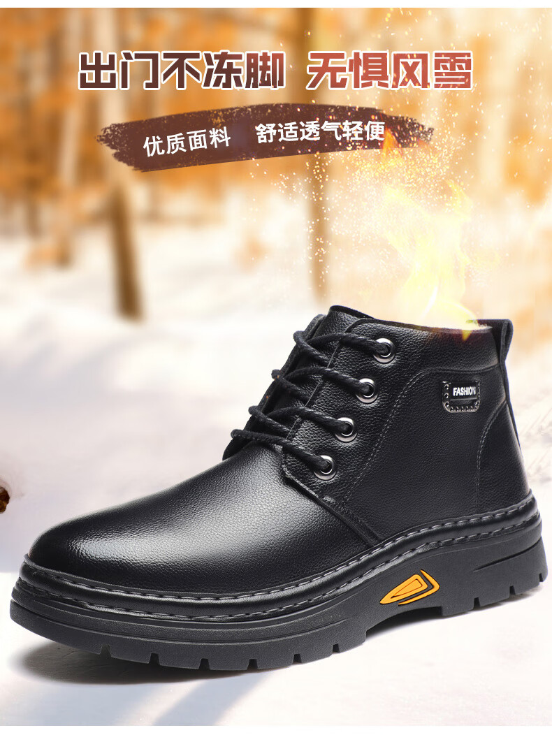 稻草人(MEXICAN)冬季加厚羊毛高帮皮鞋 男棉鞋羊皮毛一体保暖款 防滑防水设计 黑色 【套脚拉链款】 41 【加厚保暖羊毛】