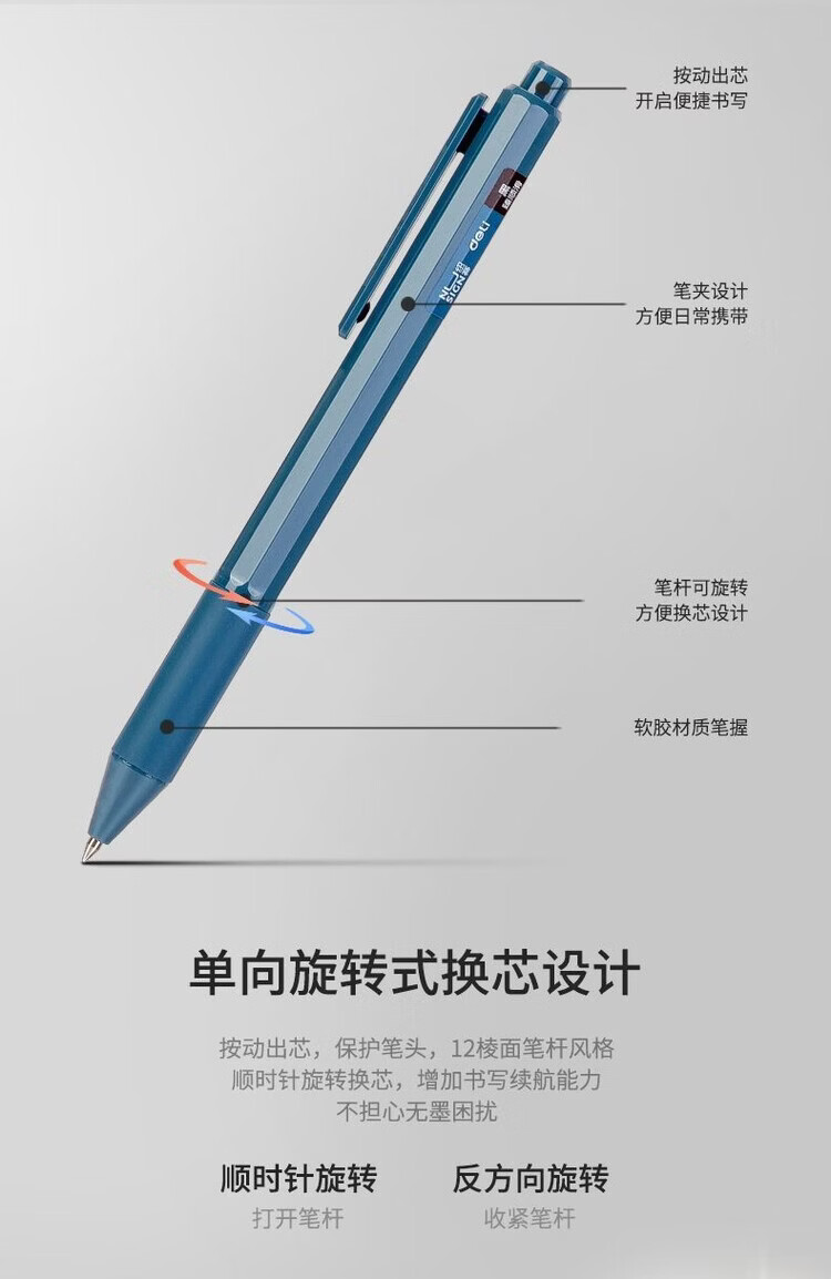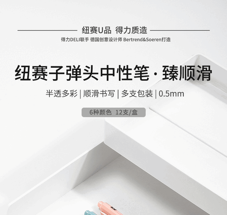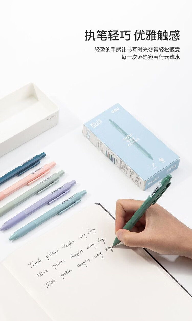 得力(deli)纽赛NS559按动中性笔ins冷淡风创意简约05mm黑色签字笔子弹头 NS559-3支【买一赠一到手6支】