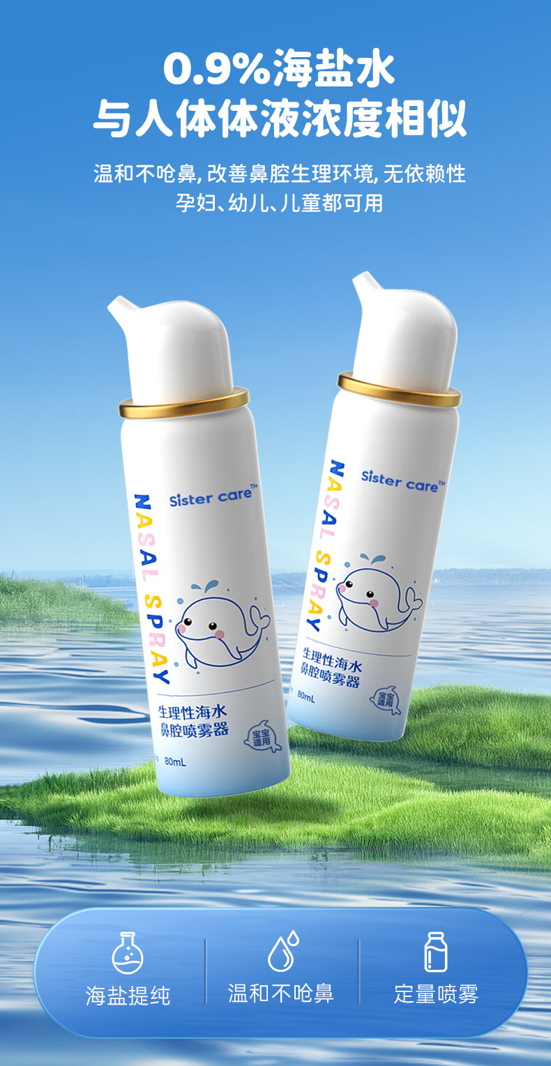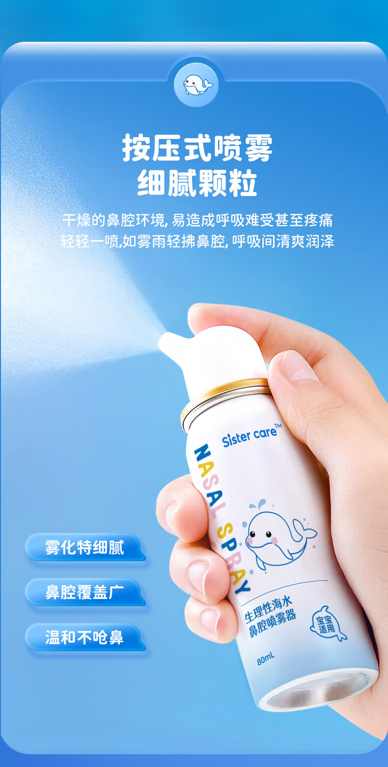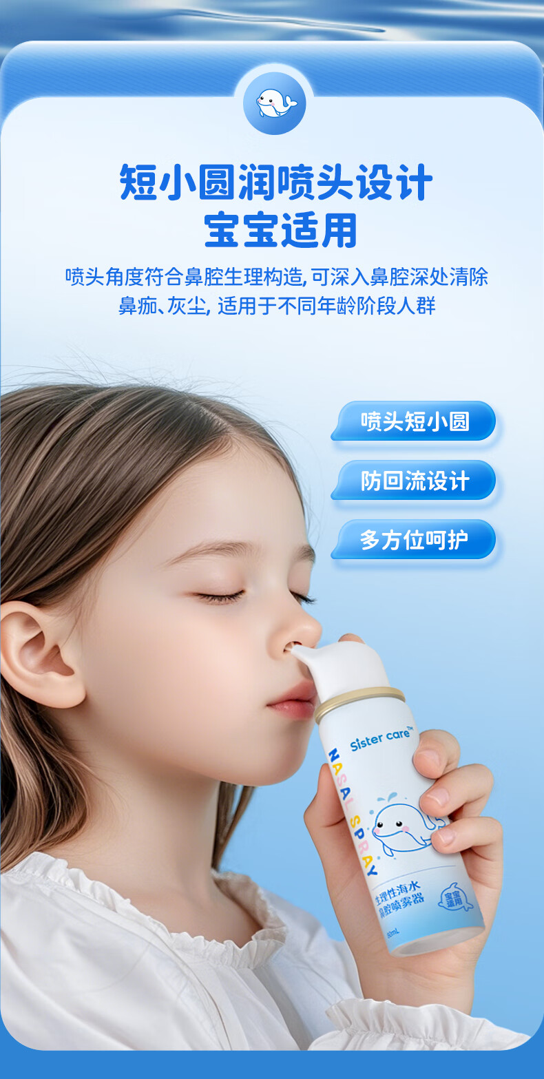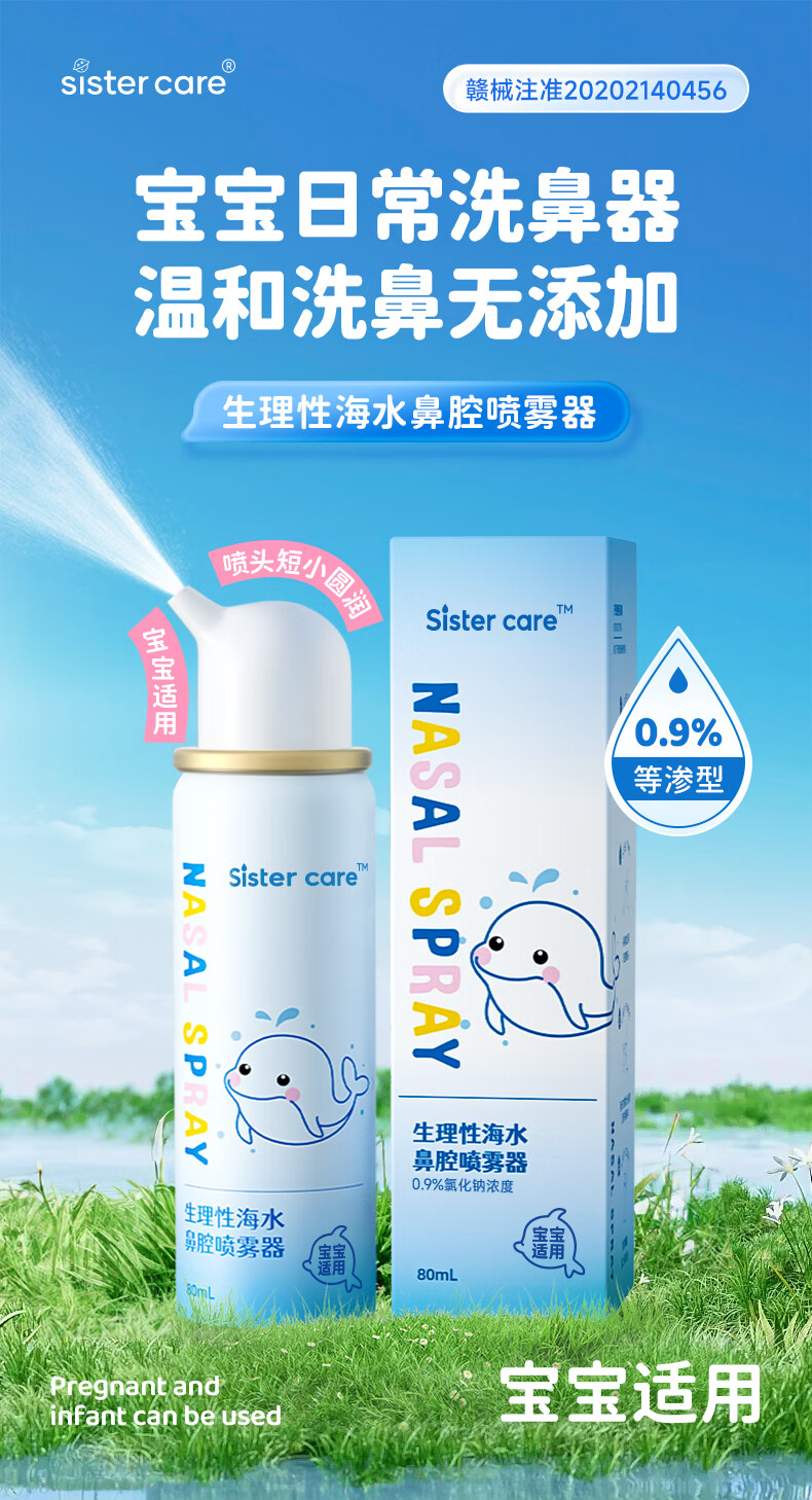 sister care婴儿生理盐水洗鼻器儿童海盐水喷鼻冲洗器鼻塞鼻腔喷雾冲鼻器80mL