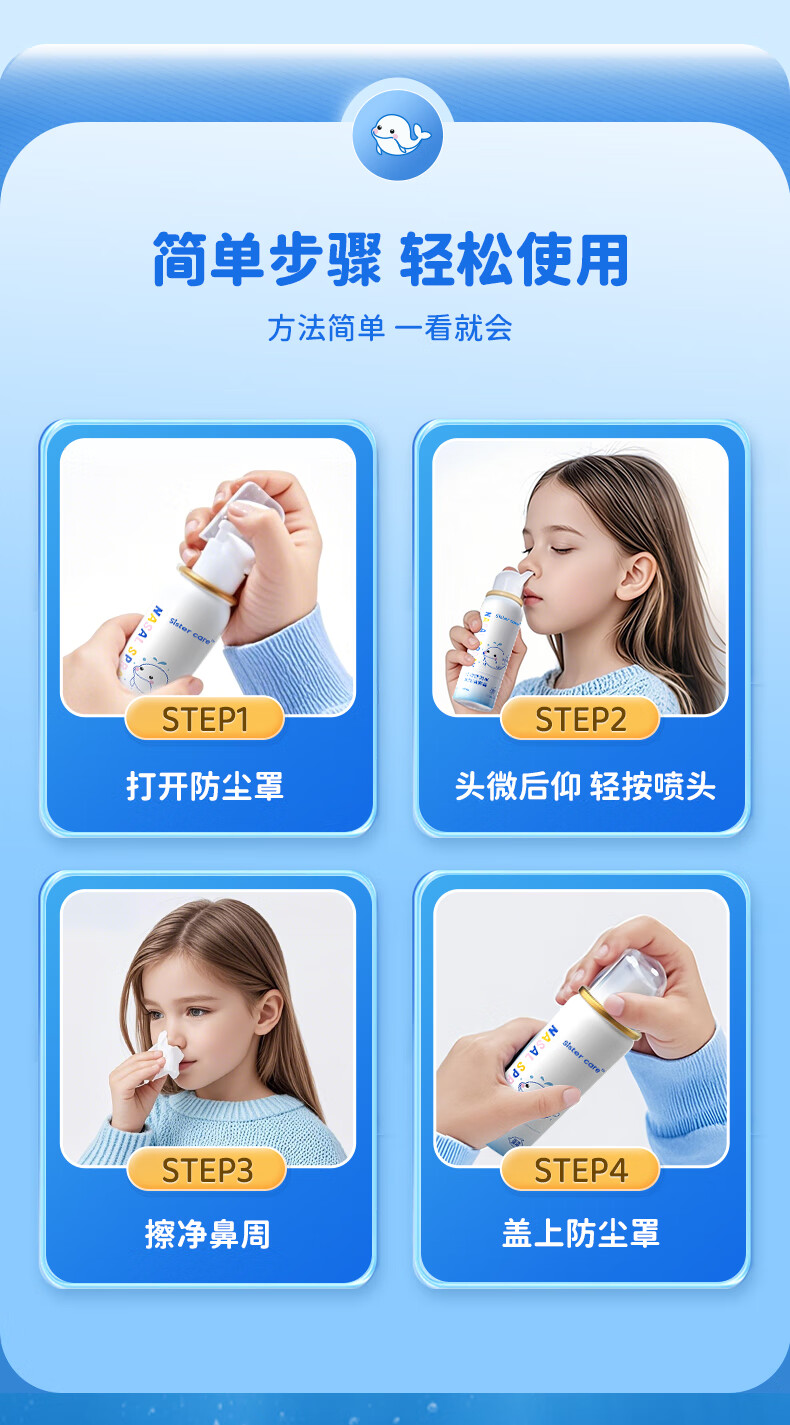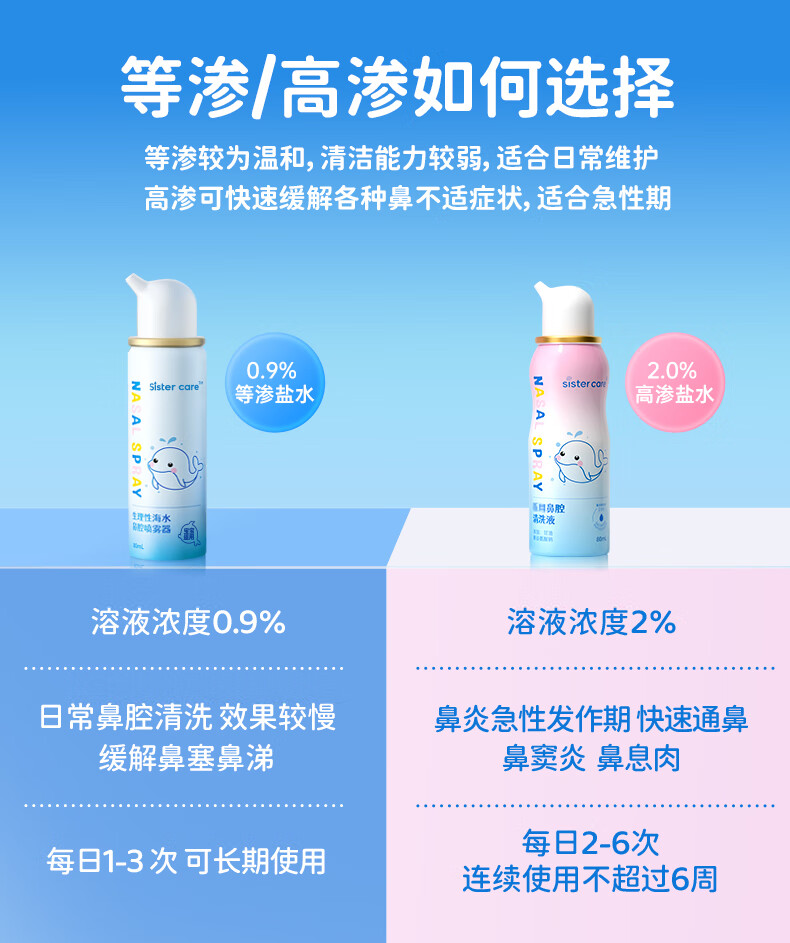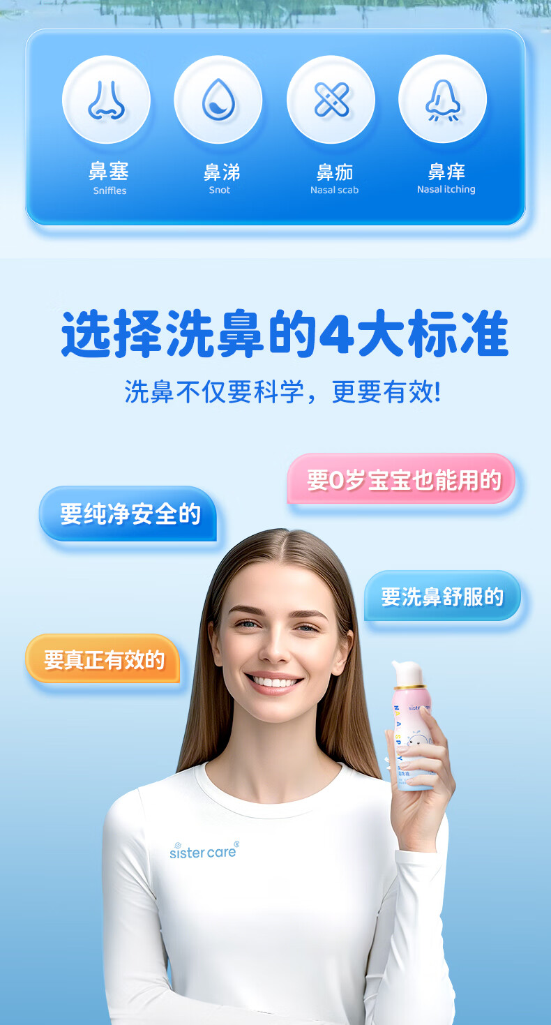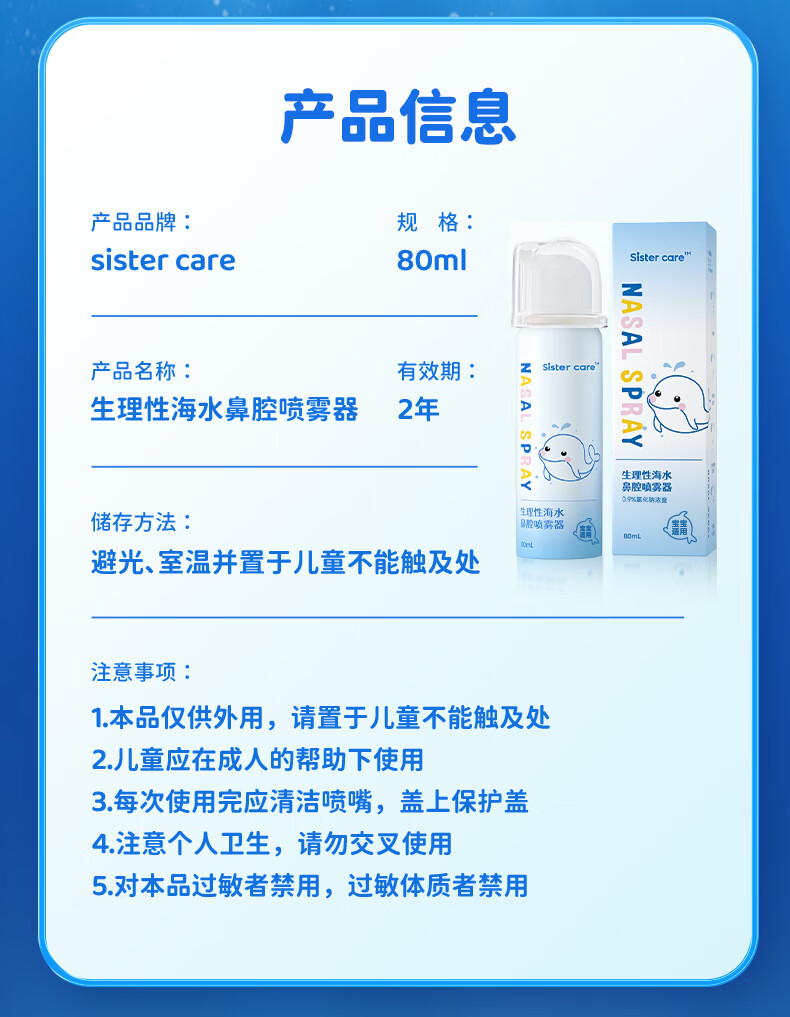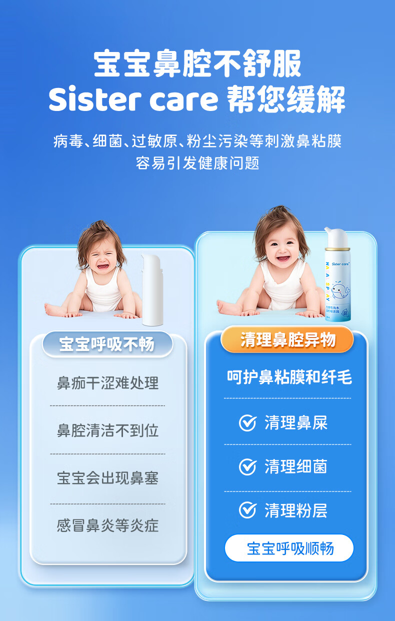 sister care婴儿生理盐水洗鼻器儿童海盐水喷鼻冲洗器鼻塞鼻腔喷雾冲鼻器80mL