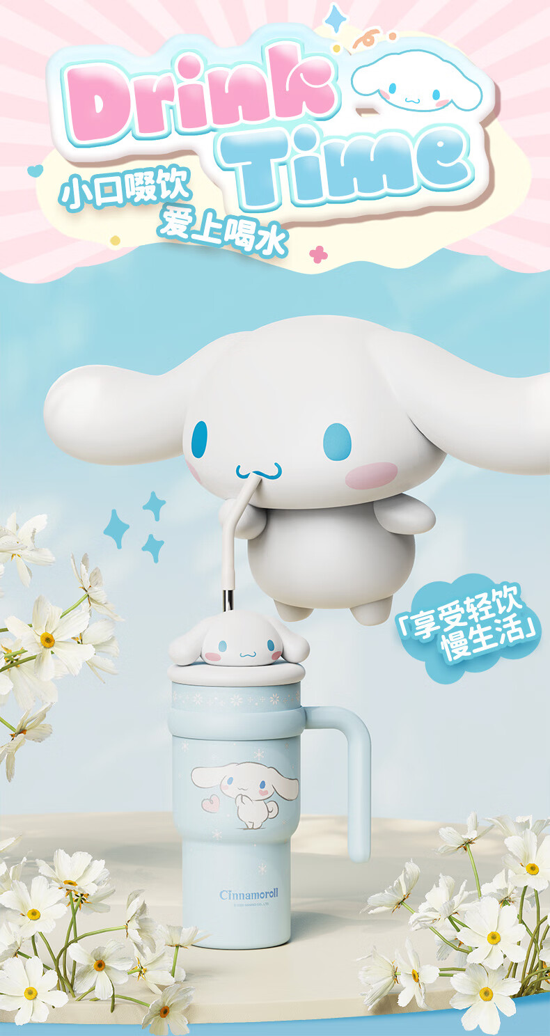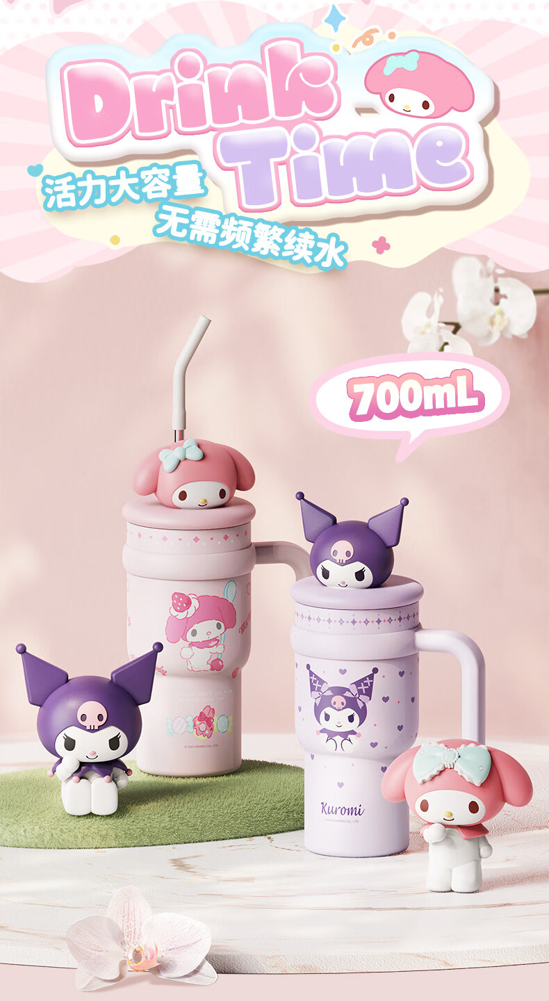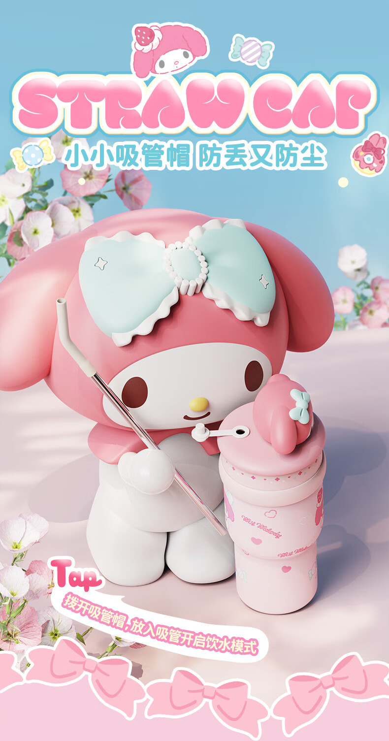 MARSICA三丽鸥巨无霸吸管保温杯大容量上学不锈钢新款带盖学生可爱水杯子 双饮保温杯-美乐蒂/380ml