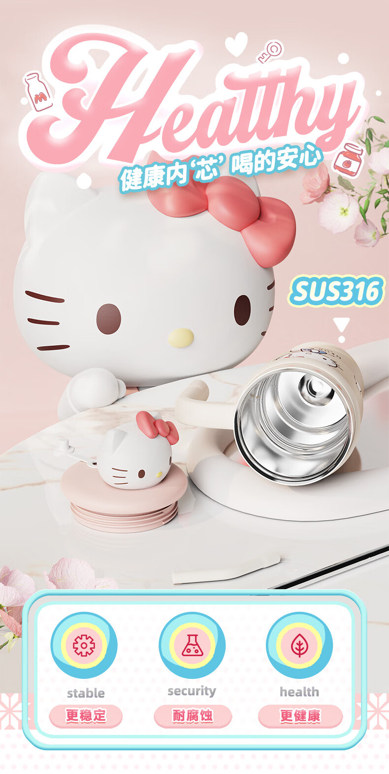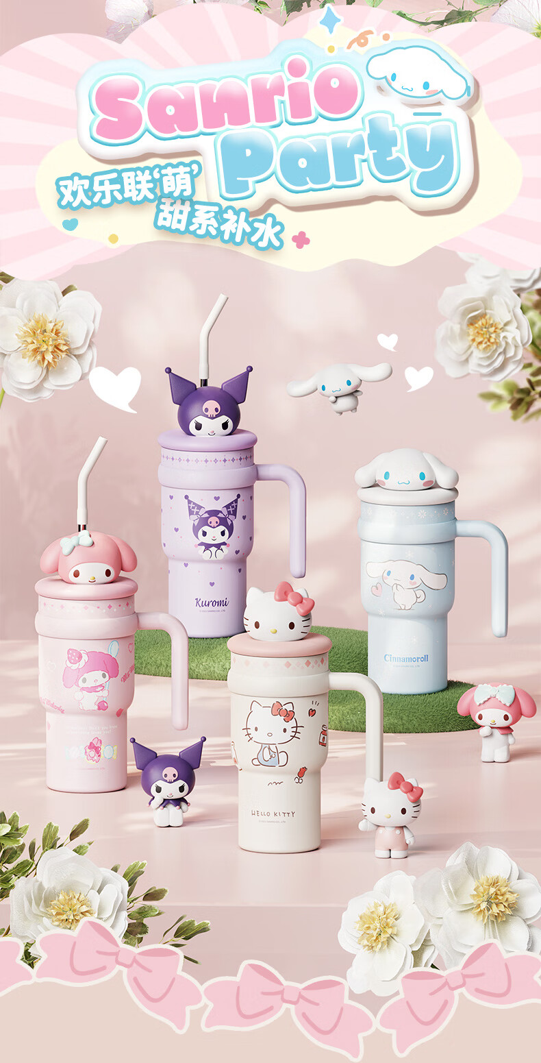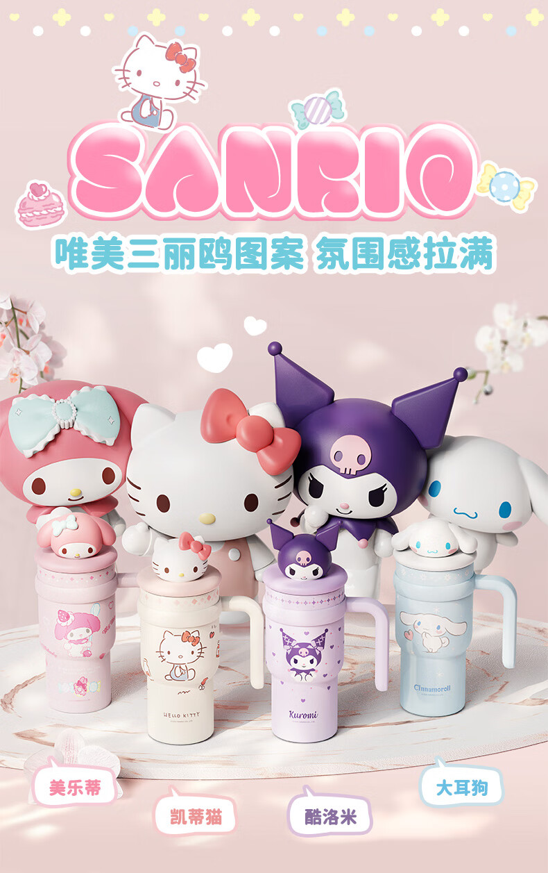 MARSICA三丽鸥巨无霸吸管保温杯大容量上学不锈钢新款带盖学生可爱水杯子 双饮保温杯-美乐蒂/380ml